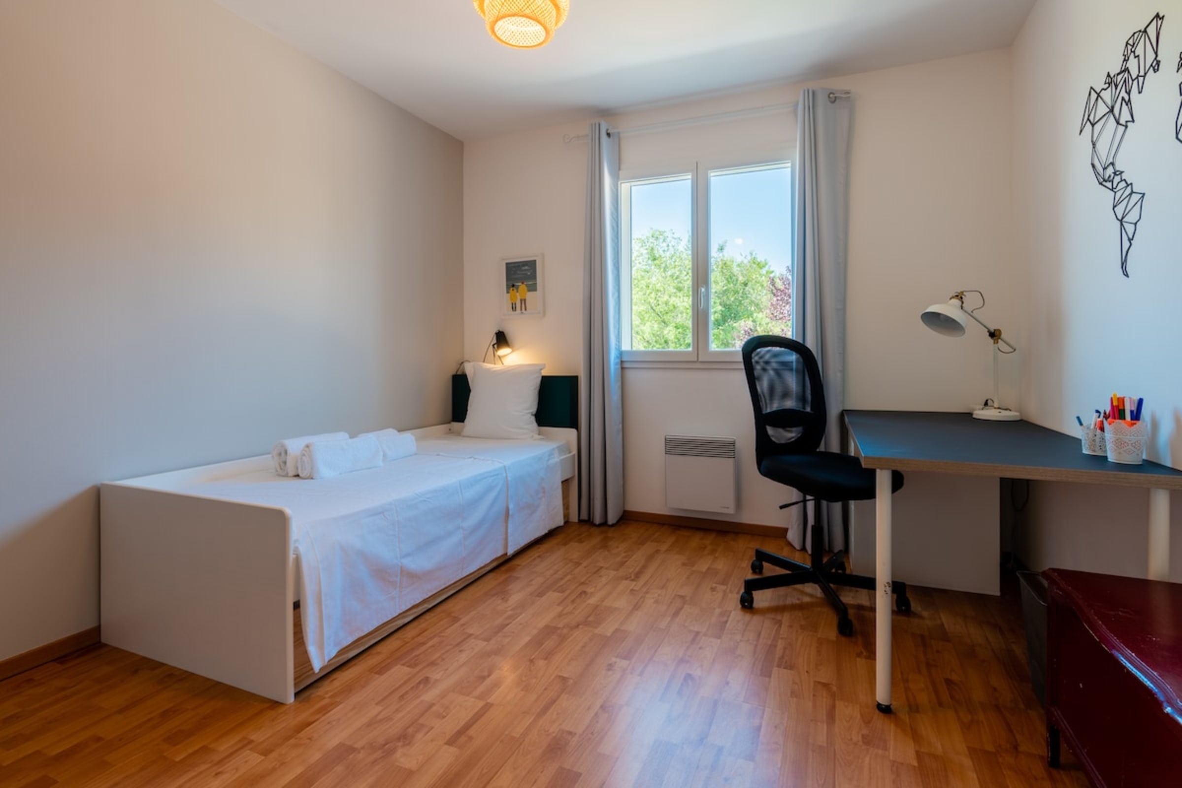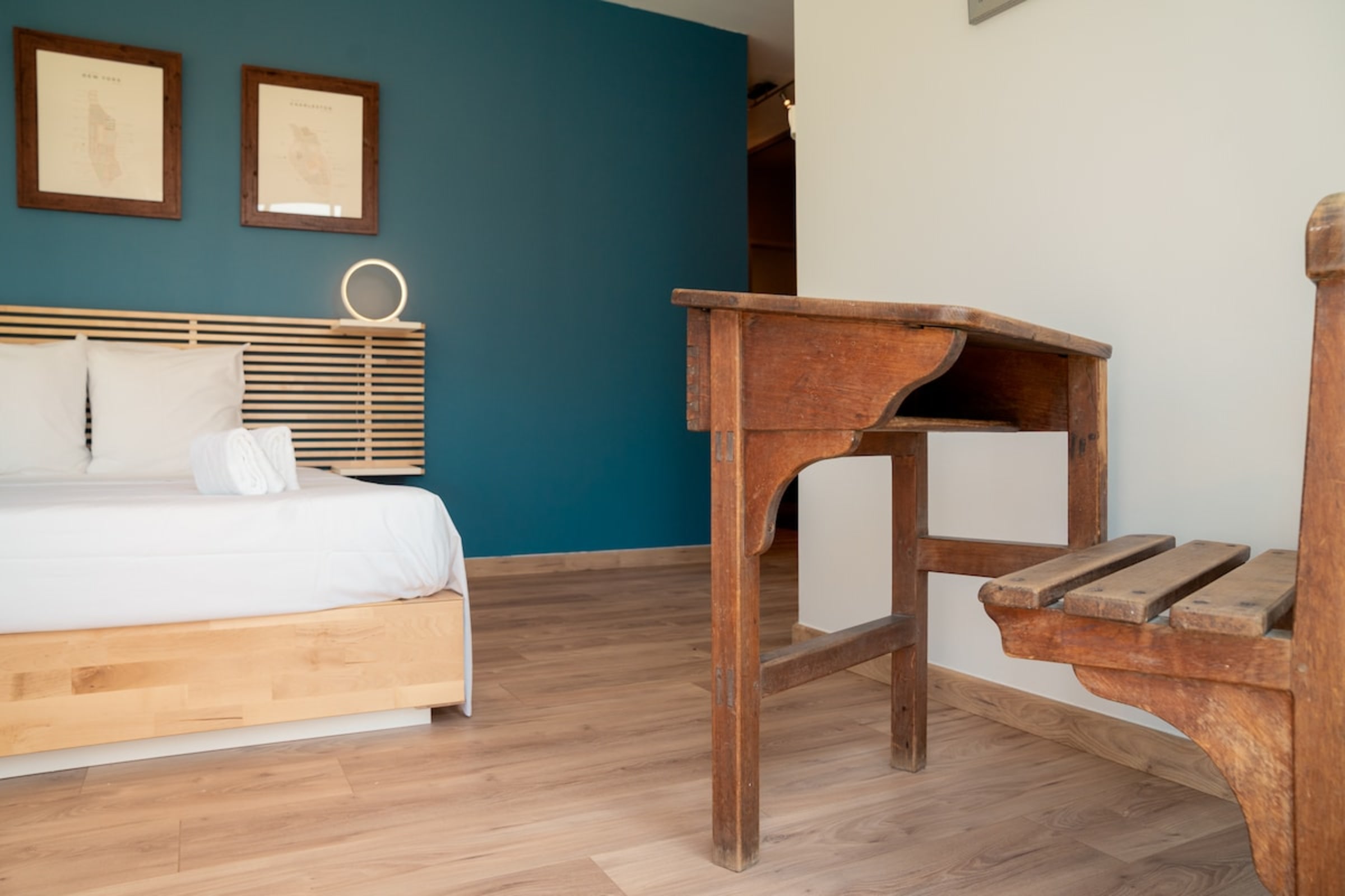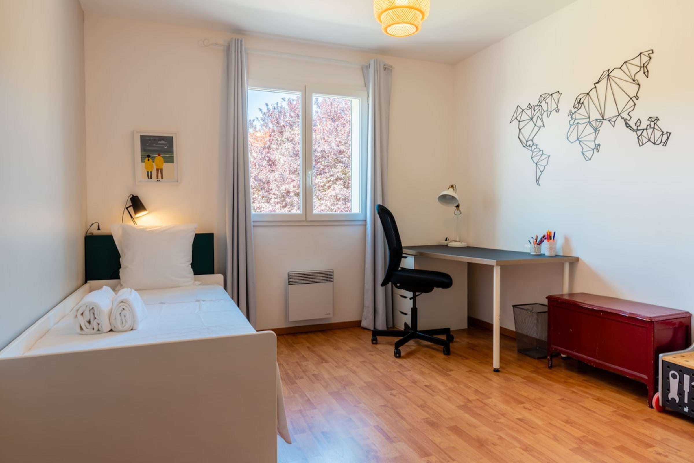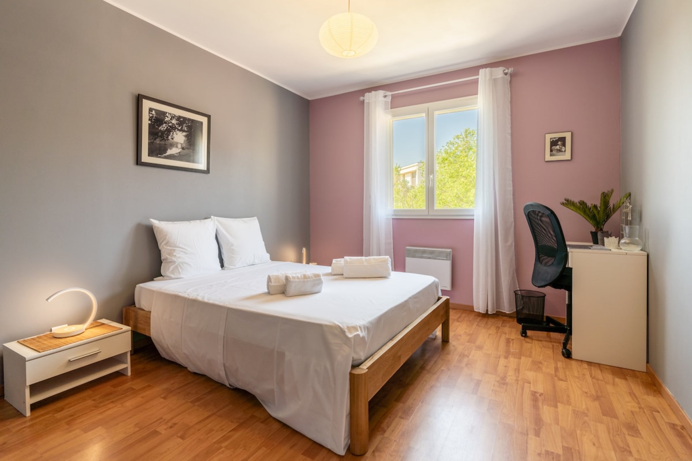 For nights, comfort leads the way: on the ground floor, a master bedroom with a near-panoramic view of garden and pool, plus a second bedroom. Upstairs, two further bedrooms, including one with a single bed + pull-out trundle (designed with children in mind but fully suitable for adults). Quality bedding, storage, and natural light create calm, restorative spaces.