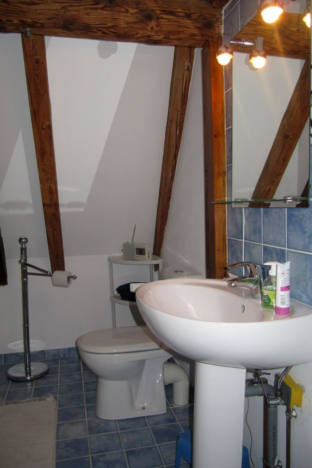 - a bathroom with bath and WC adjoining the bedroom
