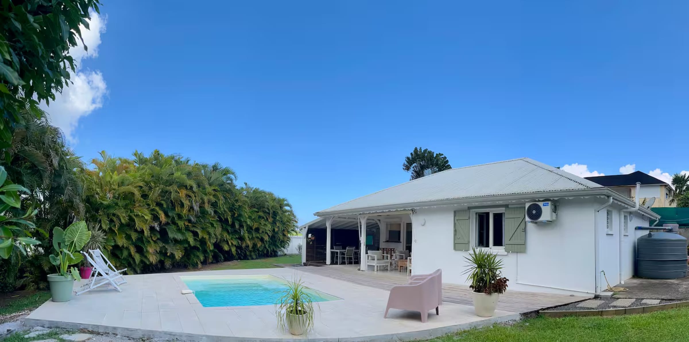 Discover Villa Amazon, your tropical retreat nestled in the lush green setting of Le Lamentin. Offering a perfect balance between modern comfort and natural charm, this single-storey villa is a peaceful haven ideal for relaxation and Caribbean discoveries.