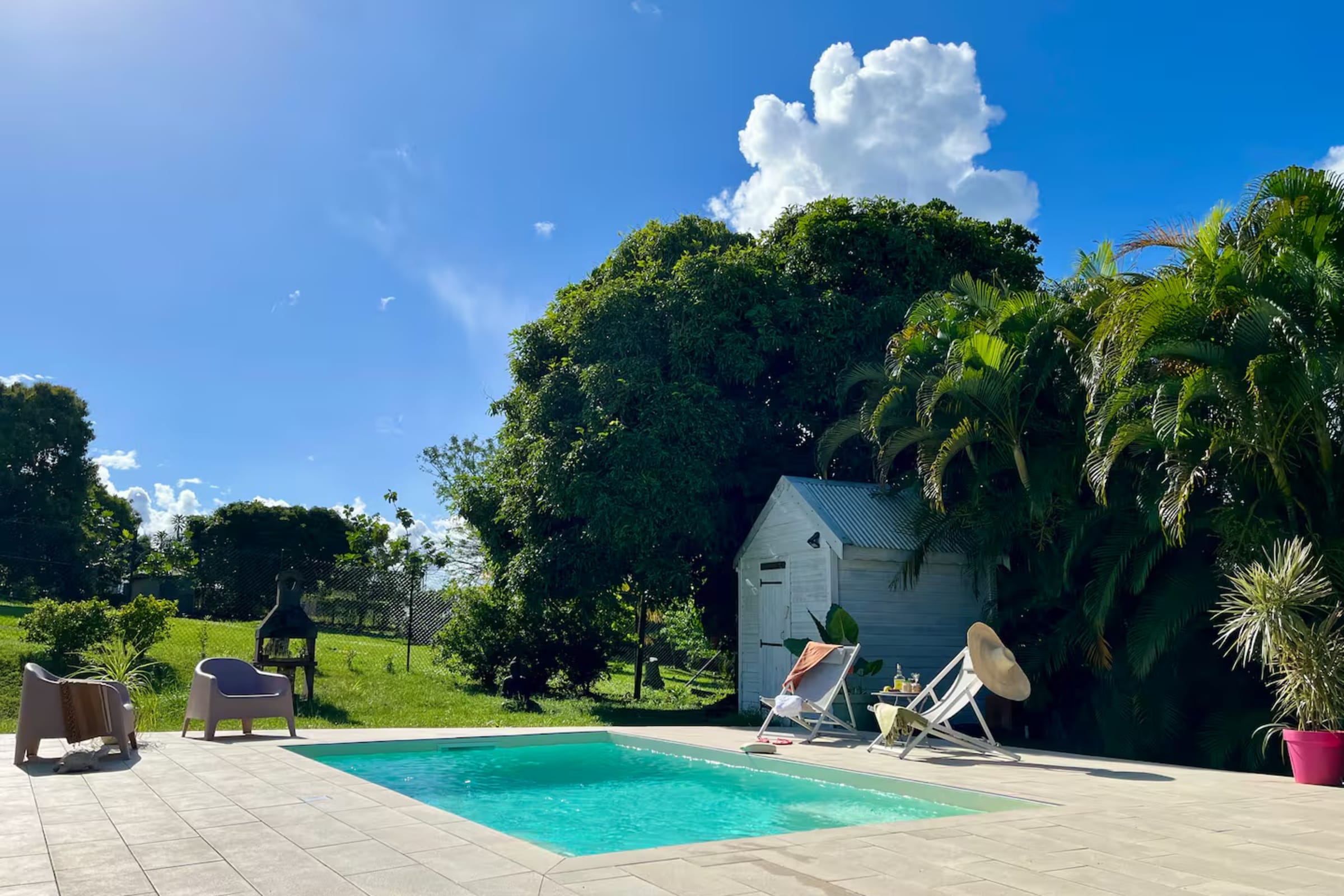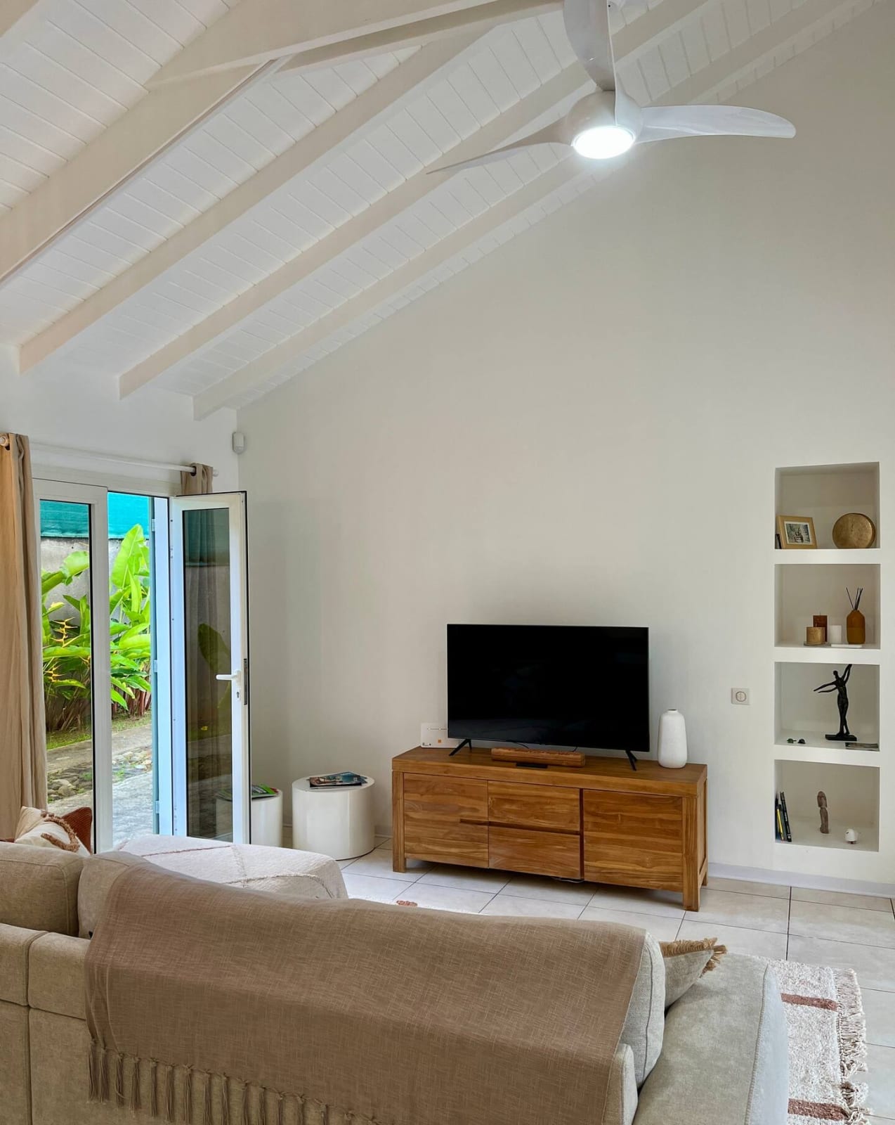 The villa opens onto a bright living area leading to a terrace where you can unwind while enjoying views of the surrounding tropical vegetation. The private swimming pool (3x5m) promises refreshing moments under the Caribbean sun.