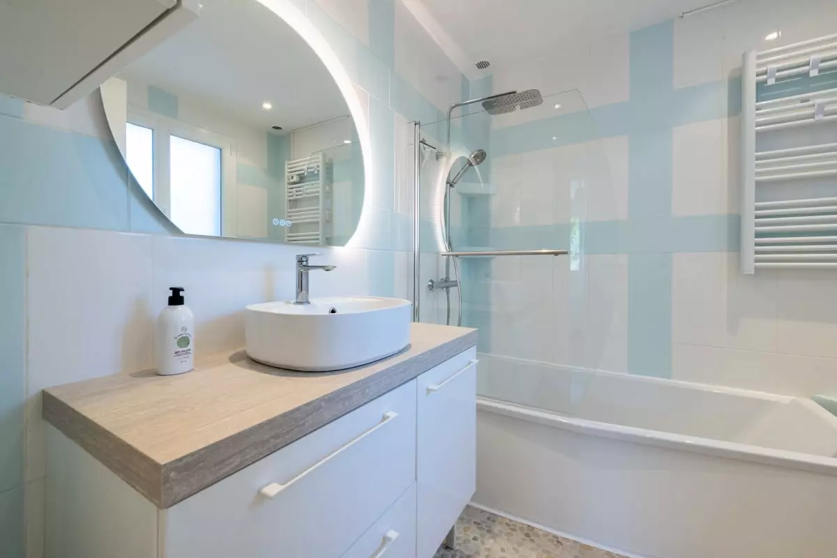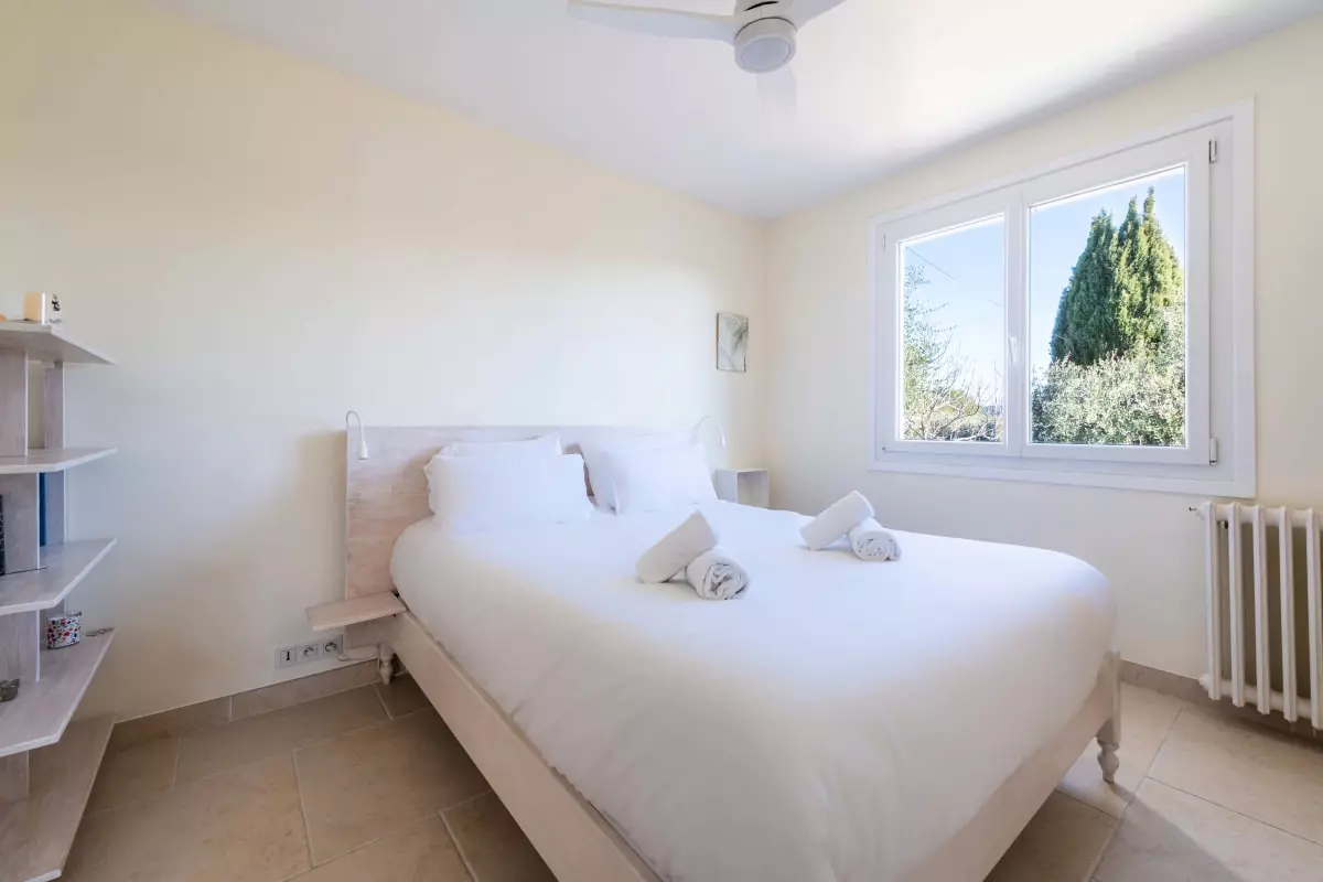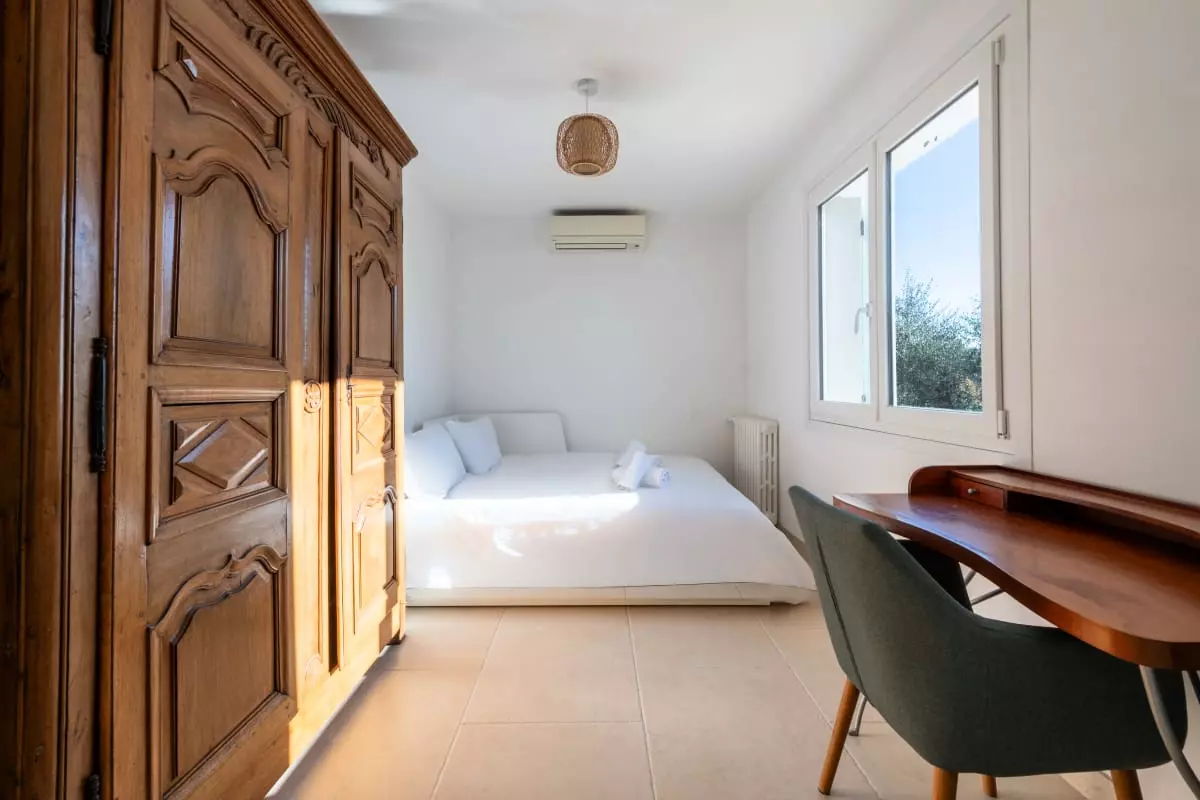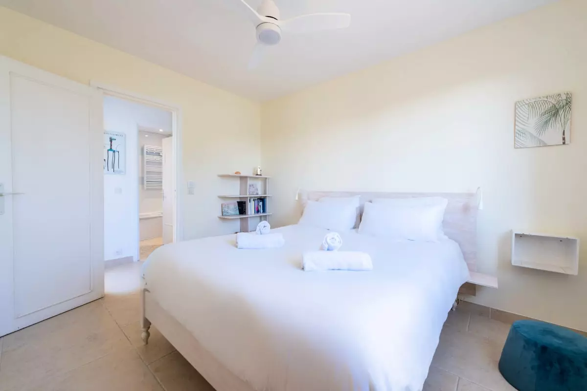In the garden, a 17m² wooden chalet offers an additional bedroom with a double bed (140x200 cm) and ceiling fan, for more privacy.
