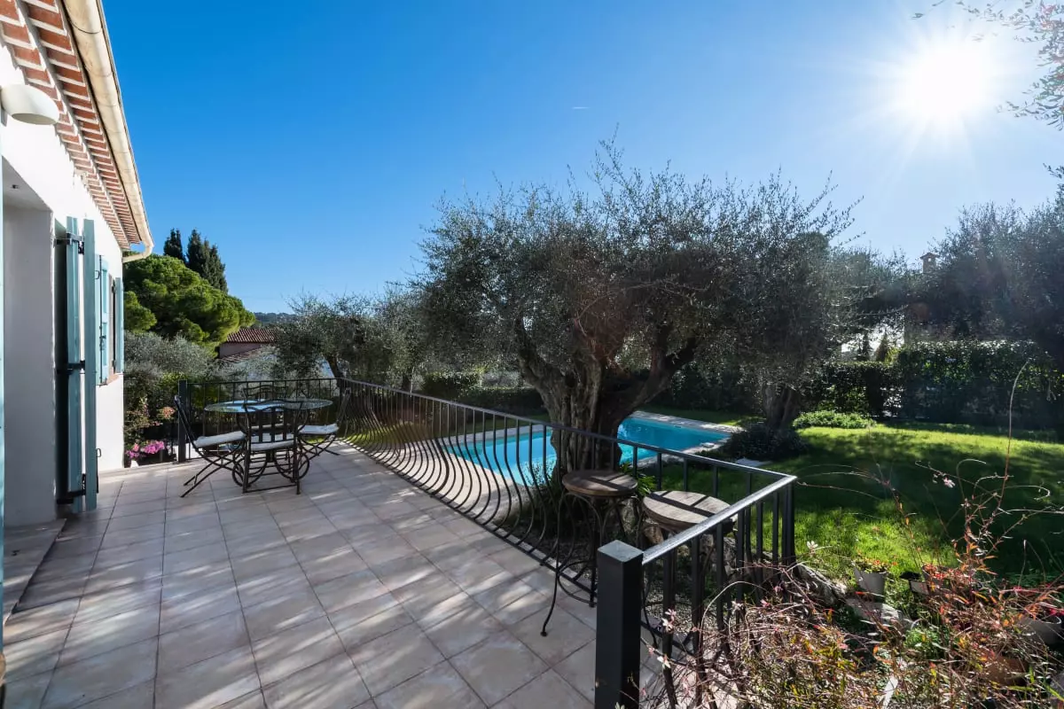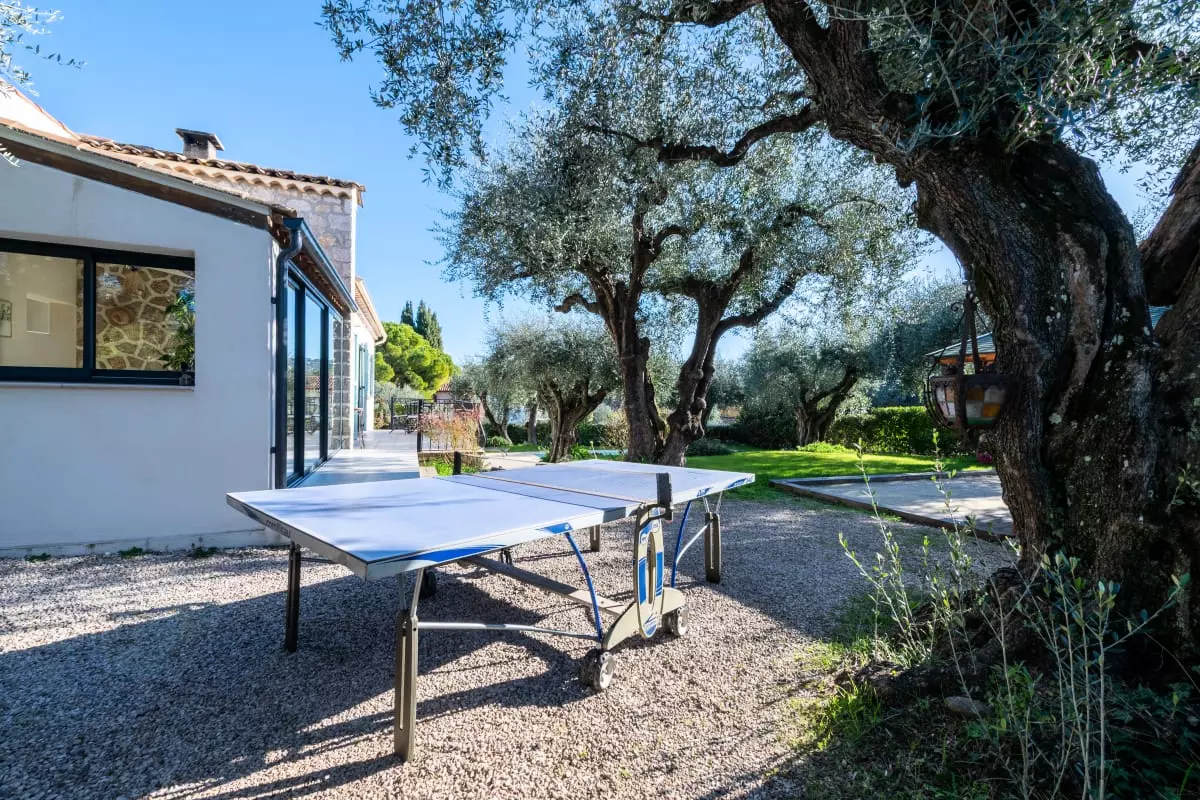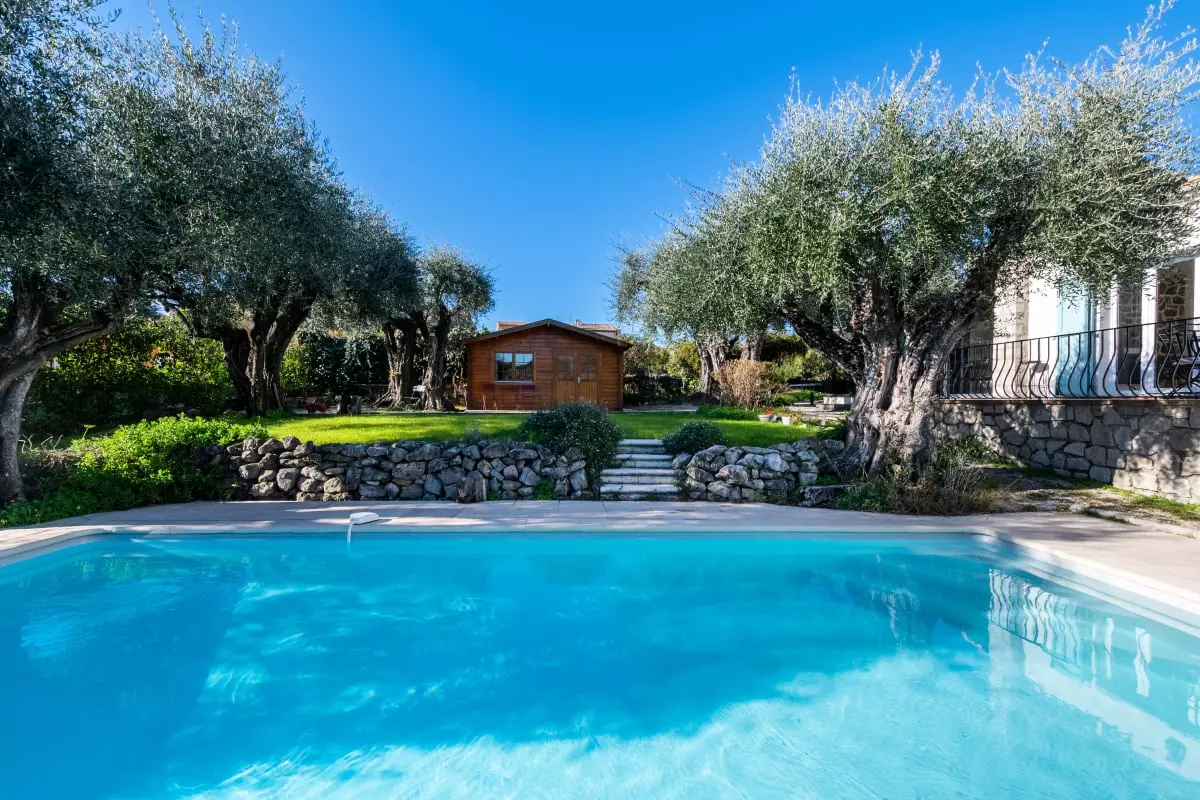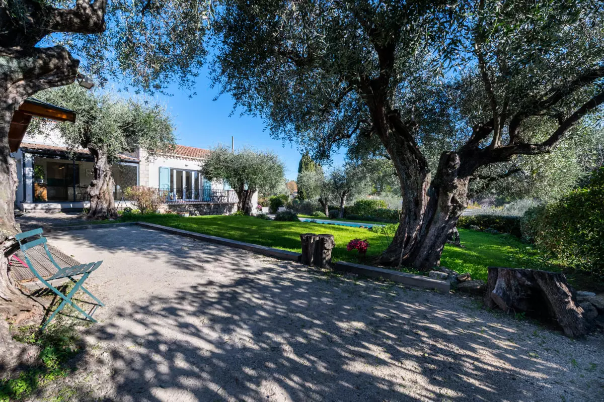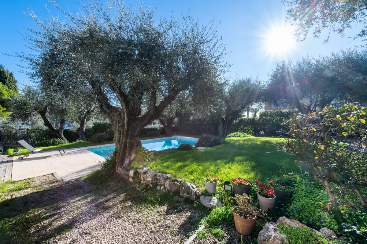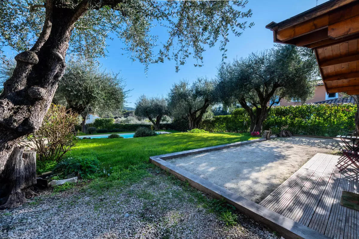 Nestled among centuries-old olive trees, this house exudes tranquility and the gentle Provençal lifestyle. Light streams through large bay windows, illuminating the garden where the swimming pool awaits for peaceful dips. The pétanque court, outdoor dining areas, and garden furniture allow you to fully enjoy the Côte d'Azur climate with family or friends.