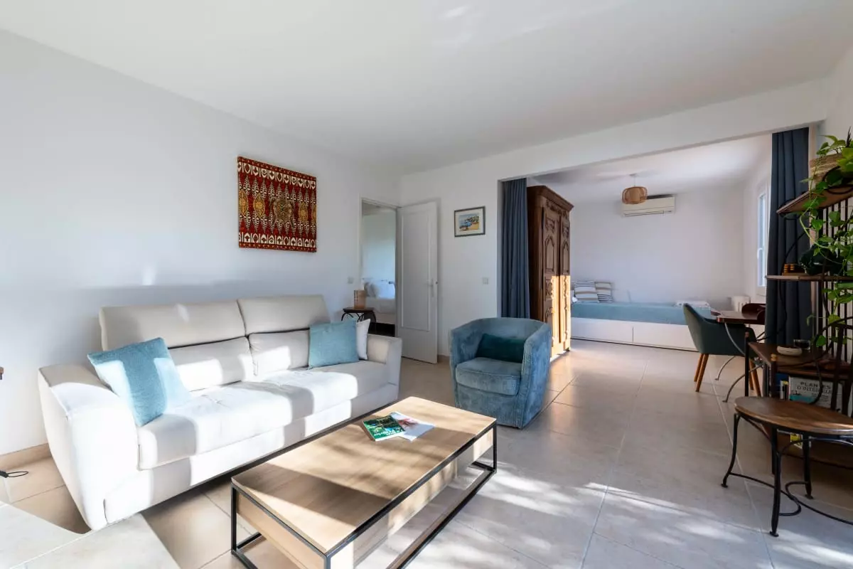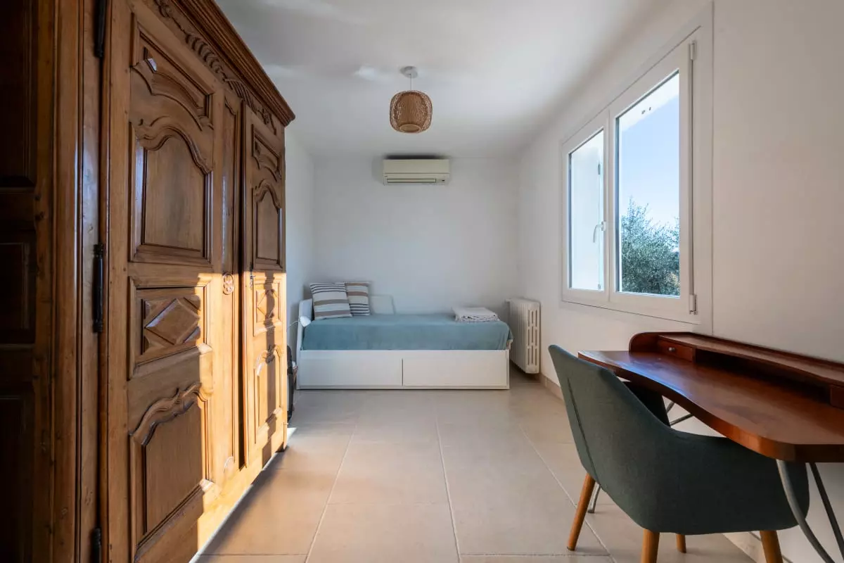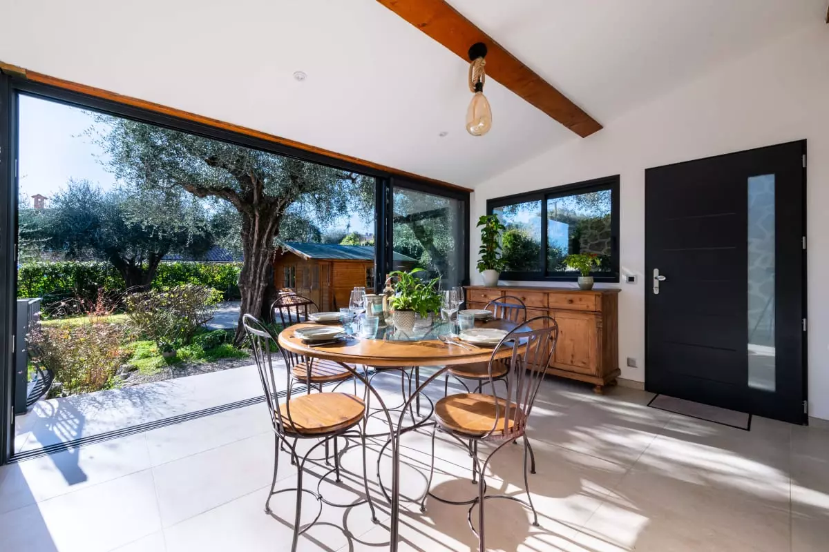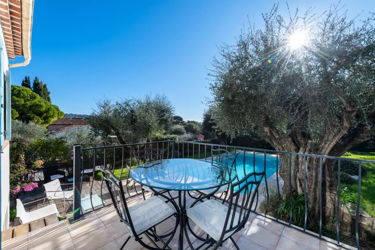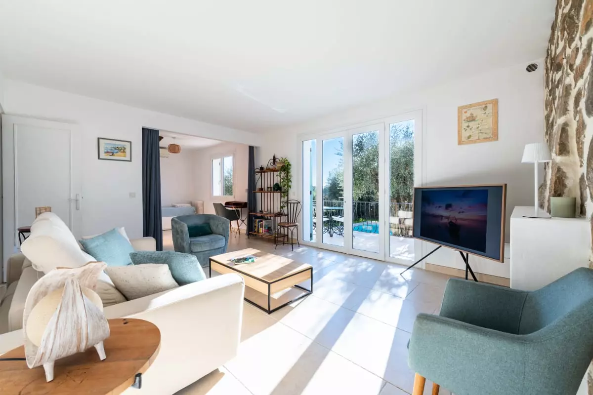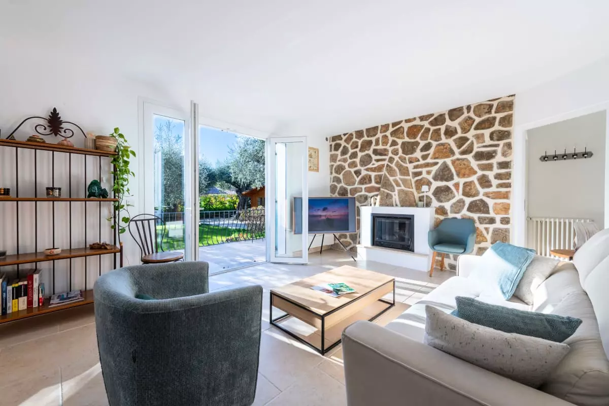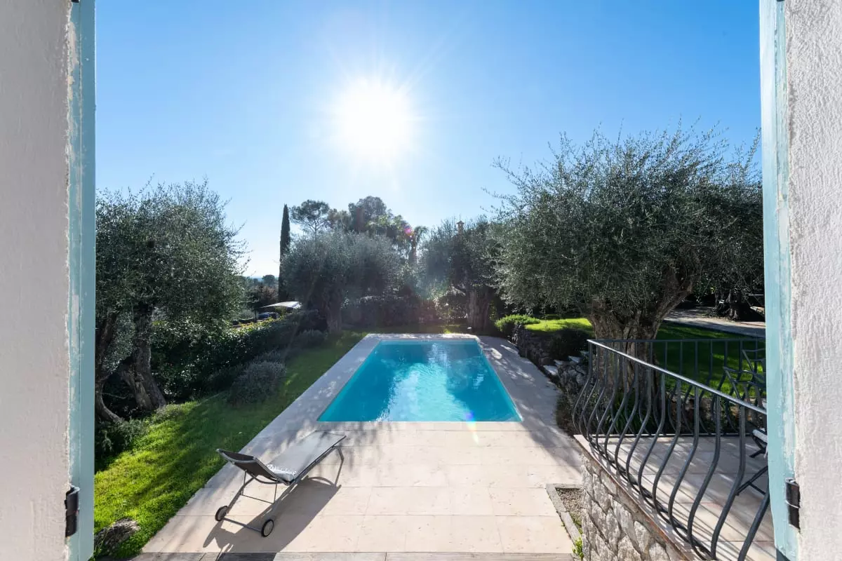 Nestled among centuries-old olive trees, this house exudes tranquility and the gentle Provençal lifestyle. Light streams through large bay windows, illuminating the garden where the swimming pool awaits for peaceful dips. The pétanque court, outdoor dining areas, and garden furniture allow you to fully enjoy the Côte d'Azur climate with family or friends.