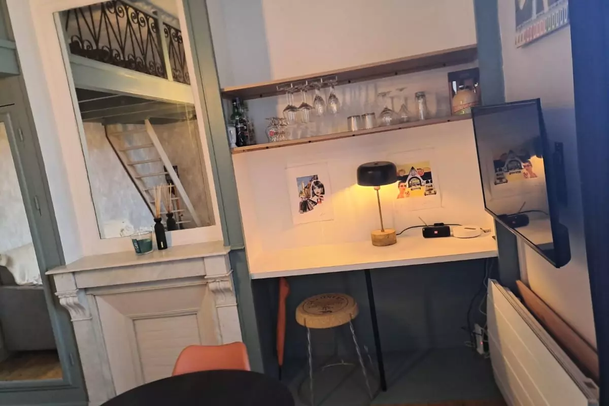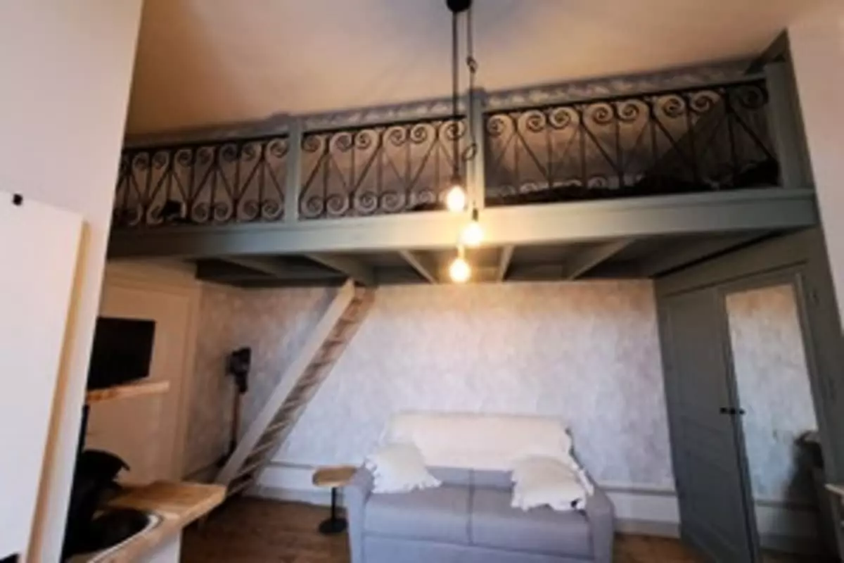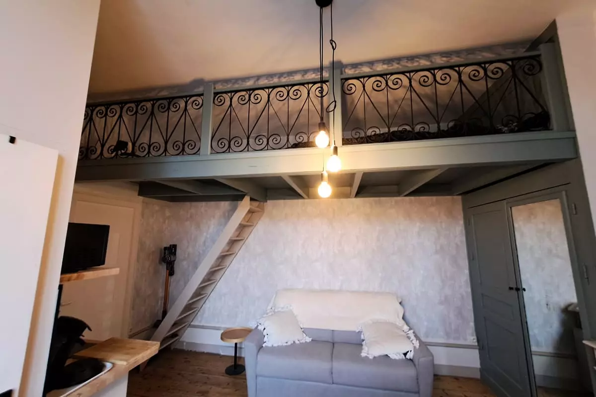 Offering all comforts, it includes a sleeping area on a mezzanine with a double mattress 140x190 on the floor, a functional shower room, a fully equipped kitchen, an office, as well as a relaxation area with a 140x190 convertible sofa.