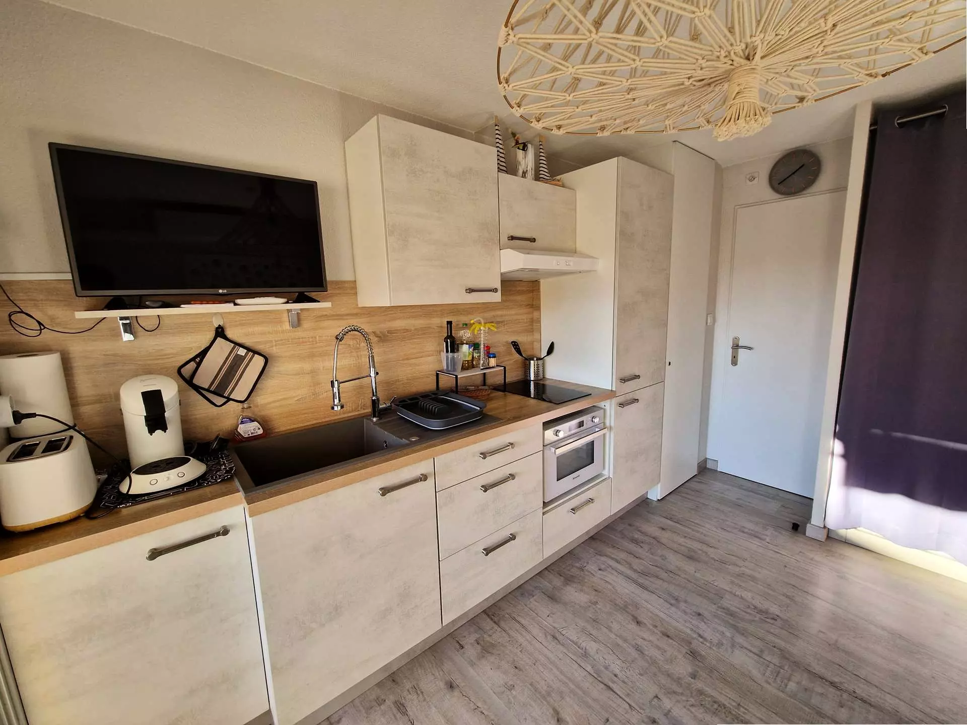 Located on the 1st floor, this charming 2-room apartment with a sleeping alcove is ideal for a holiday in Marseillan Plage.