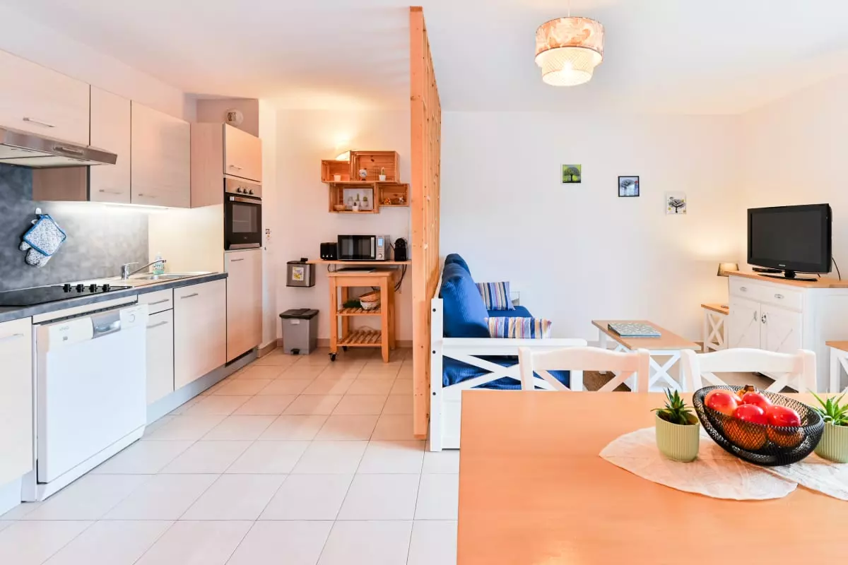 You will also find a functional shower room, a fully equipped kitchen and a living area where a sofa bed awaits you.