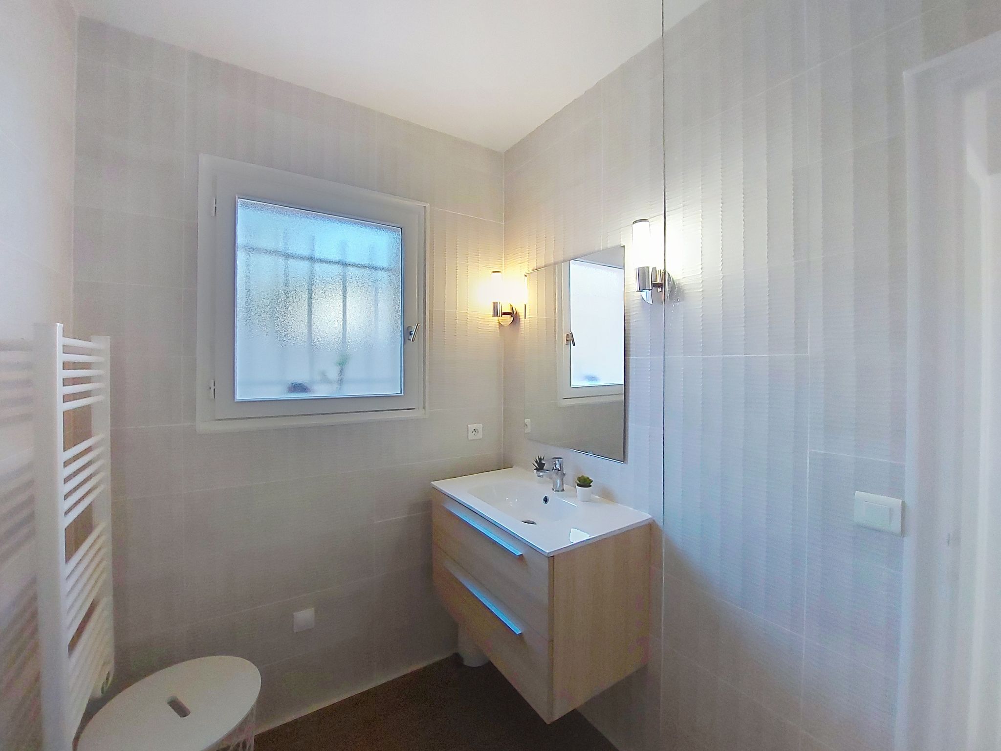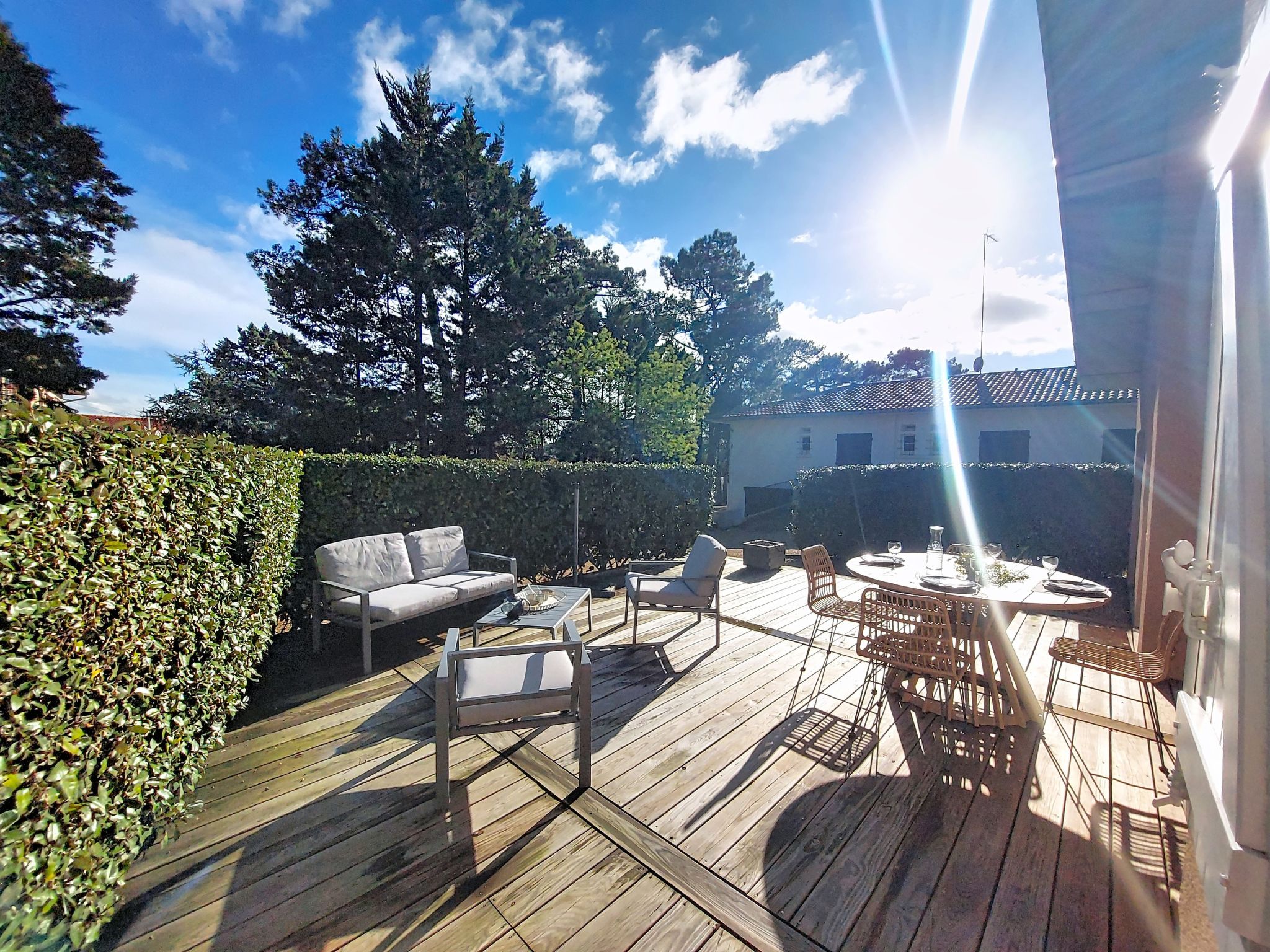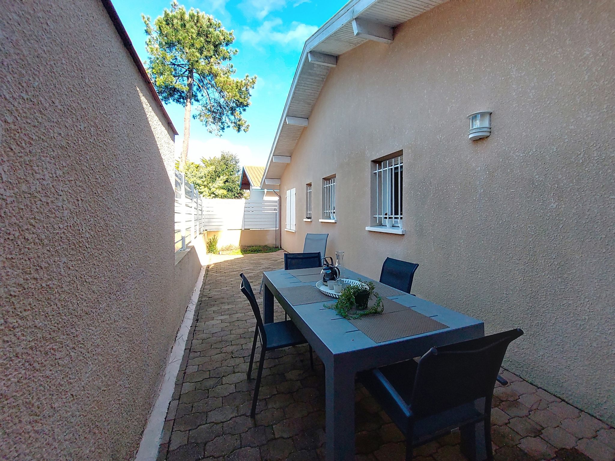 3-room house 80 m2. Comfortable and beautiful furnishings: living/dining room. Exit to the terrace. 1 room with 1 french bed (140 cm, length 190 cm). 1 room with 1 french bed (140 cm, length 190 cm). Kitchen (oven, dishwasher, 4 ceramic glass hob hotplates, toaster, kettle, microwave, electric coffee machine). Exit to the terrace. Shower, sep. WC. Electric heating. Terrace 20 m2, east facing position and west facing position terrace 10 m2, north facing position and west facing position. Terrace furniture. Facilities: washing machine, iron, hair dryer. Internet (WiFi, free). Parking. Please note: non-smoking house. Smoke alarm. Offer by a private individual according to Art. 155, IV of CGI. 40065002829QF