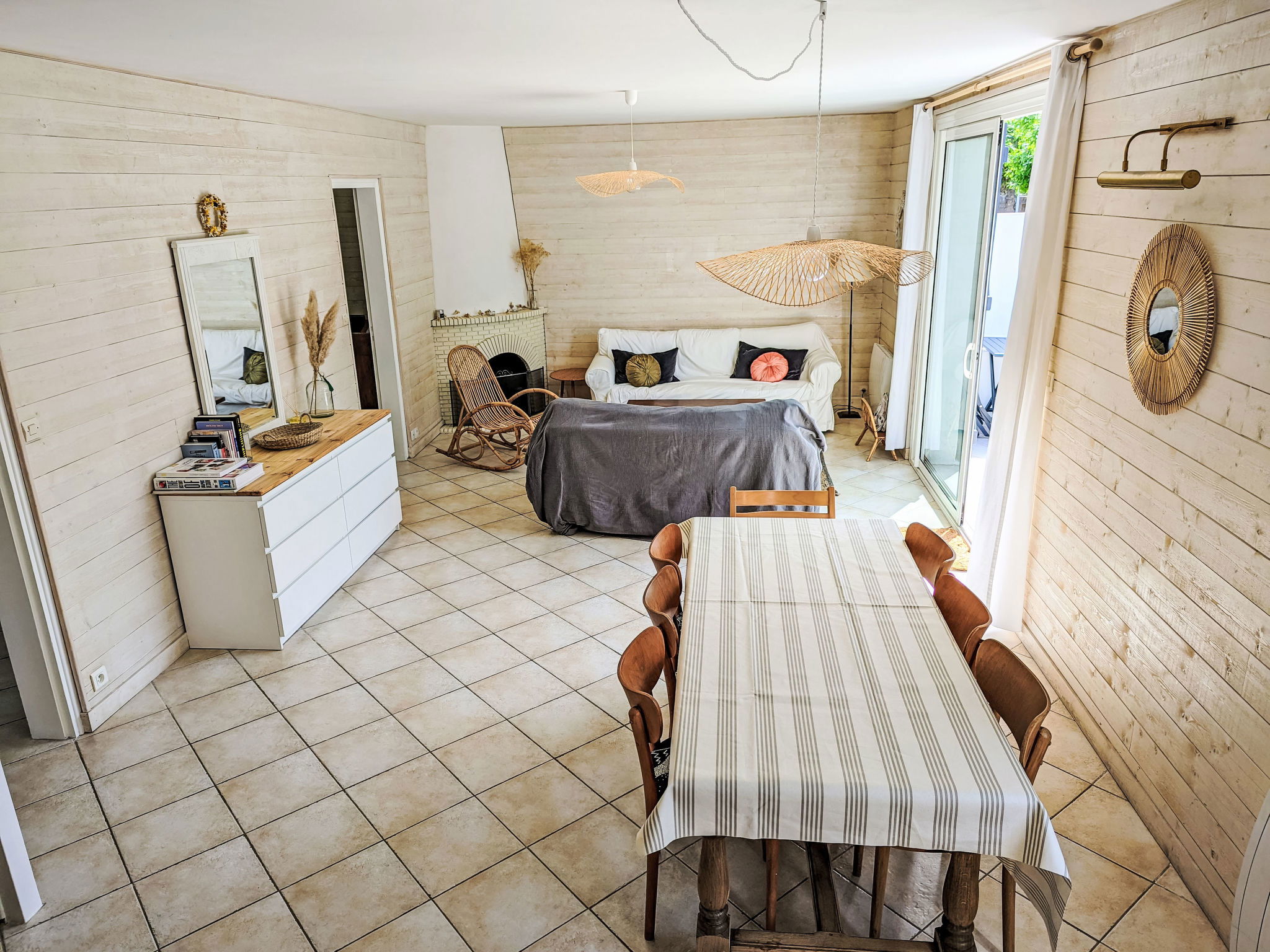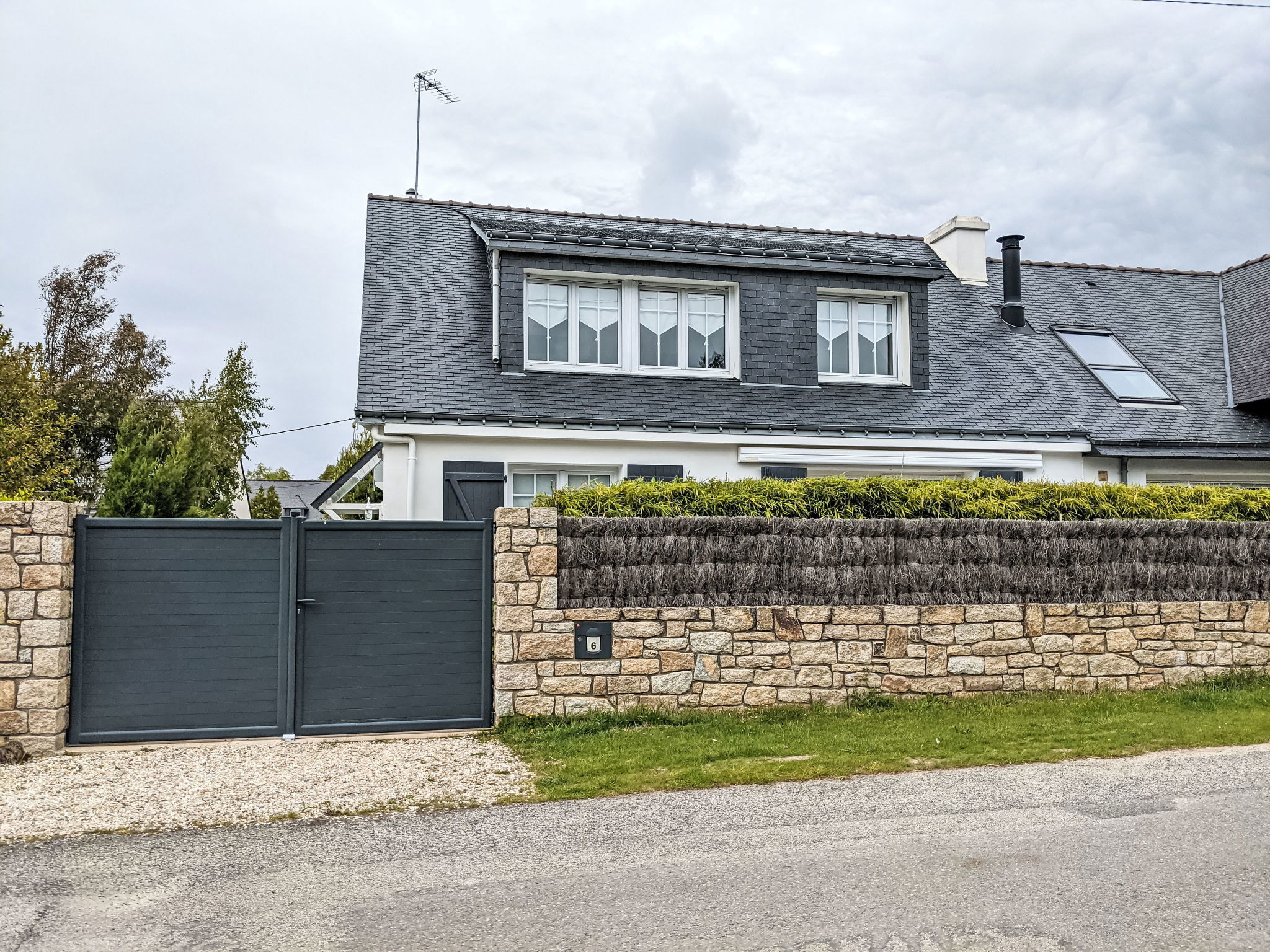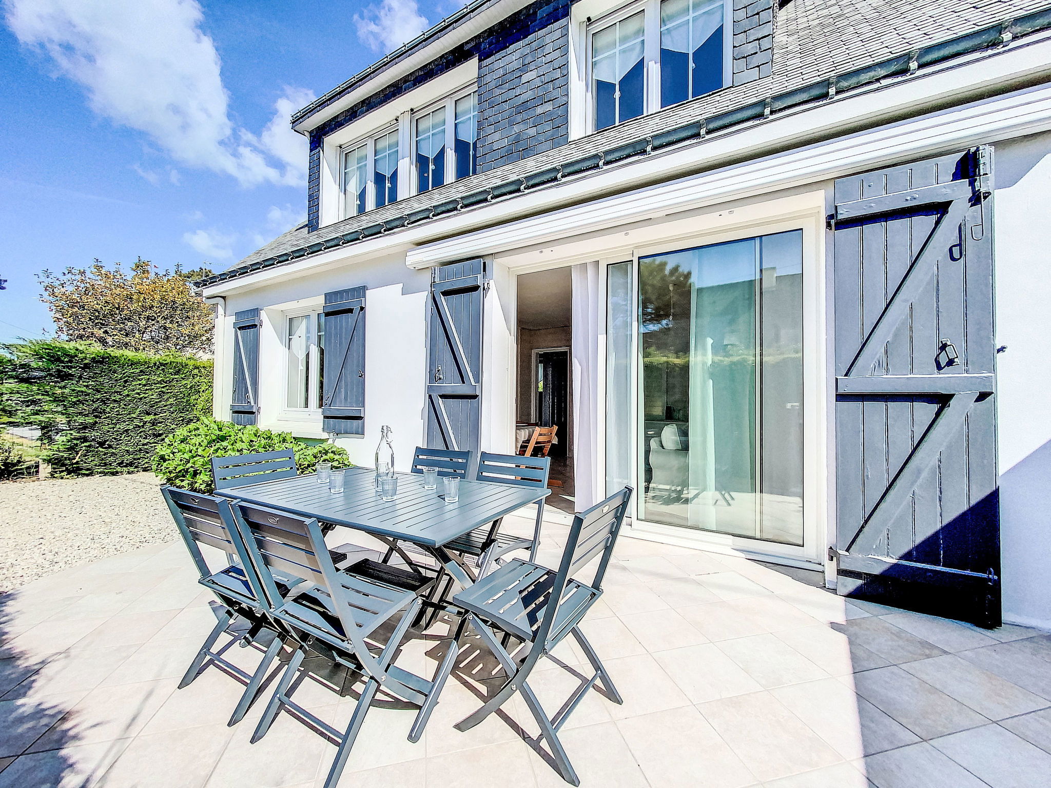 "Ty Bottez", 5-room house 130 m2. Comfortable furnishings: living/dining room. Exit to the terrace. 1 room with 1 french bed (1 x 160 cm, length 200 cm). 1 room with 2 beds (80 cm, length 190 cm). Kitchen (oven, dishwasher, 4 induction hot plates, toaster, kettle, microwave, electric coffee machine). Bathroom, sep. WC. Upper floor: gallery with TV (flat screen). 1 room with 1 french bed (1 x 160 cm, length 200 cm). 1 room with 1 x 3 bunk beds (90 cm, length 190 cm). Shower, sep. WC. Terrace. Terrace furniture, barbecue. Facilities: washing machine, dryer, baby cot, hair dryer. Internet (WiFi, extra). Please note: non-smokers only. 1 pet/ dog allowed. Smoke alarm. Offer by a private individual according to  Art. 155, IV of CGI. 56034000462C4