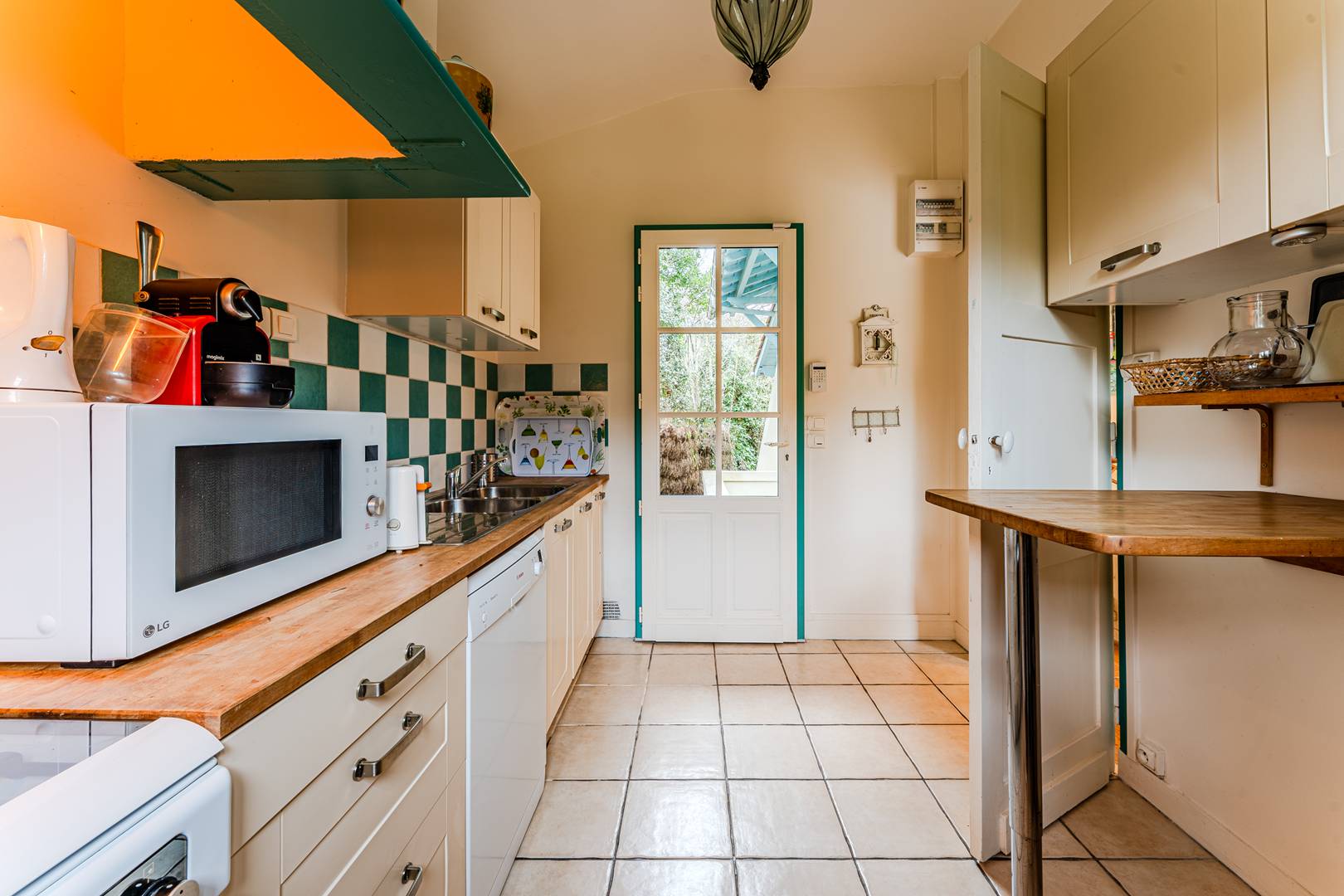 The entrance is through a fully equipped, separate kitchen including a dishwasher, microwave, four-burner gas hob, large fridge with freezer, and a Nespresso machine. It leads to a southeast-facing dining room, which opens directly onto a terrace at the front of the house. The bright and comfortable TV lounge benefits from dual southeast and northeast exposure and features a sofa. The sleeping area comprises three bedrooms. Two bedrooms, facing due south, each have a 90cm pull-out bed providing two sleeping spaces and storage; the second also has a separate entrance leading to the garden. The third bedroom, facing northeast, has a 160cm double bed. The bathroom with a washing machine, accessible only from this third bedroom via two wide, steep steps or from the outside, completes the sleeping area. Two pleasant terraces complete the property: a large terrace of approximately 70 m² at the front and a second terrace of approximately 50 m² at the rear, partially shaded by a pergola, ideal for meals and relaxation. Parking is easy and free on the street. The house is well-equipped, easy to maintain, and particularly comfortable. The nearest shops (pharmacy, grocery stores, etc.) are just 200 meters away, Arcachon town center is a five-minute drive, and the nearest beach is a twenty-minute walk. Pets are not allowed. Linens are not provided but can be rented from our partner LocLinge (promo code: vacances33). End-of-stay cleaning is included, provided the property is kept in normal condition during the rental period. Cancellation insurance is available as an option. This furnished tourist accommodation is rated 3 stars by Etoiles de France in July 2024.