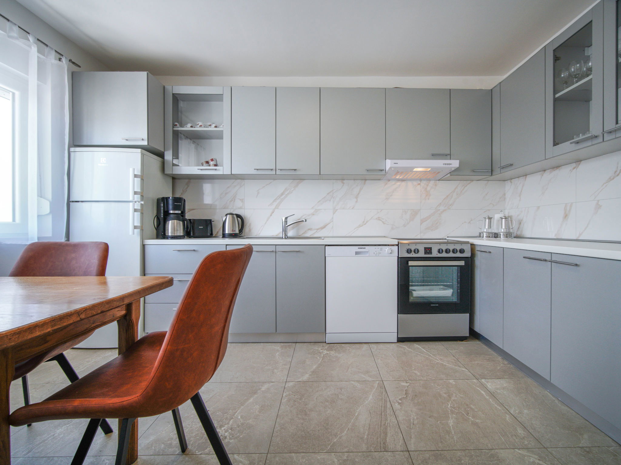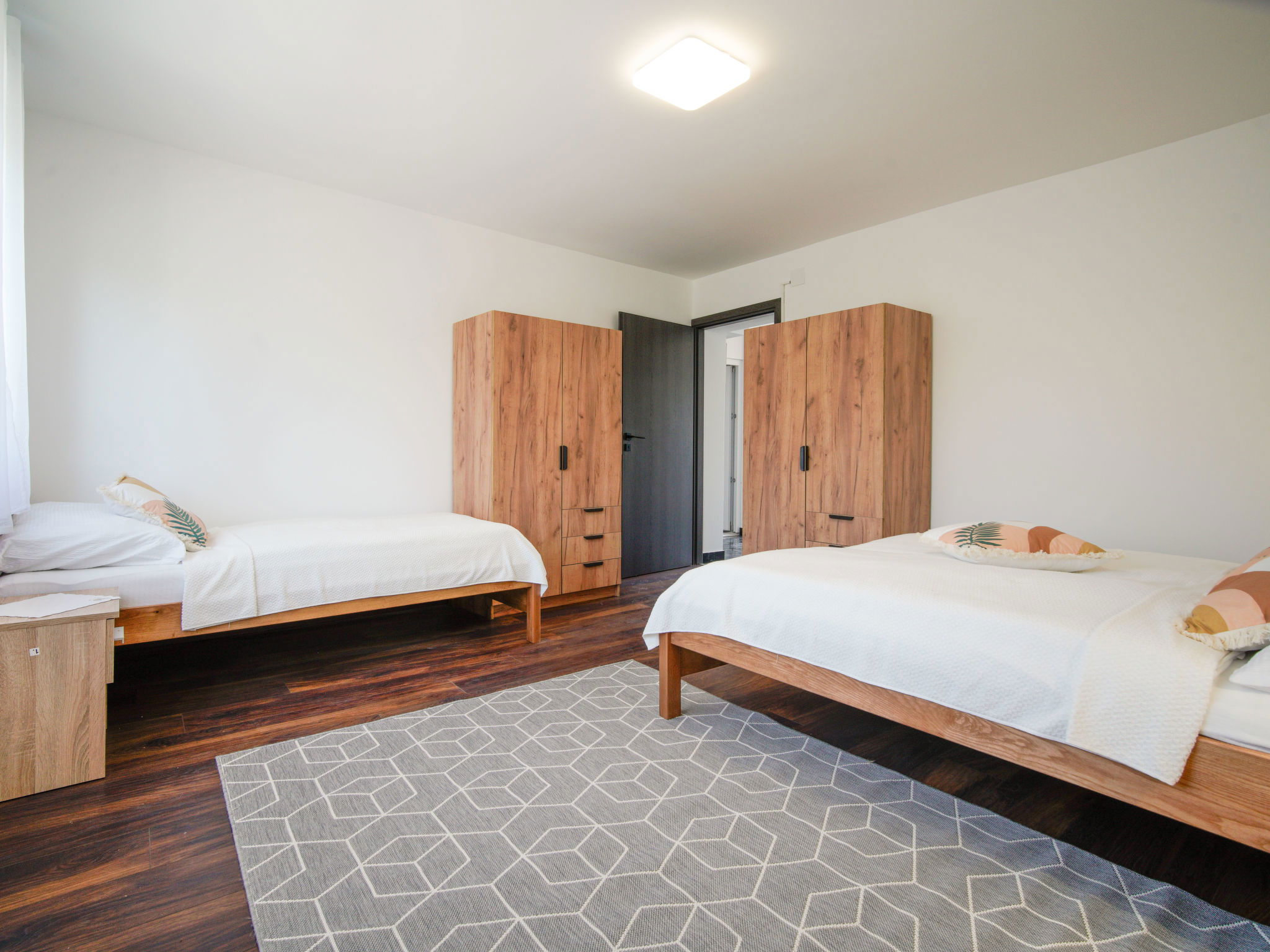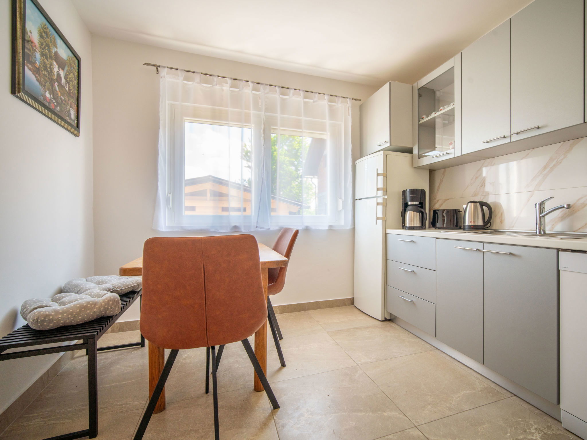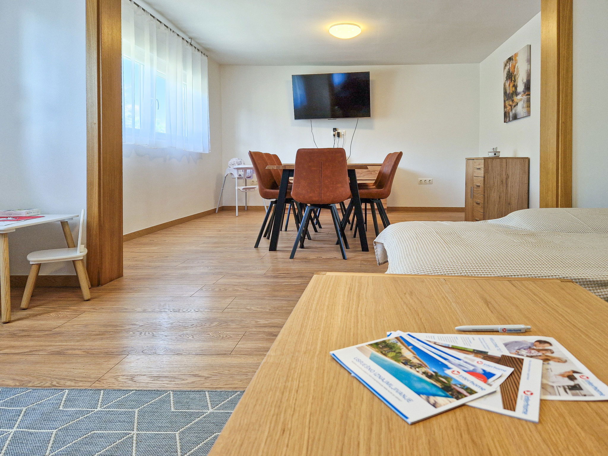 4-room house 140 m2 on 2 levels. Living/dining room with cable TV (flat screen), wood-burning stove. Open kitchen (oven, dishwasher, 4 ceramic glass hob hotplates, toaster, kettle, freezer, electric coffee machine). Shower/WC. Upper floor: 1 room with 1 double bed (2 x 80 cm, length 200 cm). 1 room with 1 bed (90 cm, length 200 cm), 1 double bed (2 x 80 cm, length 200 cm). 1 room with 1 double bed (2 x 80 cm, length 200 cm), shower/WC. Exit to the balcony. Shower/WC. Wood heating, forced-air heating. Small balcony 2 m2, balcony 4 m2. Balcony furniture. View of the countryside. Facilities: baby cot, hair dryer, logs (free). Internet (WiFi, free). Please note: non-smoking house. Maximum 1 pet/ dog allowed. Fire extinguisher.