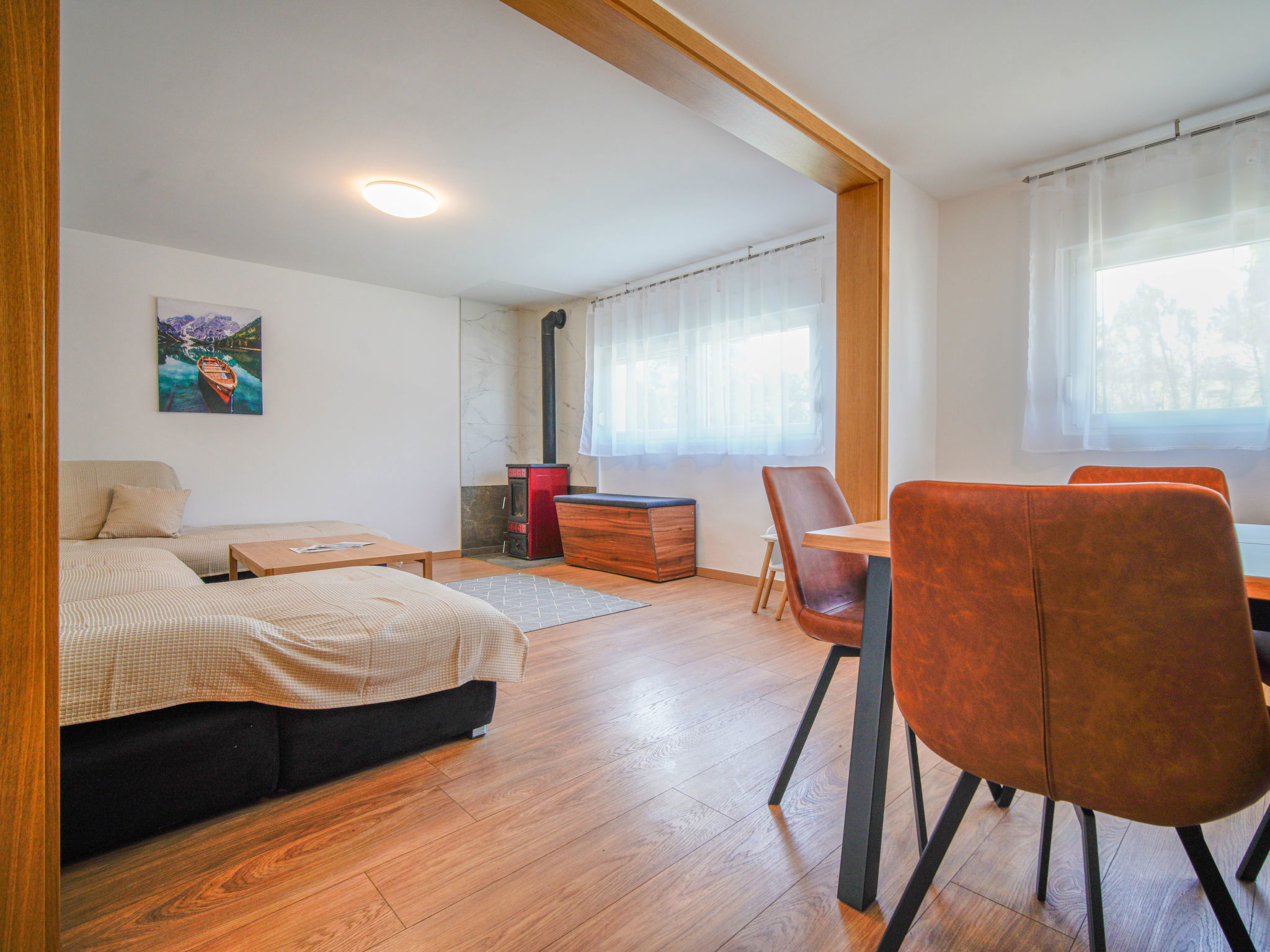 Belavići: Comfortable single-family house "Golub", 2 storeys, renovated in 2025. 4.3 km from the centre of Duga Resa, 14 km from the centre of Karlovac, 100 km from the sea, 1 km from the river, located by a road. Private: property 350 m2 with lawn 40 m2 flowers. Hot tub, pergola (20 m2), barbecue. In the house: internet access, washing machine, tumble dryer. Parking (for 4 cars) at the house on the premises. Supermarket 650 m, restaurant 600 m, bus stop, railway station 500 m. Nearby attractions: Old Town Bosiljevo 23 km, Old town Novigrad na Dobri 13 km, River Mrežnica 1 km. Please note: suitable for families. The owner lives on the same property.