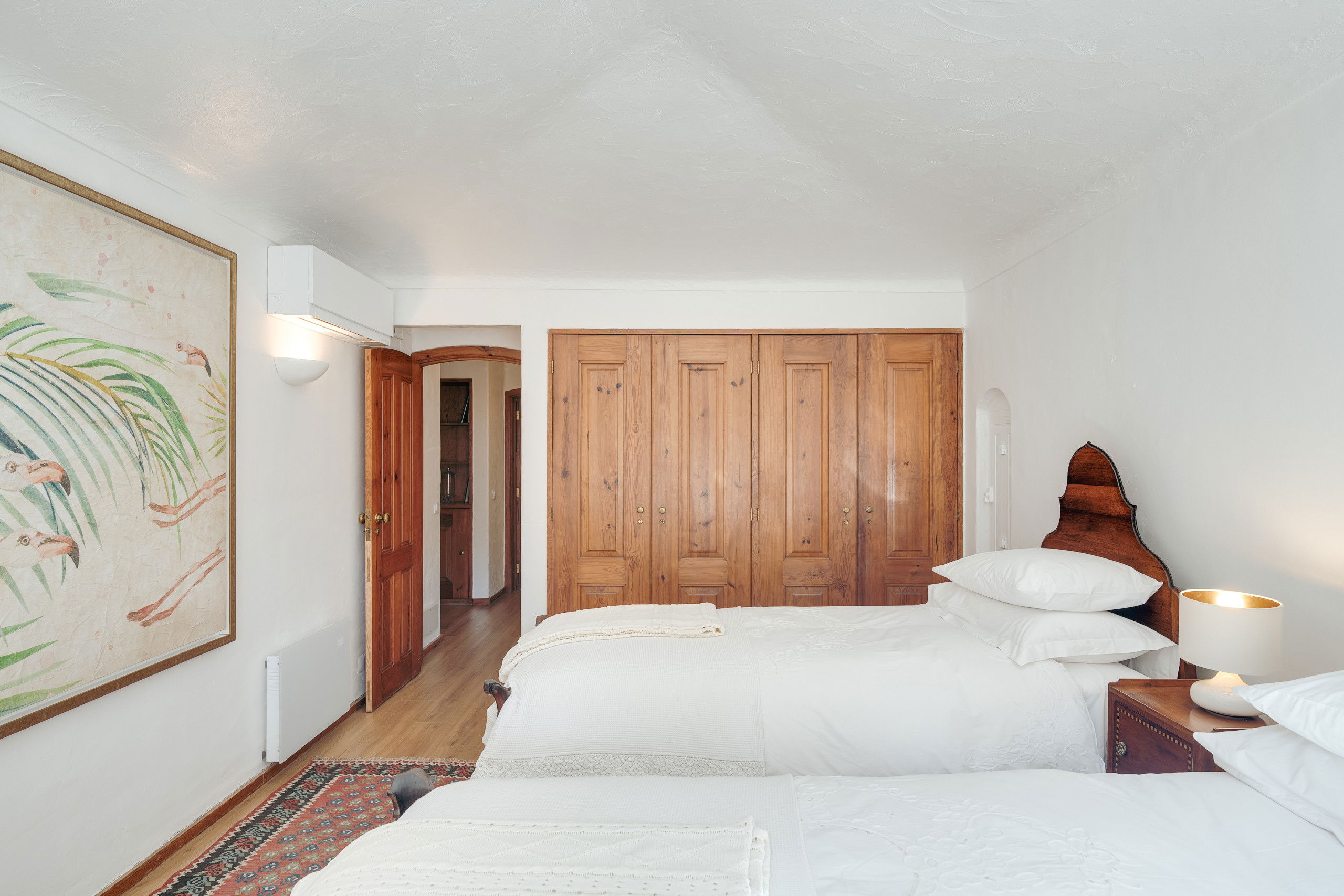 The main house, offers a spacious living room with two fireplaces, an elegant dining room with a third, and a well-equipped kitchen and laundry area. A guest suite completes the ground floor, while upstairs, a master suite, two additional bedrooms, and a bathroom provide comfortable and beautifully crafted accommodations. Air conditioning, high-speed Wi-Fi, and exquisite Portuguese tilework add to the villa’s comfort and charm. In the additional guest flat, a private entrance opens onto a cosy living room, open kitchen, two bedrooms, a bathroom, and a small laundry—perfect for guests or family members who desire extra privacy.