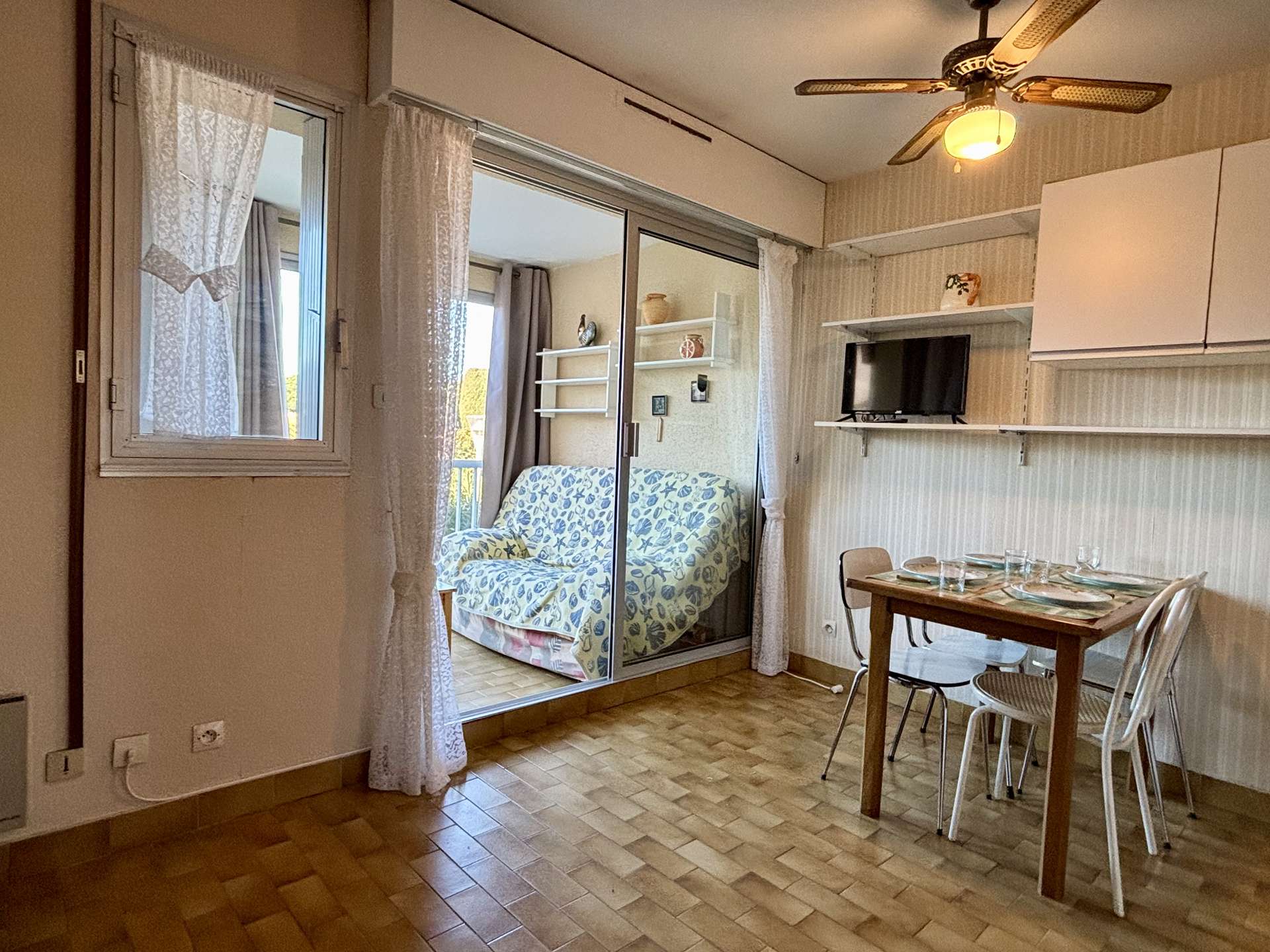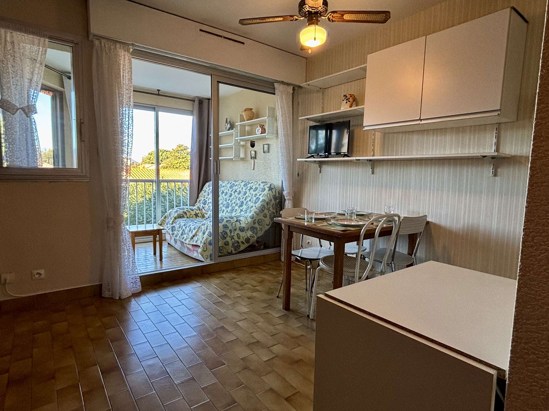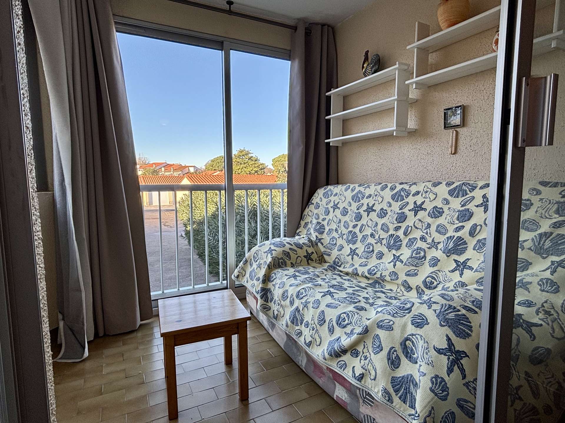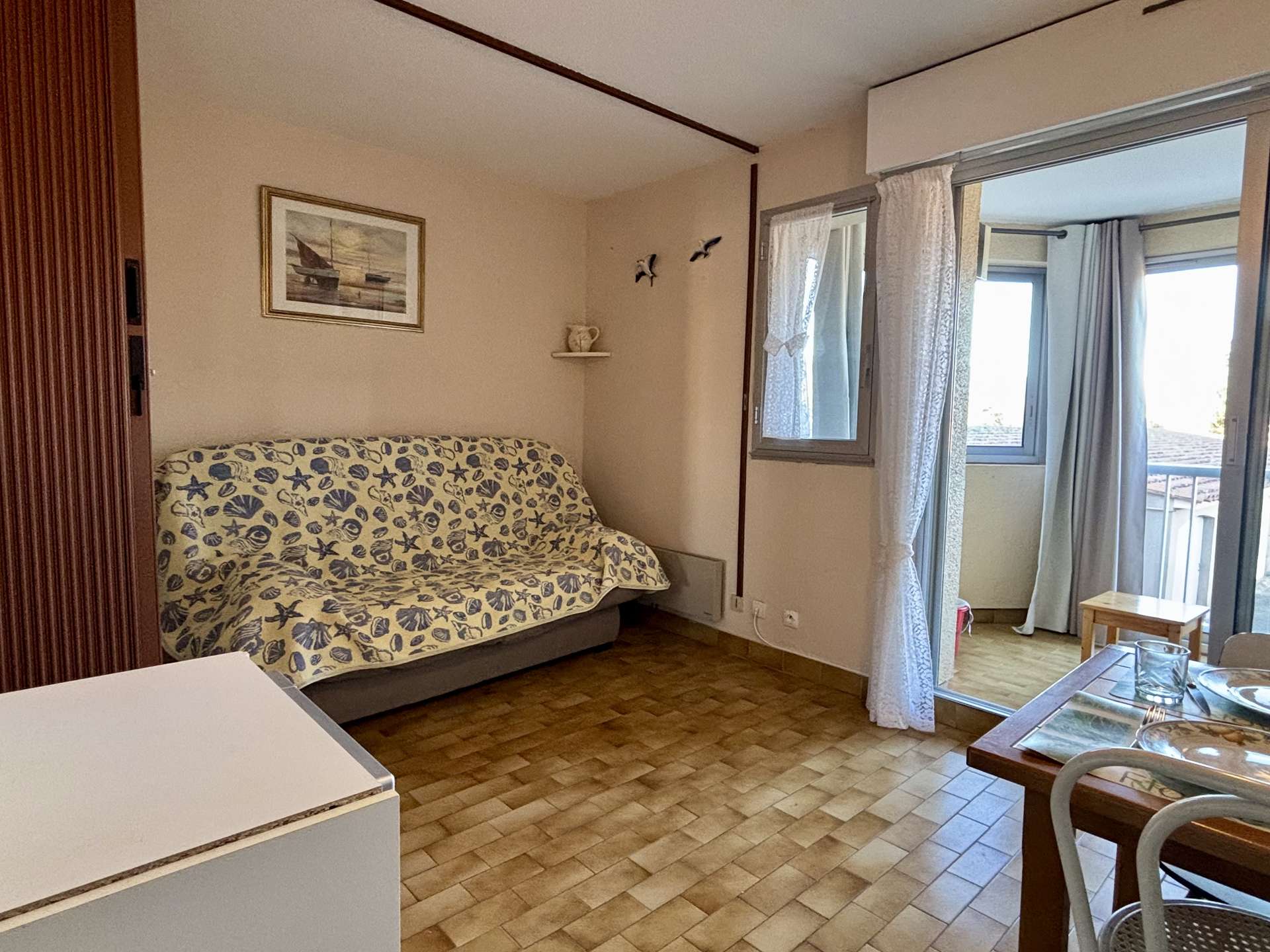 - Un séjour lumineux équipé d’un canapé convertible 2 places