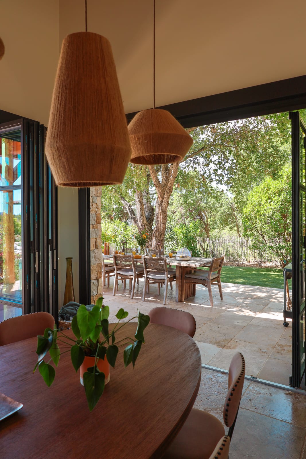 The living / dining room with an area of about 80m2 has large openings overlooking the pool and the terrace.