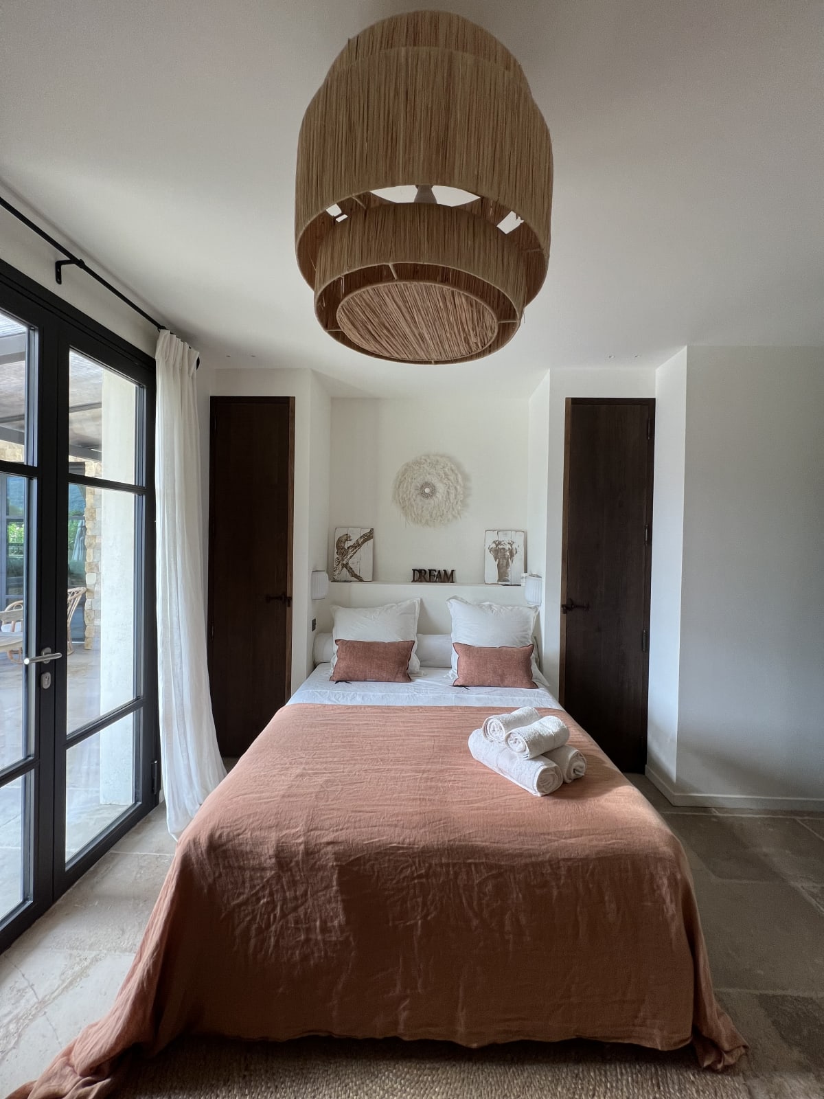 Bedroom 1: Queen size bed (160 * 200) with shower room, toilet and closet. Access to swimming pool and garden.
