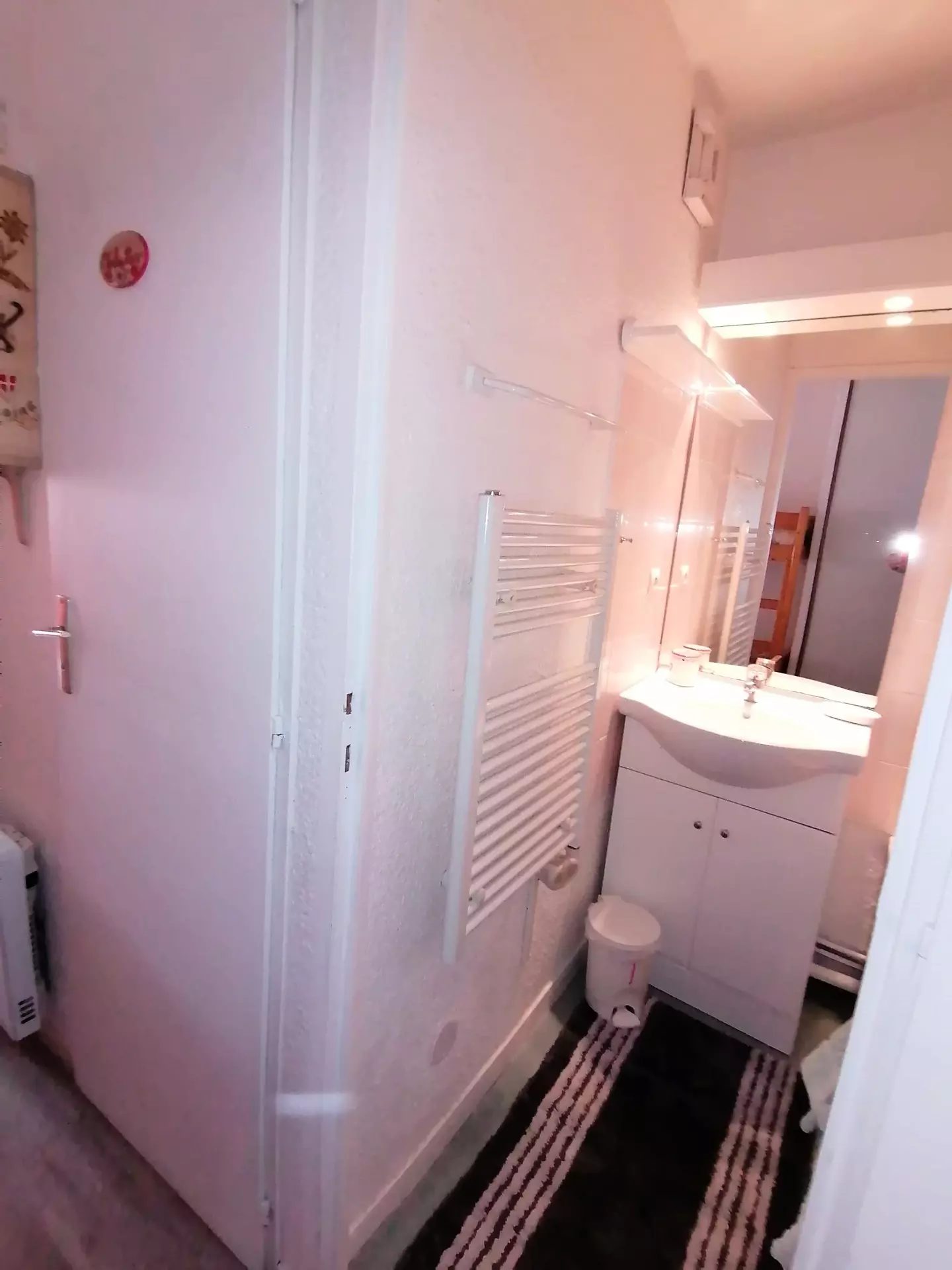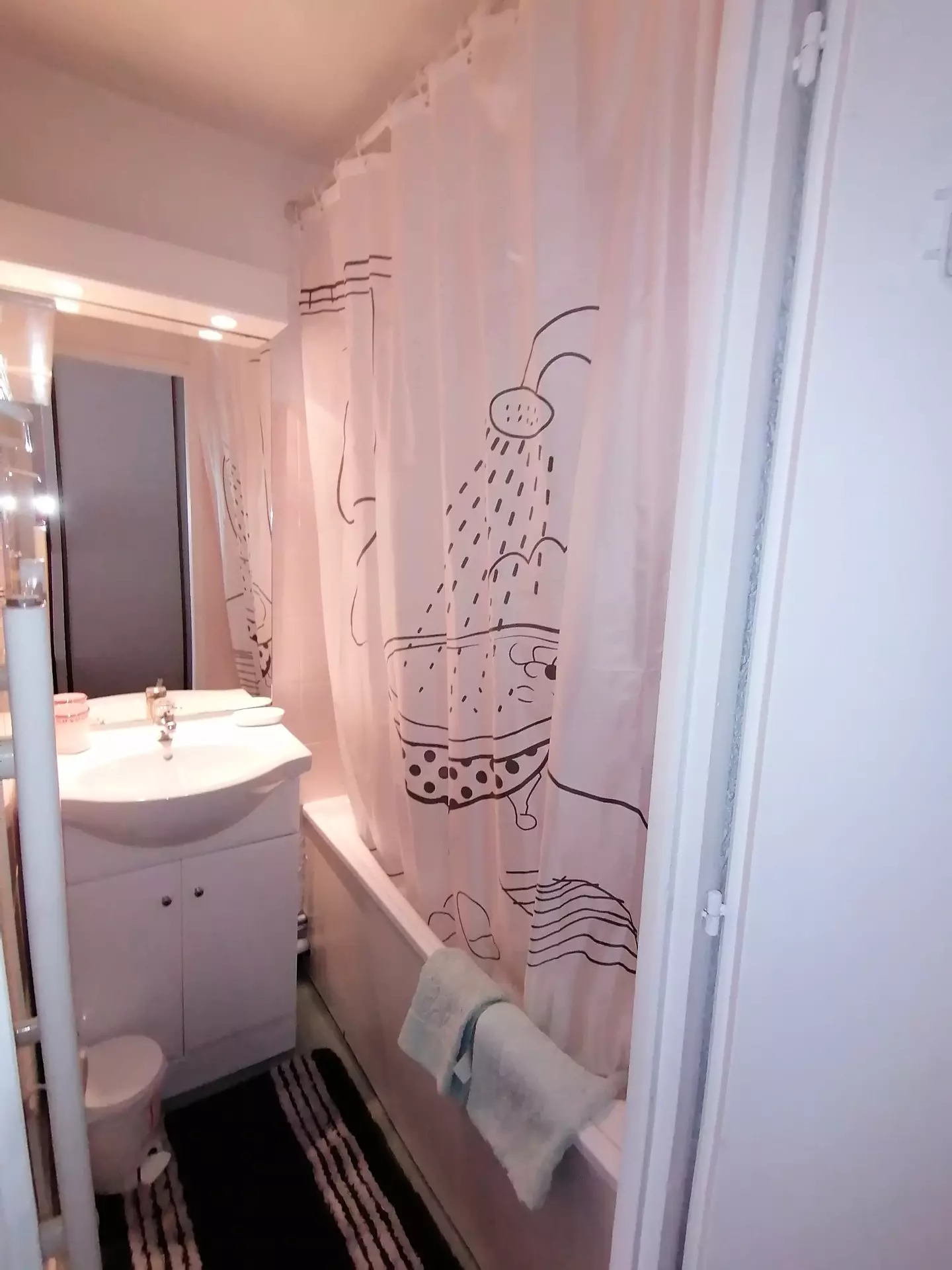 Bathroom: sink, bathtub and hairdryer. Separate WC with washing machine.