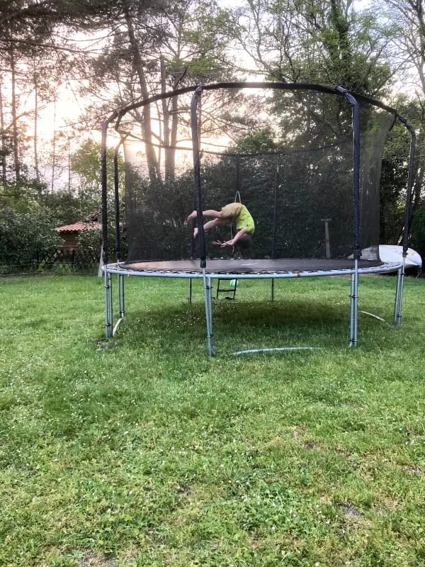 - a ping pong table, a slide, and a trampoline for the enjoyment of young and old alike;