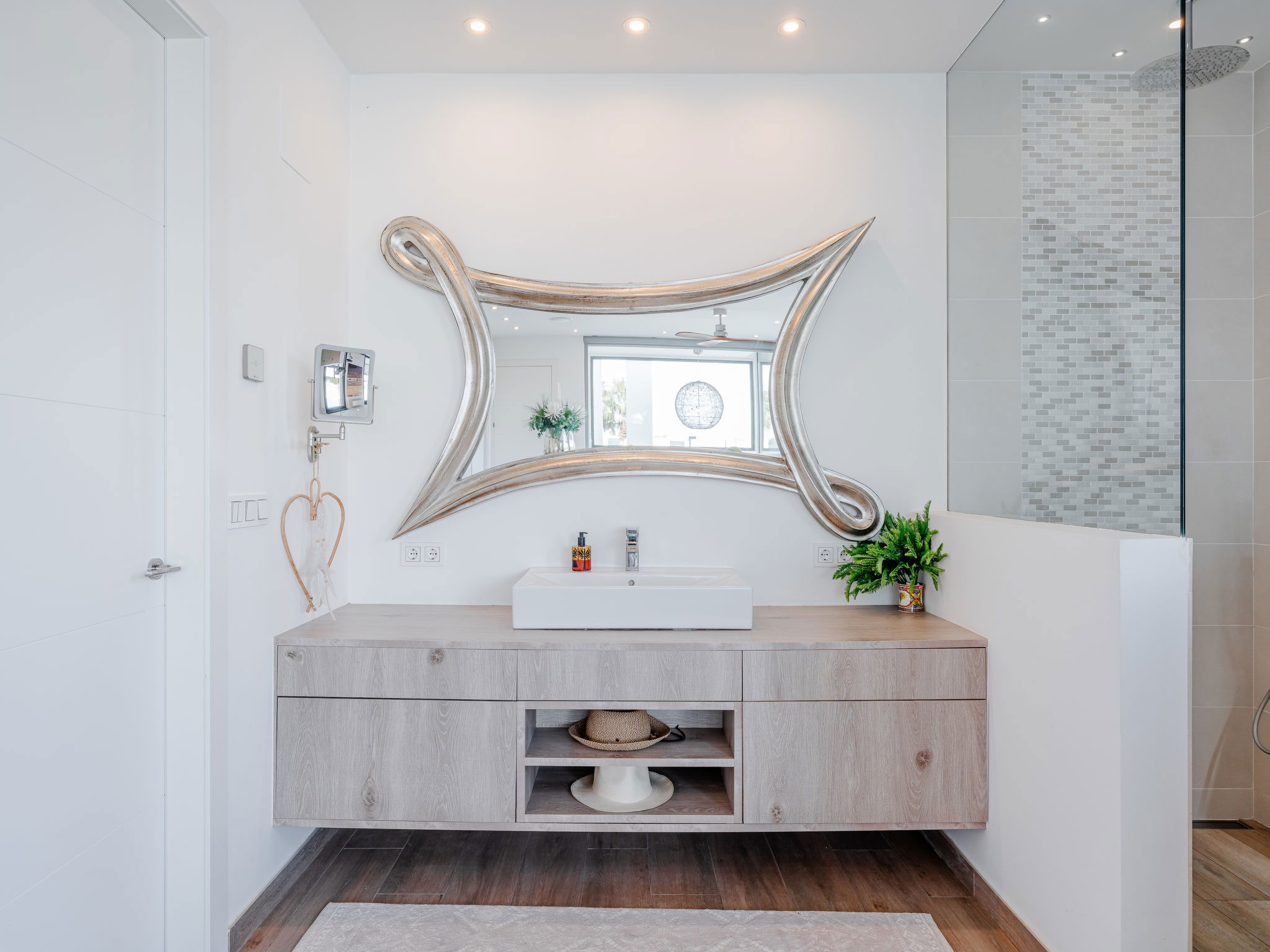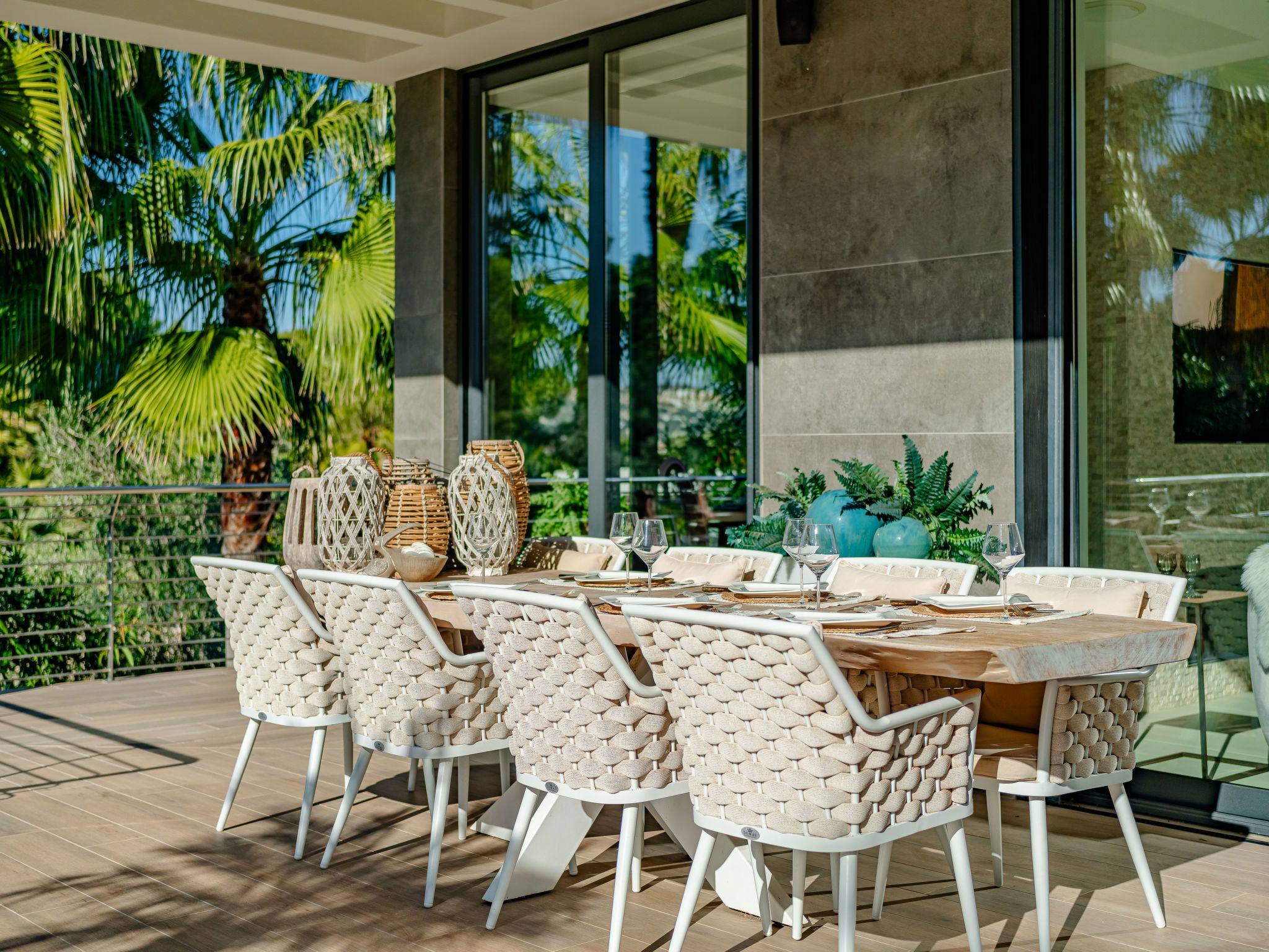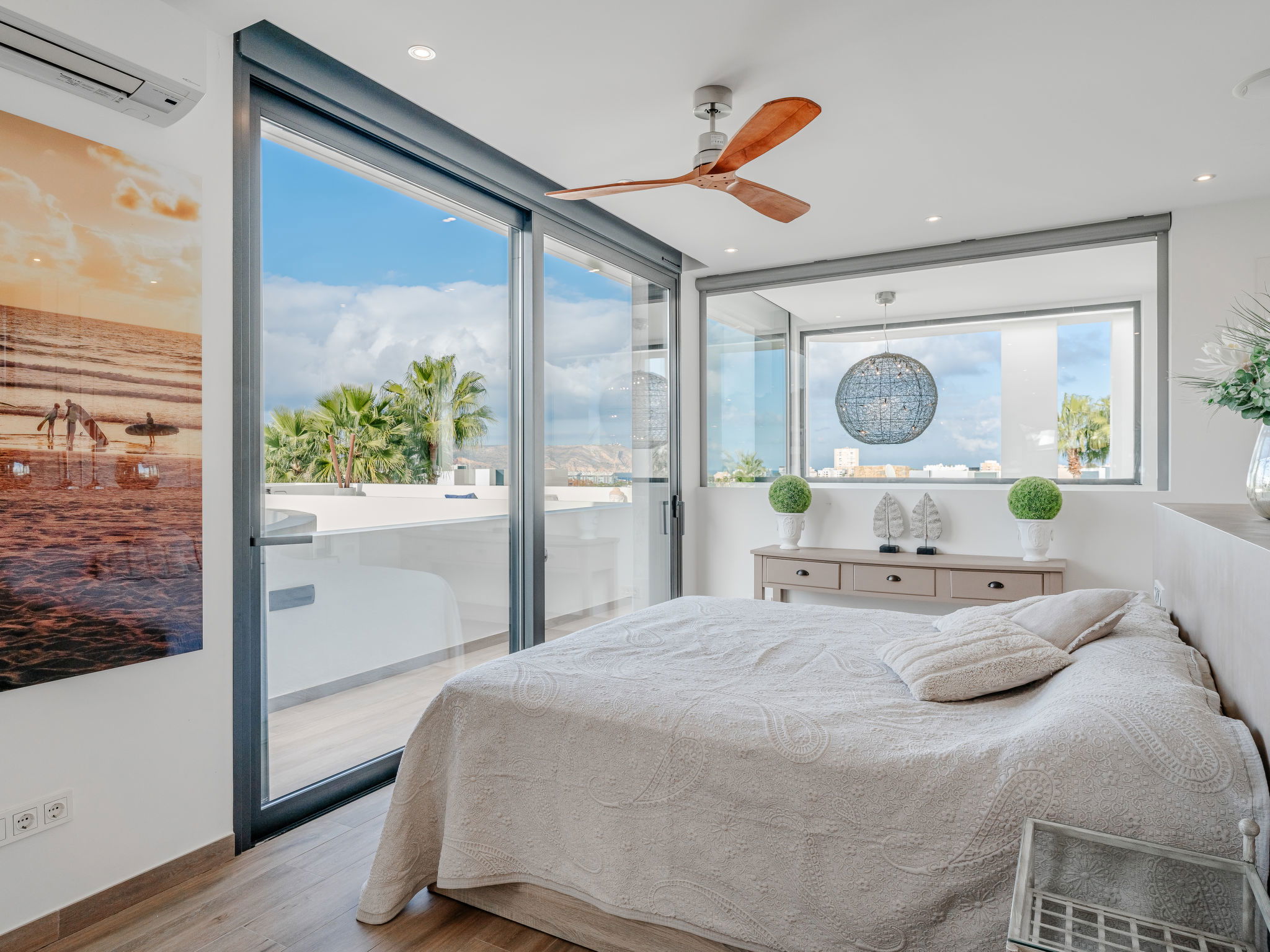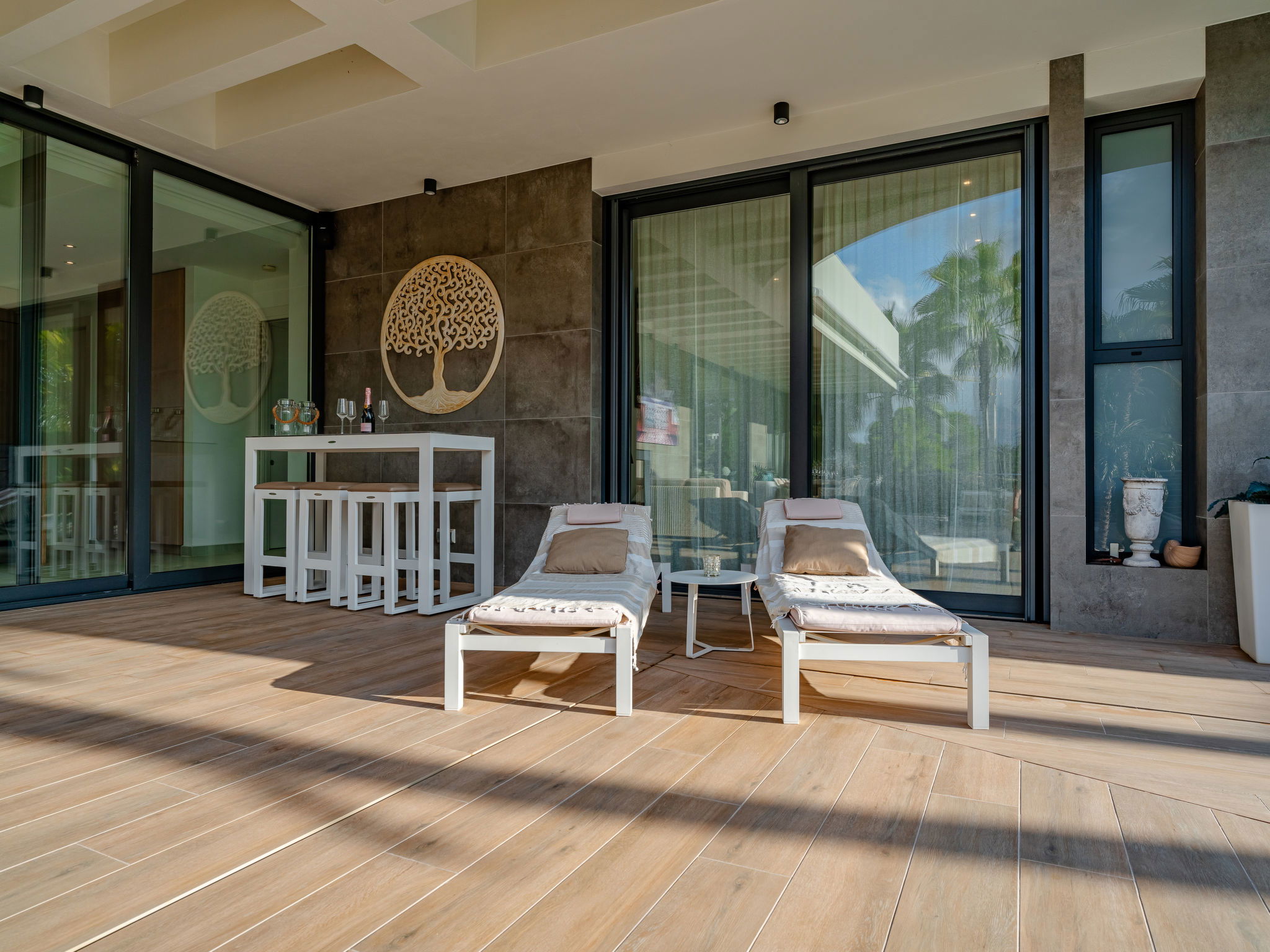 "Villa Essence", 4-room villa 220 m2 on 2 levels. Spacious and bright, very modern and stylish furnishings: living/dining room with satellite TV, air conditioning and forced-air heating. Exit to the terrace, to the swimming pool. 1 room with 1 french bed (2 x 90 cm, length 200 cm), shower/WC, air conditioning, fan and forced-air heating. Exit to the terrace, to the swimming pool. 1 room with 1 double bed (2 x 90 cm, length 200 cm), bath/shower/WC, air conditioning, fan and forced-air heating. Exit to the terrace, to the swimming pool. Large, open kitchen (oven, dishwasher, 5 induction hot plates, toaster, kettle, microwave, freezer, electric coffee machine, cooking island) with air conditioning and forced-air heating. Exit to the patio, to the swimming pool. Upper floor: 1 room 100 m2 with Dressing room with 1 french bed (180 cm, length 200 cm), separate WC, shower, air conditioning, fan and forced-air heating. Exit to the terrace. Large terrace, large garden. Terrace furniture, barbecue, deck chairs, sitting area. Very beautiful view of the mountains, the swimming pool and the garden. Facilities: washing machine, dryer, iron, children's high chair, baby cot, hair dryer. Internet (WiFi, free). Parking. VT-498490-A // Reg. Nr.: ESFCTU00000307100093229200000000000000000VT-498490-A1