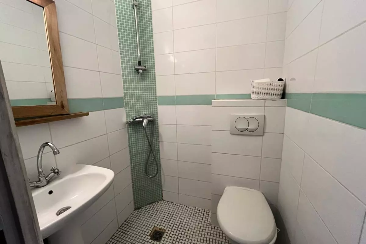 The sleeping area features a comfortable double bed (140 x 190 cm), perfect for relaxing after a day of exploring. You'll also find a fully equipped kitchen for preparing meals, as well as a modern shower room. The living room offers a peaceful space to unwind.