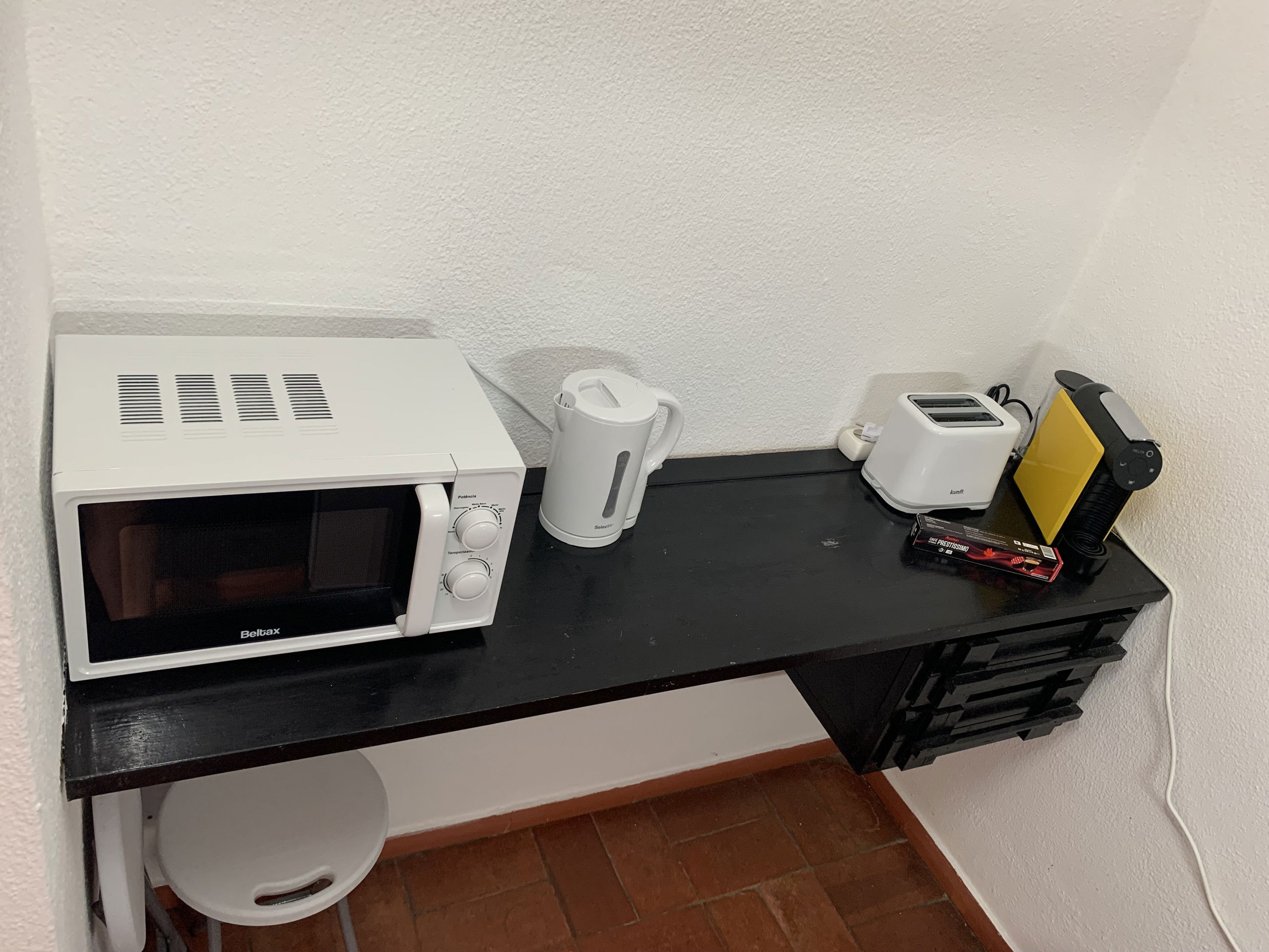 Equipped with an independent and fully functional kitchen, having all the necessary appliances available: refrigerator, coffee machine, oven, vitroceramic hob, microwave, toaster, kettle, hand blender and complete crockery. Ideal for preparing meals or snacks.