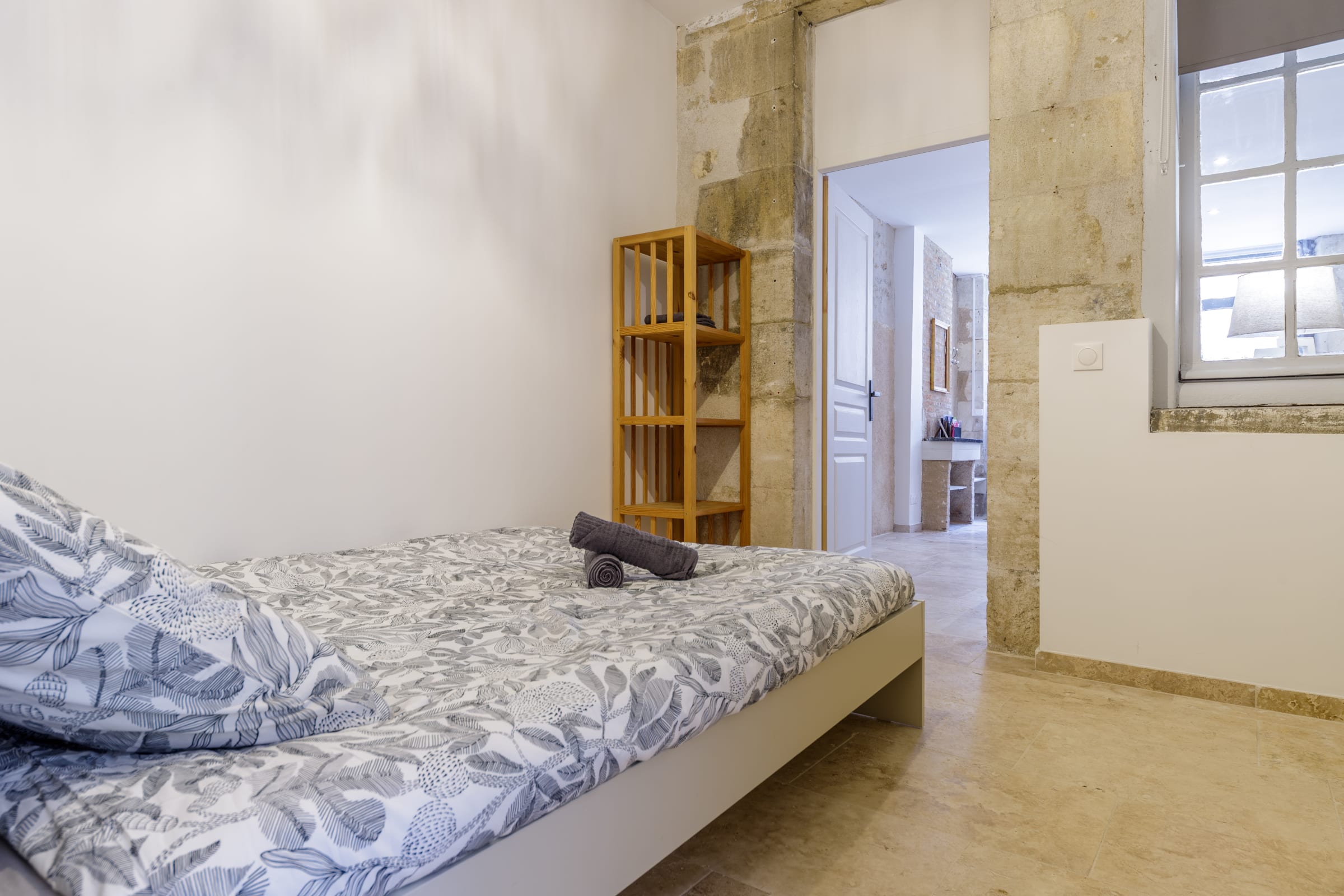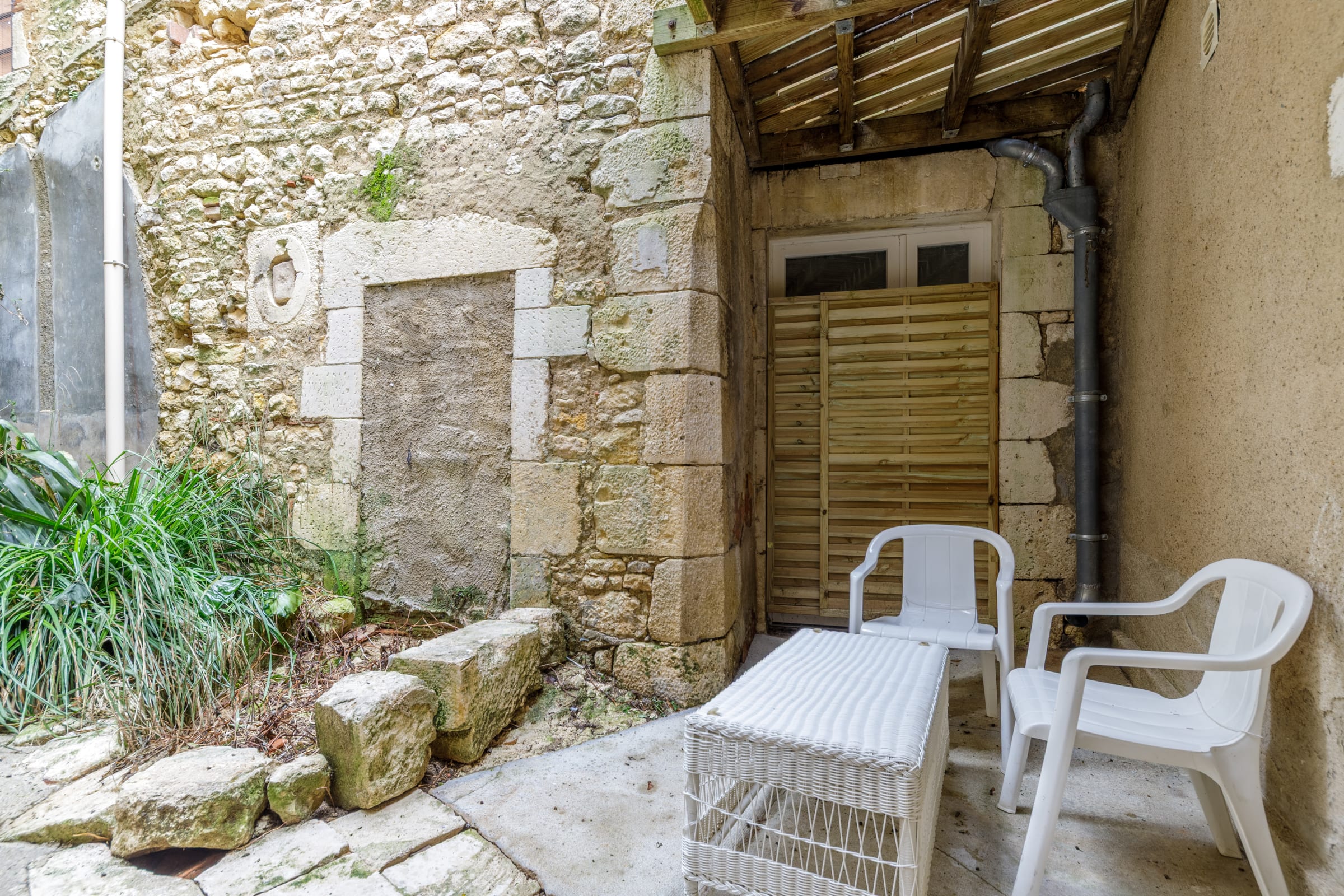 Outside, you can enjoy a small private courtyard with a table, ideal for a coffee or snack in peace.