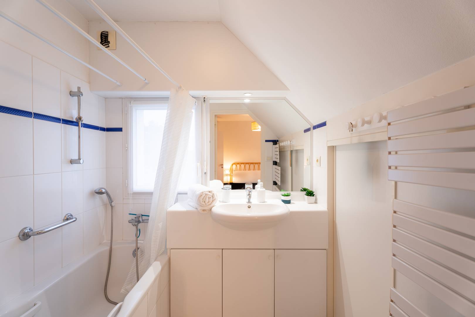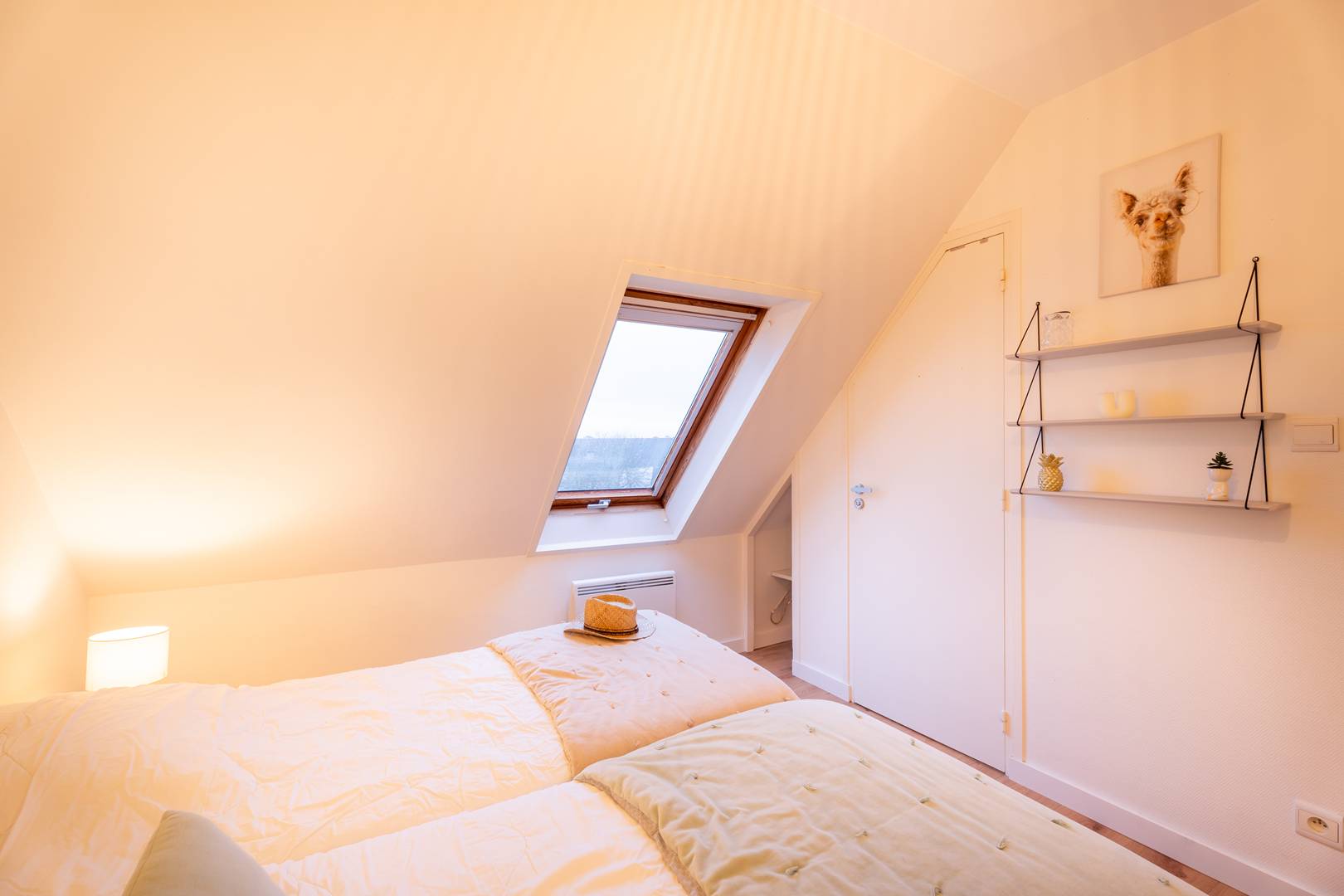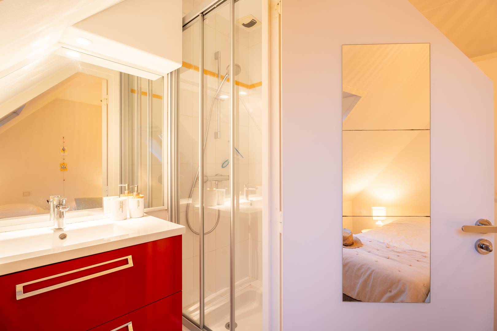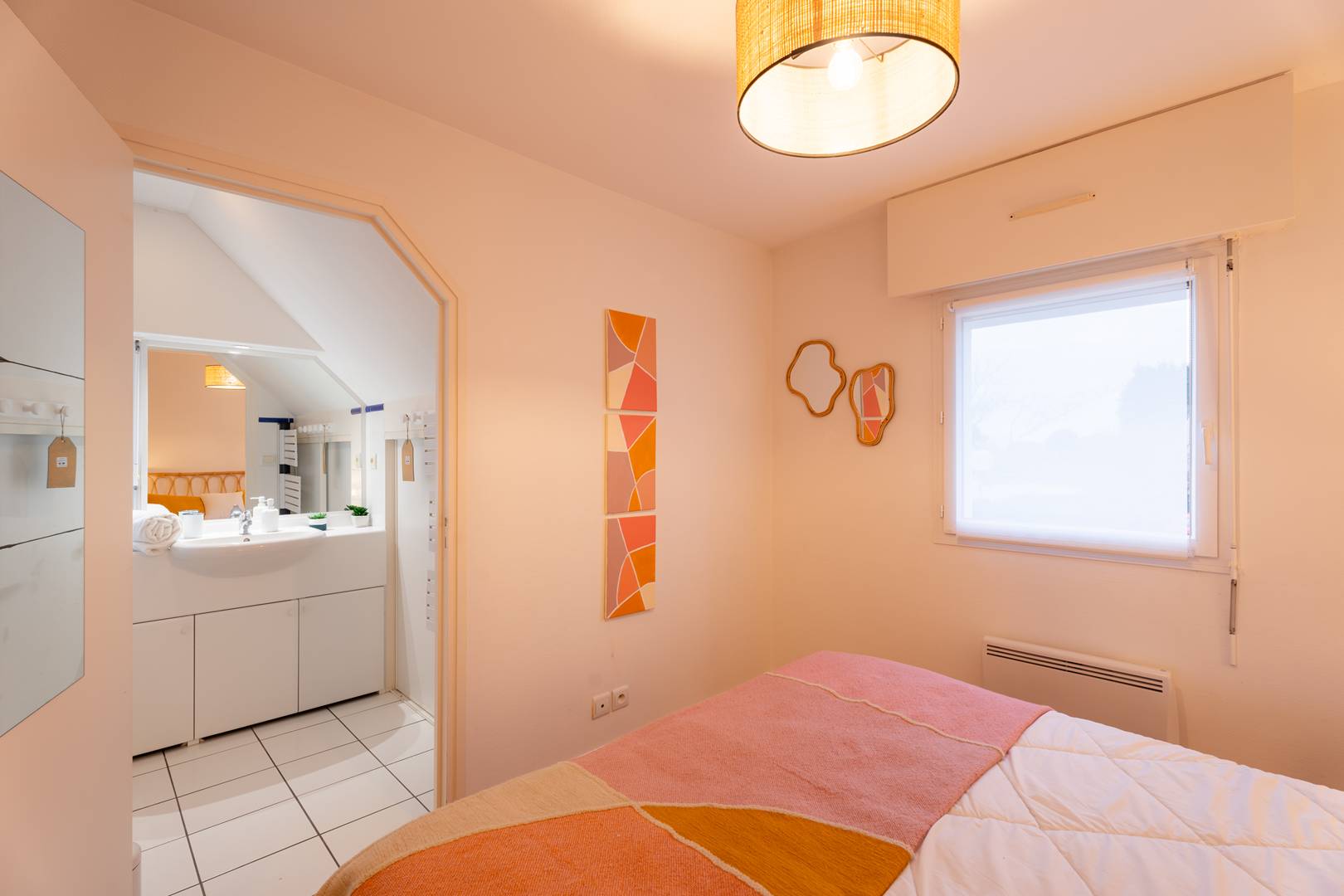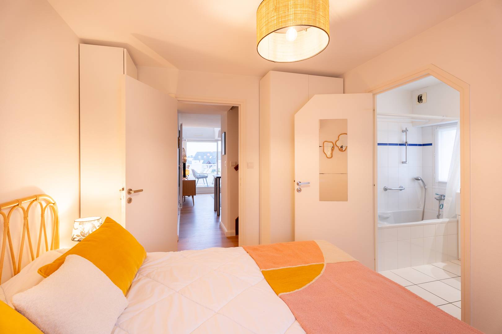 - 1 master suite with a double bed (160 cm, duvet), storage, and adjoining bathroom
