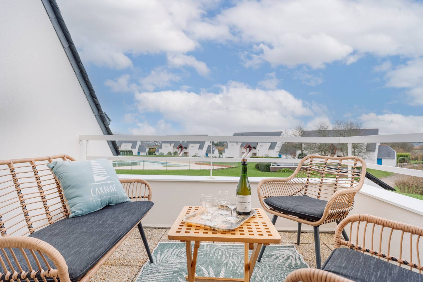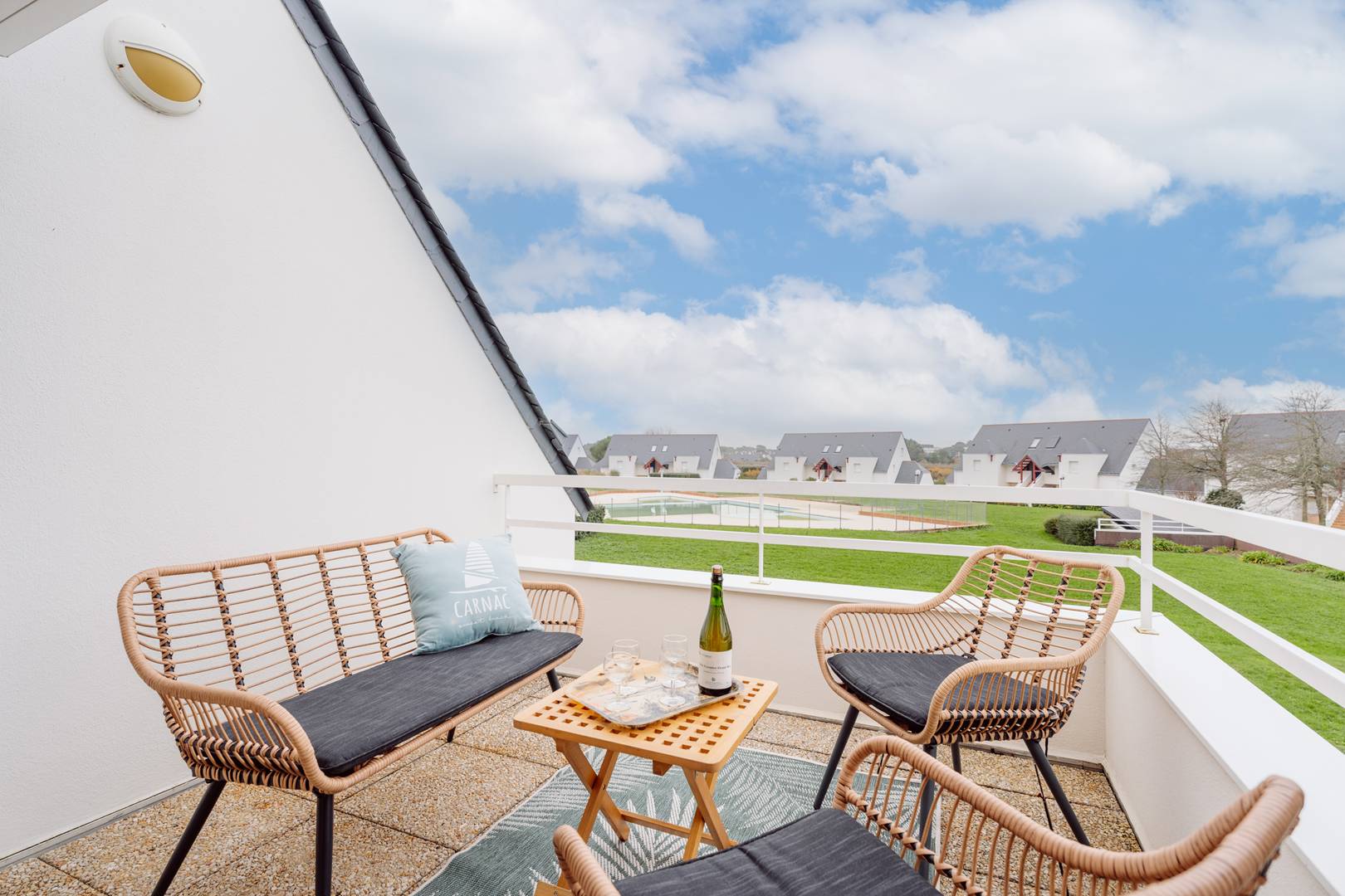 Just 1km from the Légenèse beach, the Thalassotherapy and Carnac town center, 3-room duplex apartment (approx. 50m²) for 4 people, located in a quiet residential complex with heated collective pool open from mid-June to mid-September, Residence LE DOMAINE DES TADORNES (Building G, on the 1st floor, door 77):