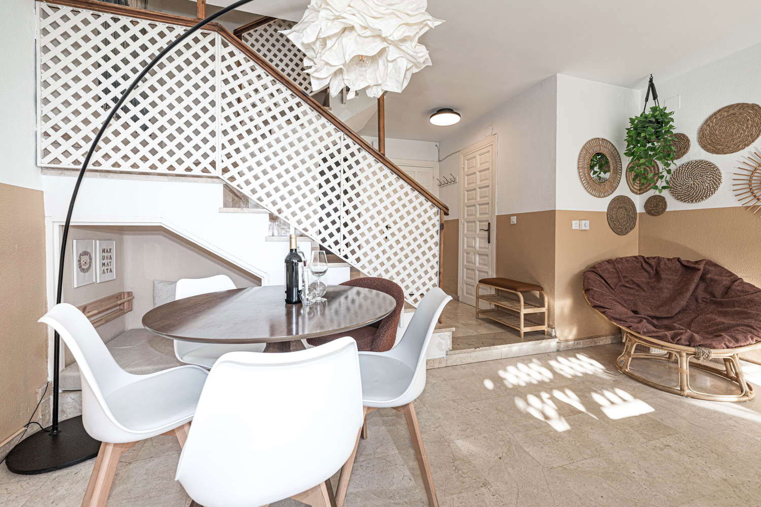 The Property: Duplex distributed over two floors with excellent natural light. It consists of 2 bedrooms (the master with a double bed and balcony; the second with two single beds) and 2 bathrooms (one with a bath on the upper floor and another with a shower on the lower floor). The kitchen is spacious, modern and functional. The living-dining room acts as the heart of the home, offering a comfortable sofa, a games corner and a sn of books and board games designed for adult leisure.