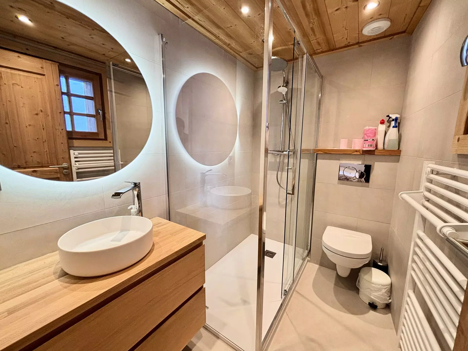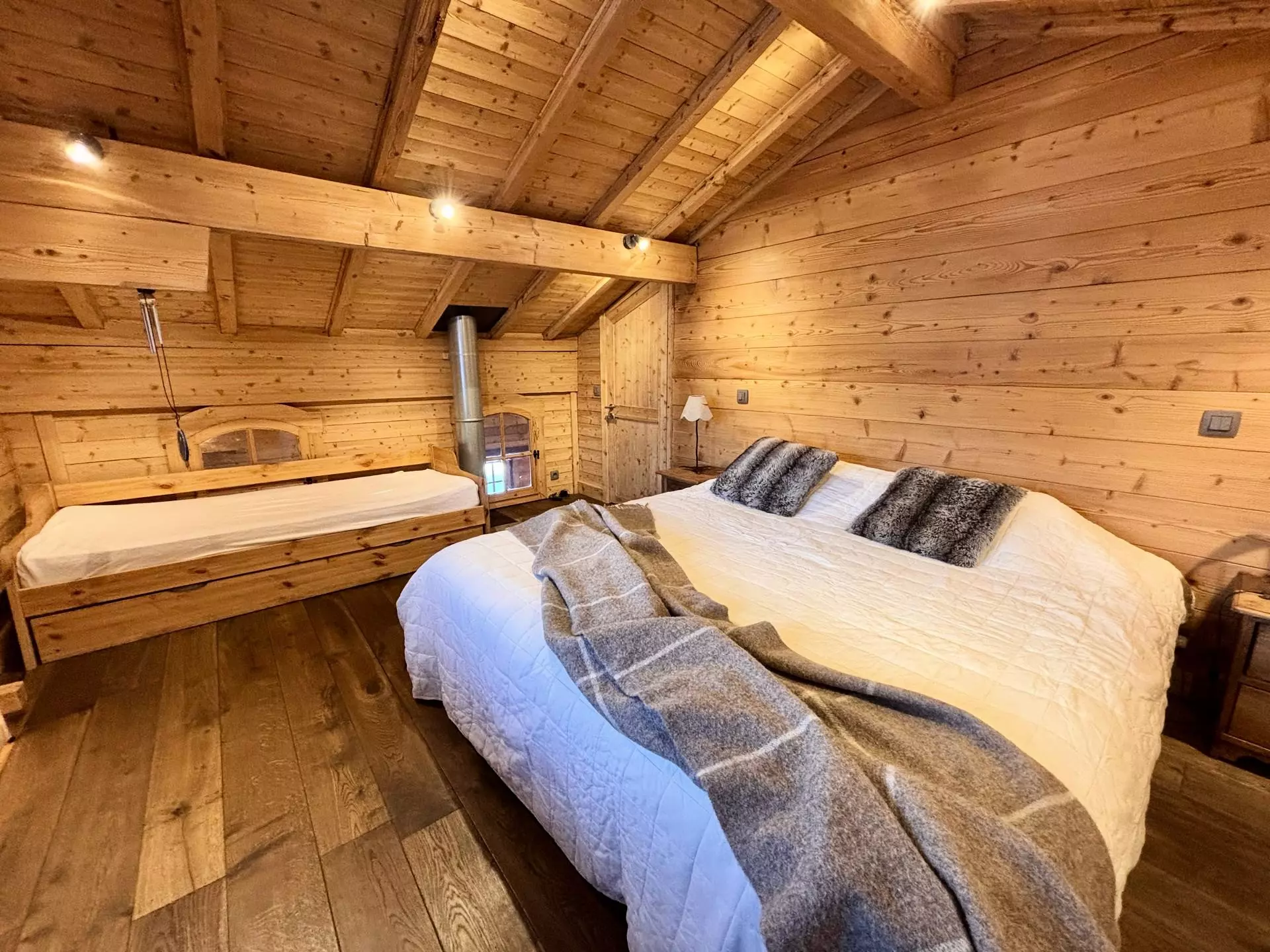 The chalet includes a self-contained apartment on the ground floor, equipped with a kitchenette and accommodating 6 people (included in the total 15 beds). This space allows guests to enjoy a degree of privacy while remaining connected to the main chalet living areas.