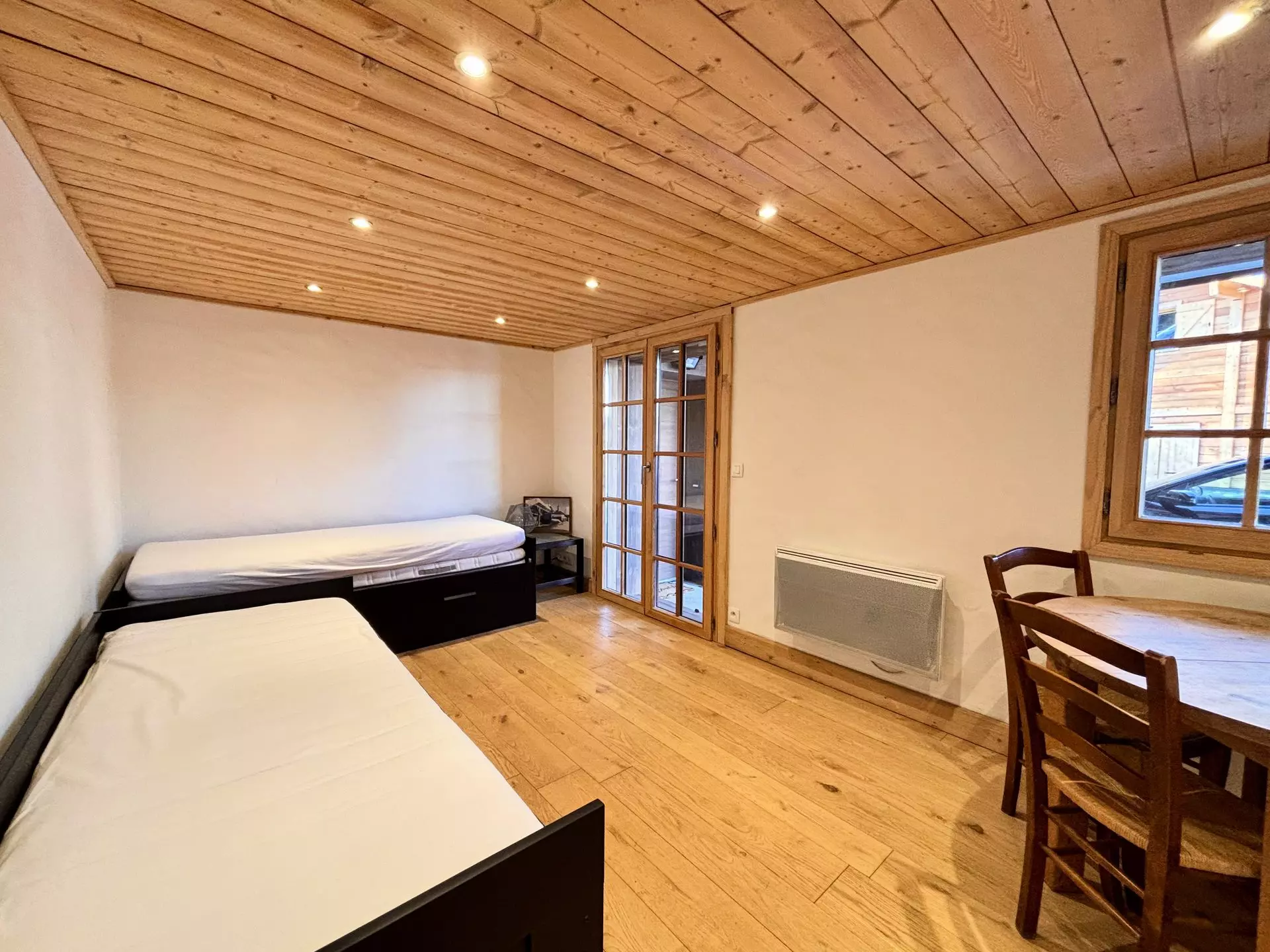 This studio is attached to the chalet, with the option to close it off for greater privacy. It comprises: