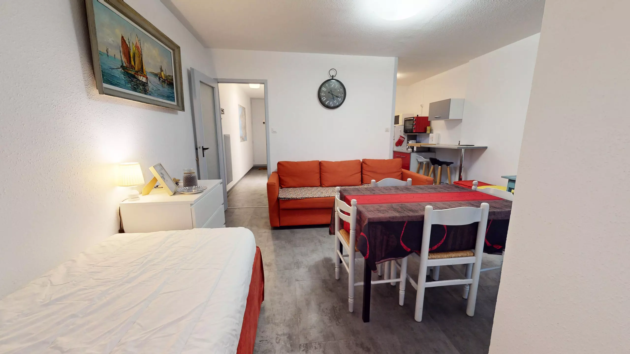 This 38 m² apartment, designed to accommodate up to 4 people, harmoniously combines practicality and comfort. The fully equipped open-plan kitchen opens onto the very cozy living/dining area, offering a soft and soothing atmosphere, ideal for relaxation.