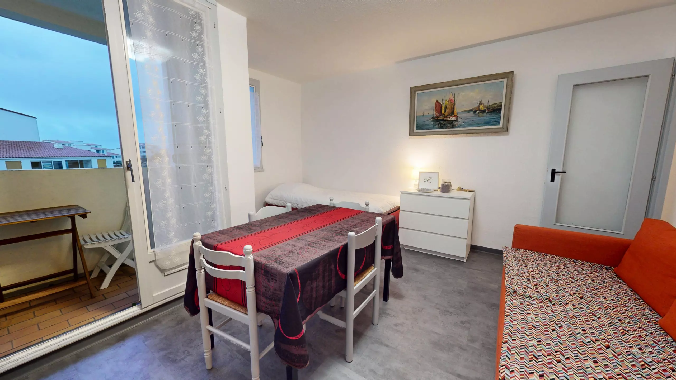 You will also enjoy a small, very cute 5 m² balcony, furnished with a small table and two chairs – ideal for enjoying a sunny breakfast or a relaxing moment in the sea air.