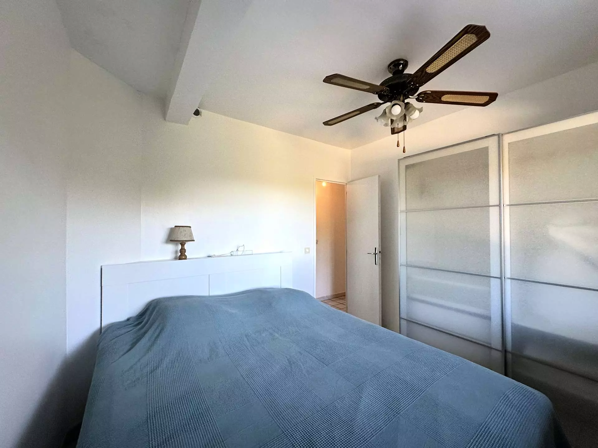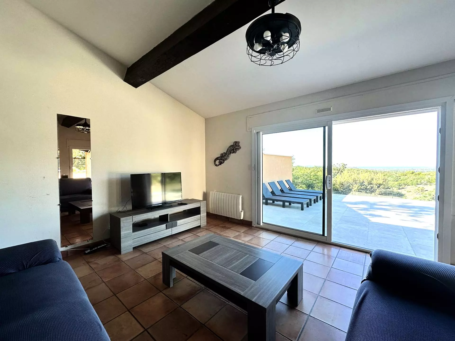 Level 2: large living room opening onto a terrace with views of the hills and sea, fitted kitchen, one bedroom with 1 double bed (160*200) and an en suite shower room, 2 toilets.