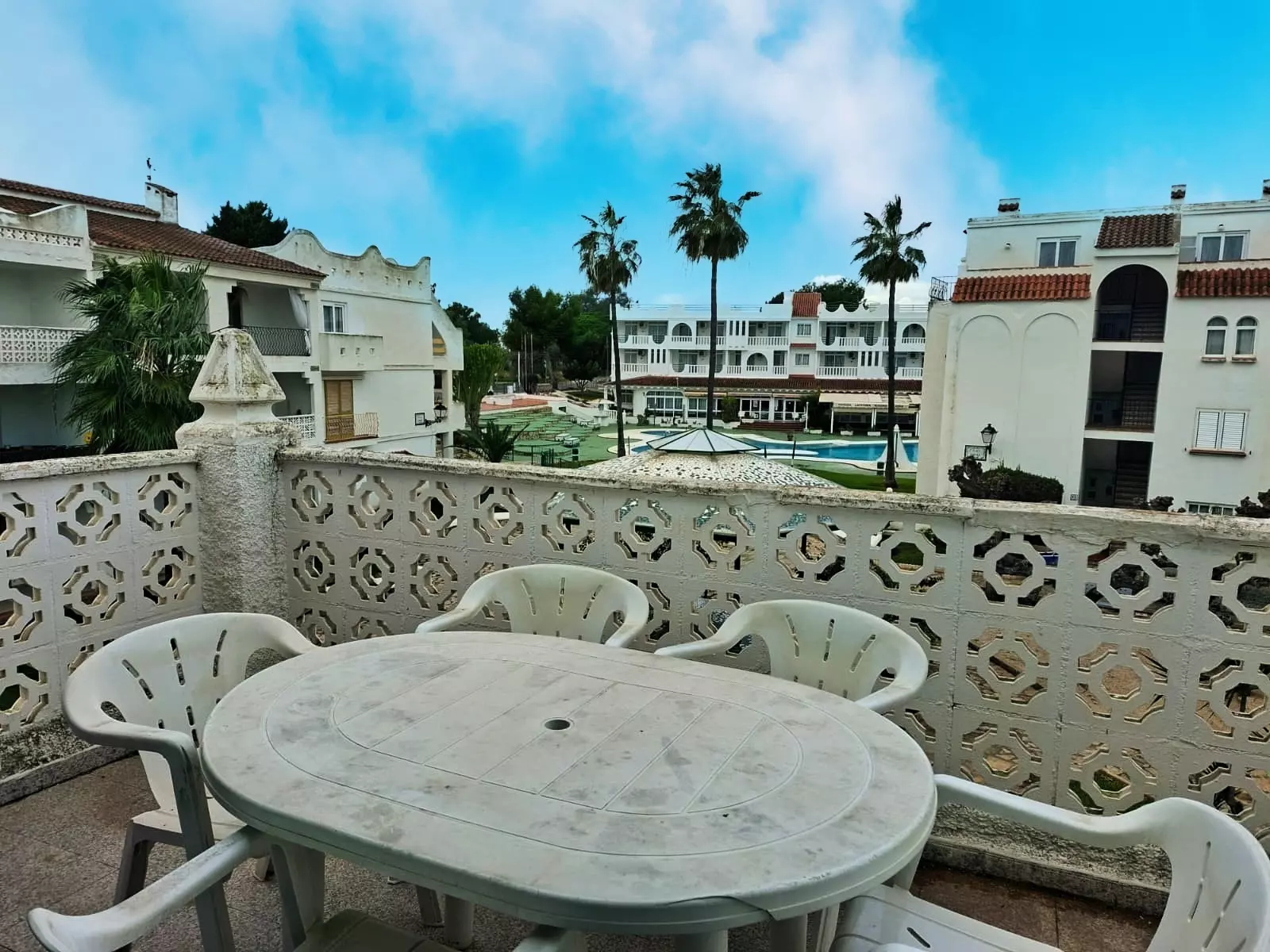 It has a terrace, internet access (Wifi), heat pump heating, air conditioning in the living room, communal swimming pool + children's pool, 1 fan, 1 television.