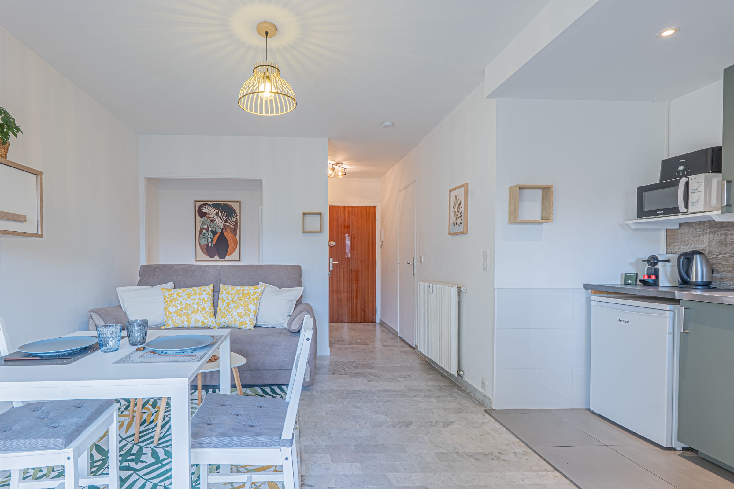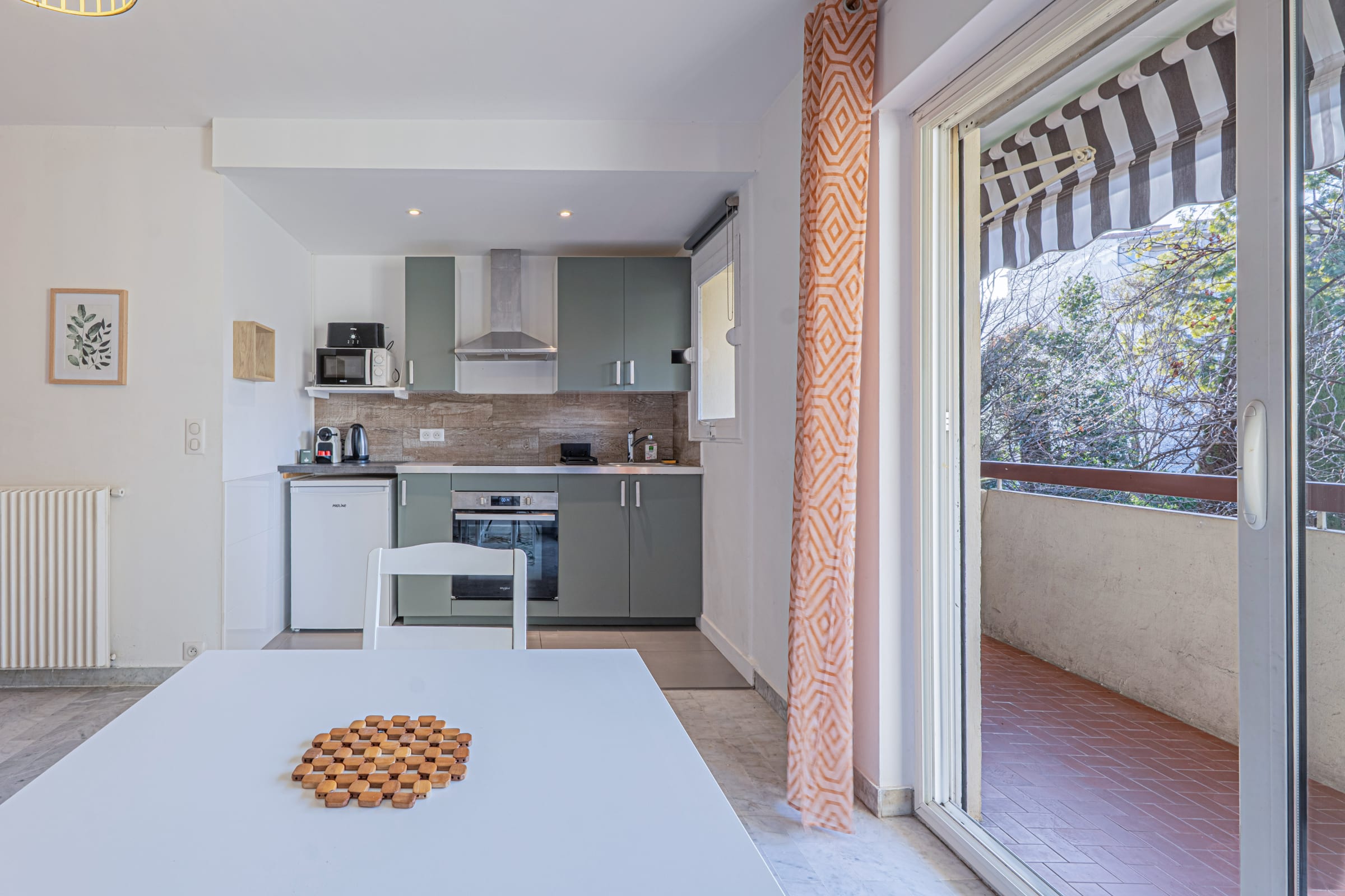 Notre appartement de 24 m², situé Rue Aurélienne au 1er étage avec ascenseur d'un immeuble très bien entretenu, offre de belles prestations. Rénové et décoré avec soin, l'appartement se compose d'une belle pièce principale avec un coin cuisine et un coin salon avec un canapé. Le canapé se transforme en canapé lit confortable. Vous profitez d'un magnifique balcon ensoleillé et au calme. La salle de bain comprend une douche à l'italienne, un meuble vasque, un WC et un lave-linge. L'appartement offre une place de parking privative en extérieur. Nombreux restaurants et commerces à proximité immédiate. Le Palais des Festivals et des Congrès de Cannes est 15 min en bus ou en voiture.