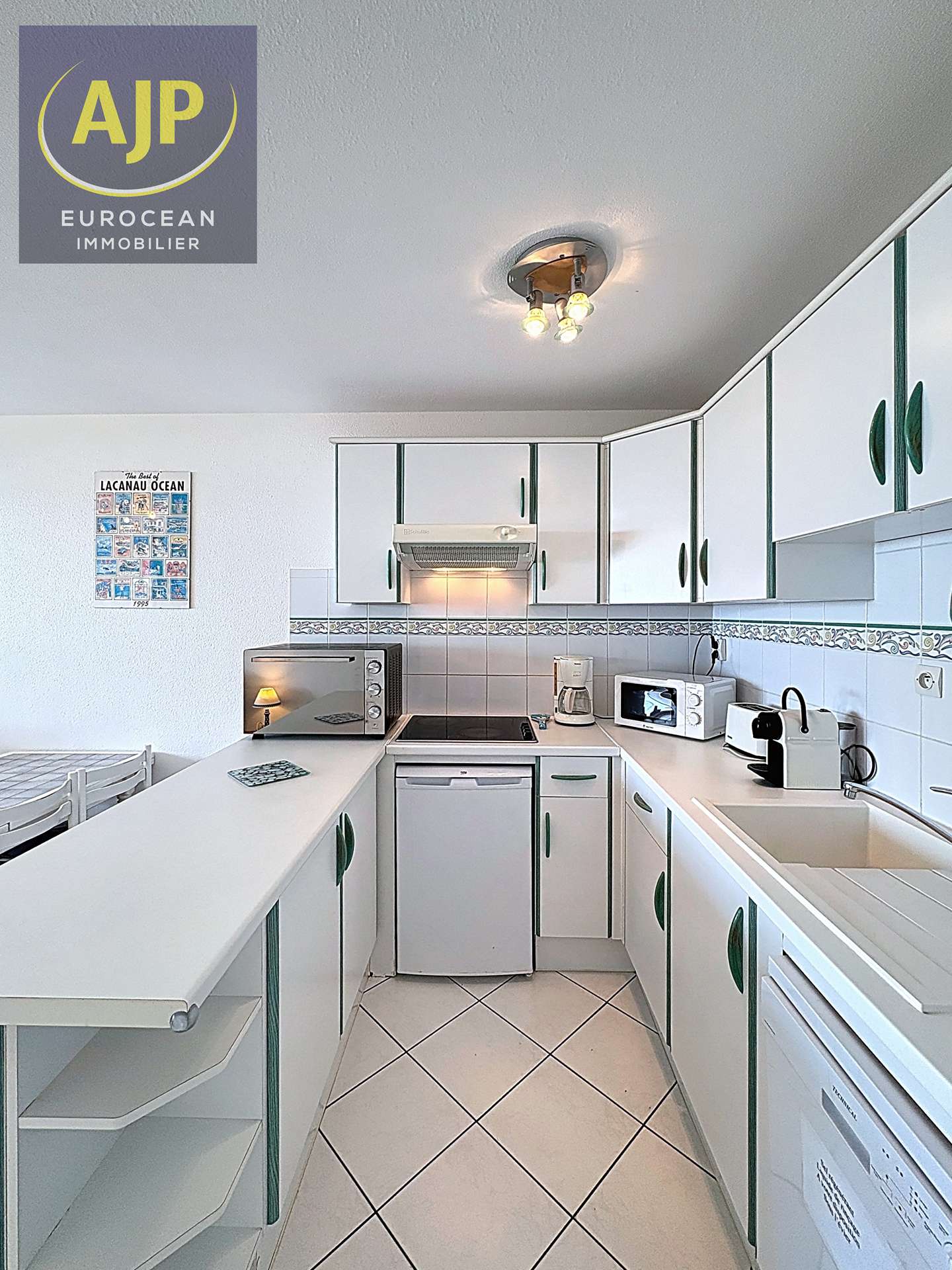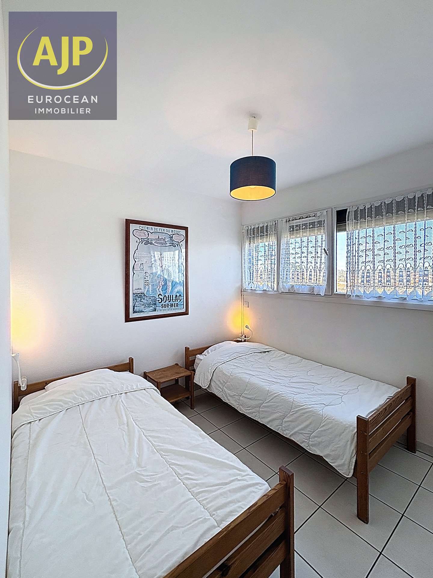 Pleasant apartment, for 4 persons, located on the 1st floor of the residence "Les Océanides", 3 floors building close to shops and beaches. Appartment on 3 levels with numerous stairs. Enjoy a beautiful ocean view. Entrance, bedroom 2 single beds overlooking side parking, shower room with shower cabin, independent WC, living room with fully equipped kitchen space, dining room and living room with sofa bed. A large bay window opens onto the west facing balcony with a superb ocean view. Cellar for your bikes and/or boards. You also have a private parking space at the foot of the building. Join the beach and shops at 100m, the Golf at 3km and the lake at 6km. REF 01404