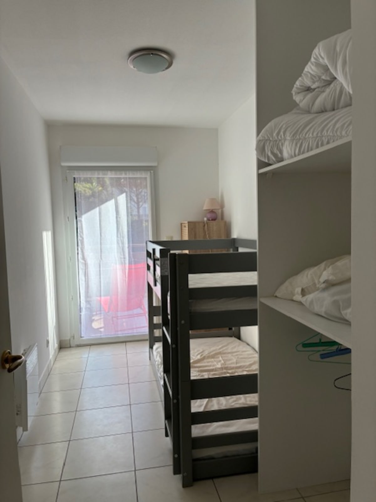 Cet appartement est meublé et équipé pour 4/5 personnes, il se compose d'un séjour avec coin repas, cuisine équipée, coin salon avec canapé et TV. Une première chambre avec lit double 140x190 plus un lit simple, une deuxième chambre avec 2 lits superposés. Une salle de bains, un wc séparé, et une belle terrasse côté est, idéal pour les après-midi et soirées plus au frais en été.