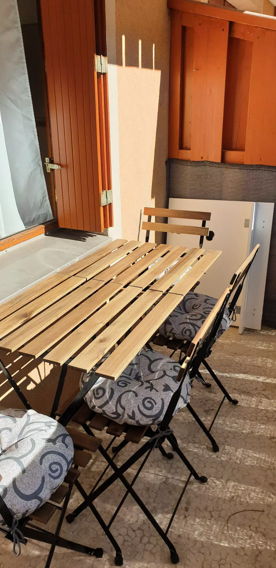 2 balconies (4.5m²/ South-East facing) with garden furniture. Shared, non-private parking.