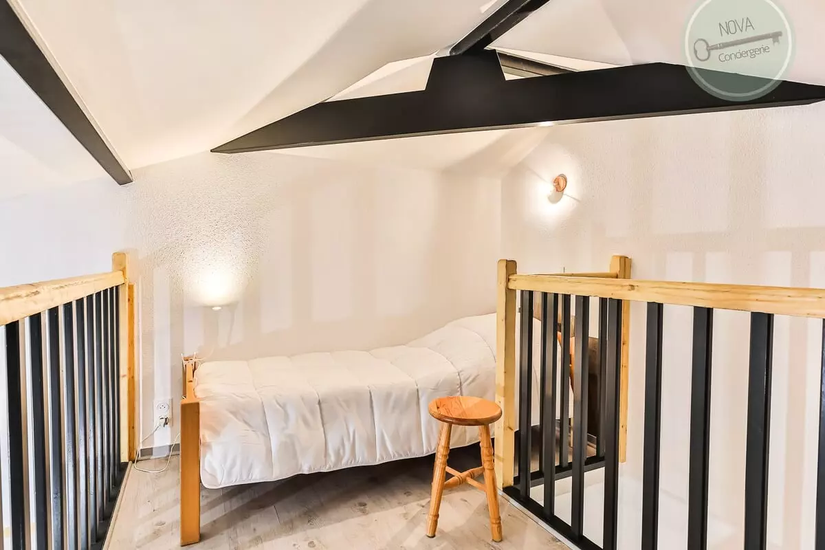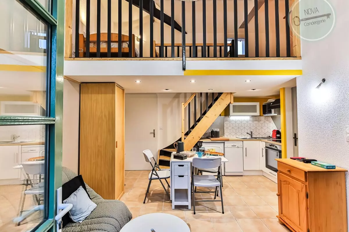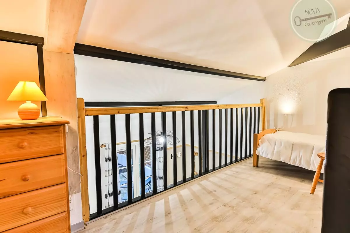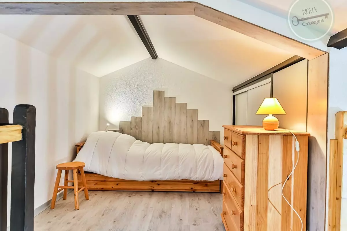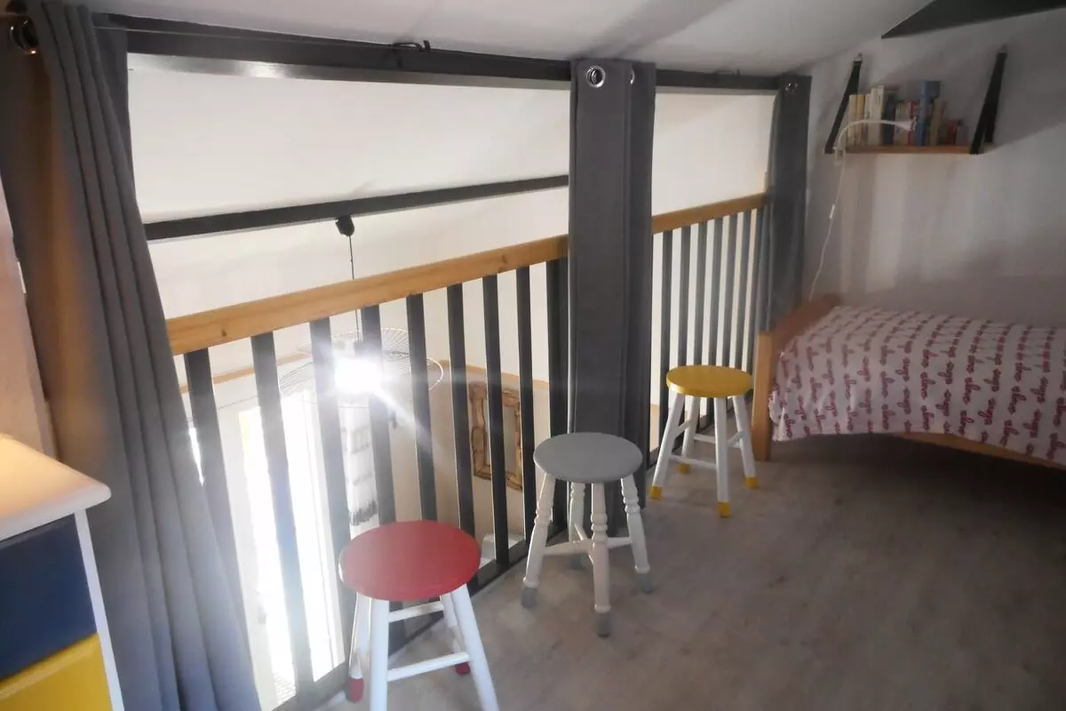 Completely renovated, this 44 m² house offers a bedroom with a double bed and television, a living room/kitchen with kitchenette, a bathroom and separate WC, as well as a mezzanine that can accommodate three people (2 single beds and 1 pull-out bed). You can enjoy the outdoor terrace for summer meals or sunbathing.