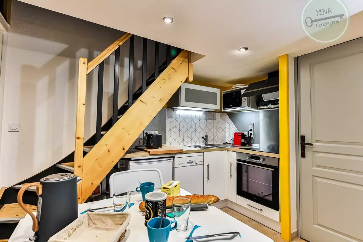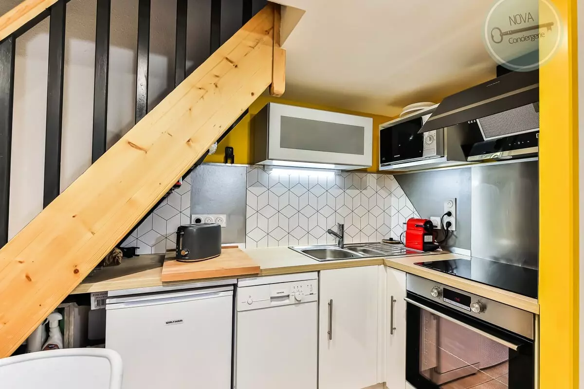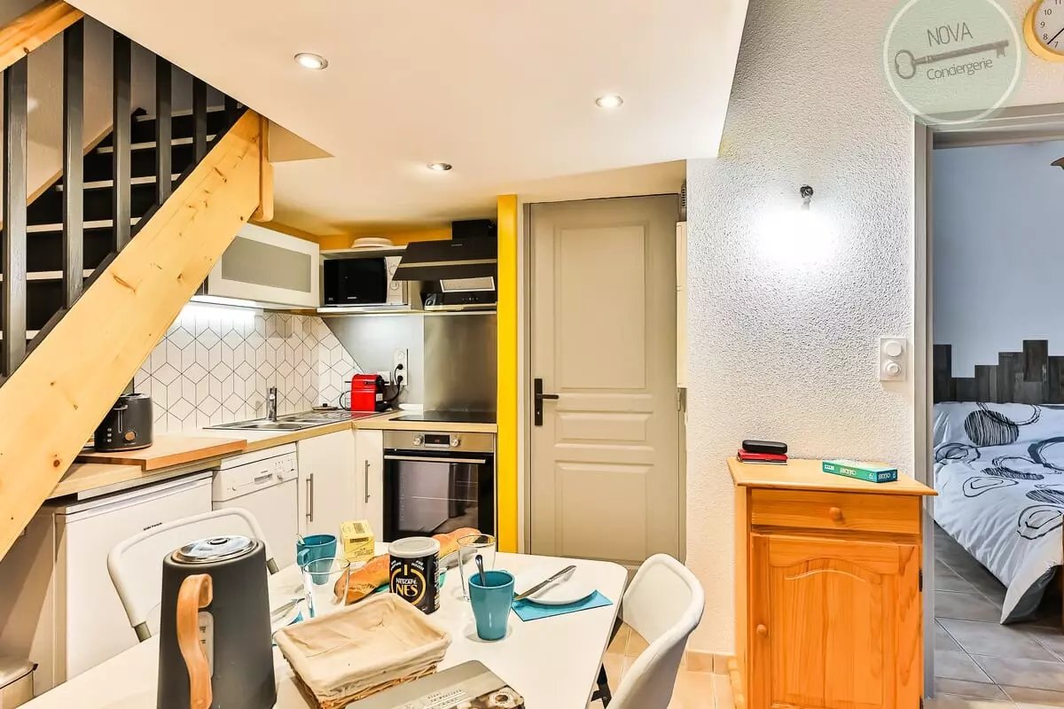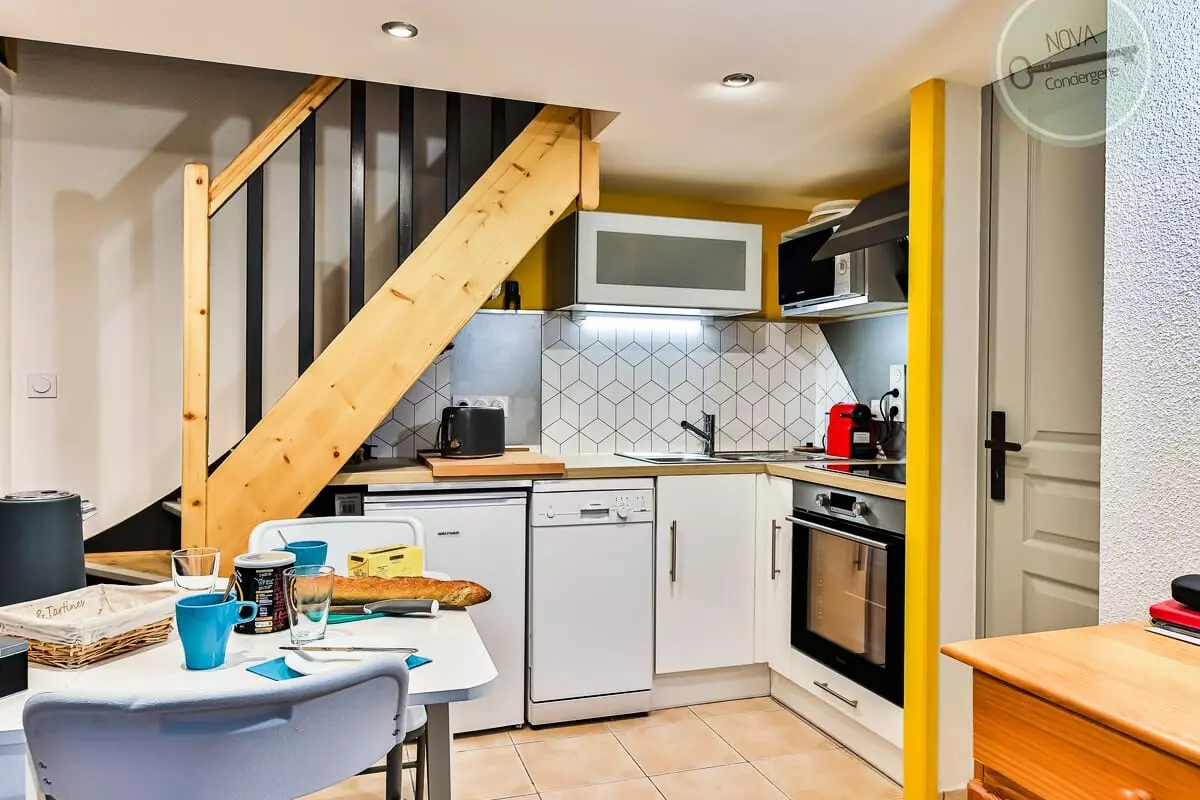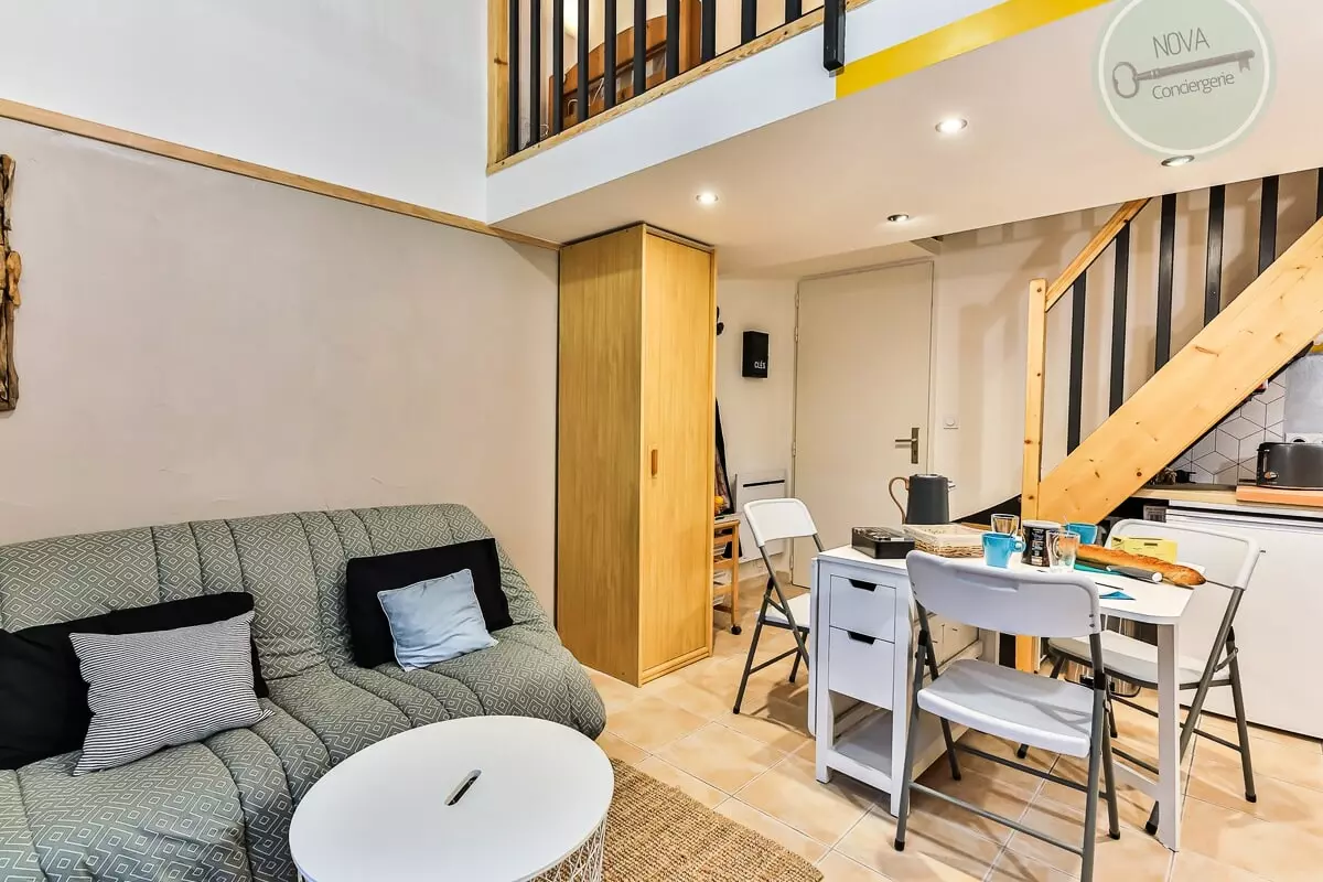 Completely renovated, this 44 m² house offers a bedroom with a double bed and television, a living room/kitchen with kitchenette, a bathroom and separate WC, as well as a mezzanine that can accommodate three people (2 single beds and 1 pull-out bed). You can enjoy the outdoor terrace for summer meals or sunbathing.