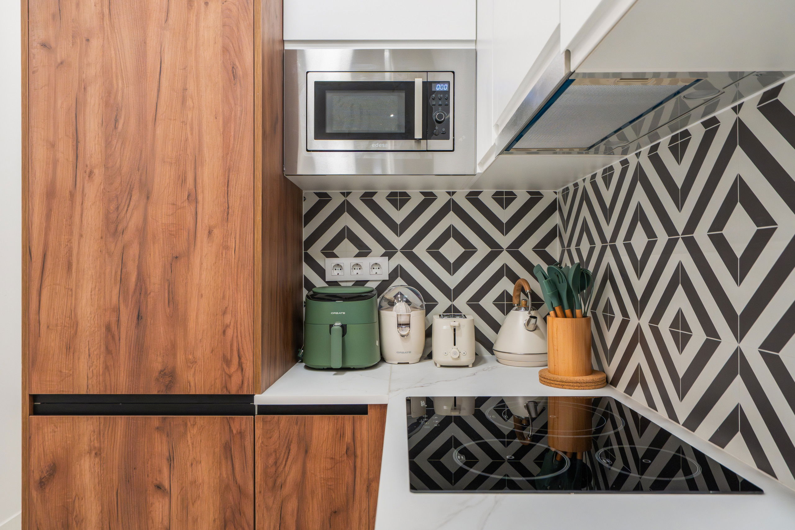 The Kitchen: Open and completely new. It is equipped with everything necessary for cooking: induction hob, fridge, microwave, kettle, air fryer...