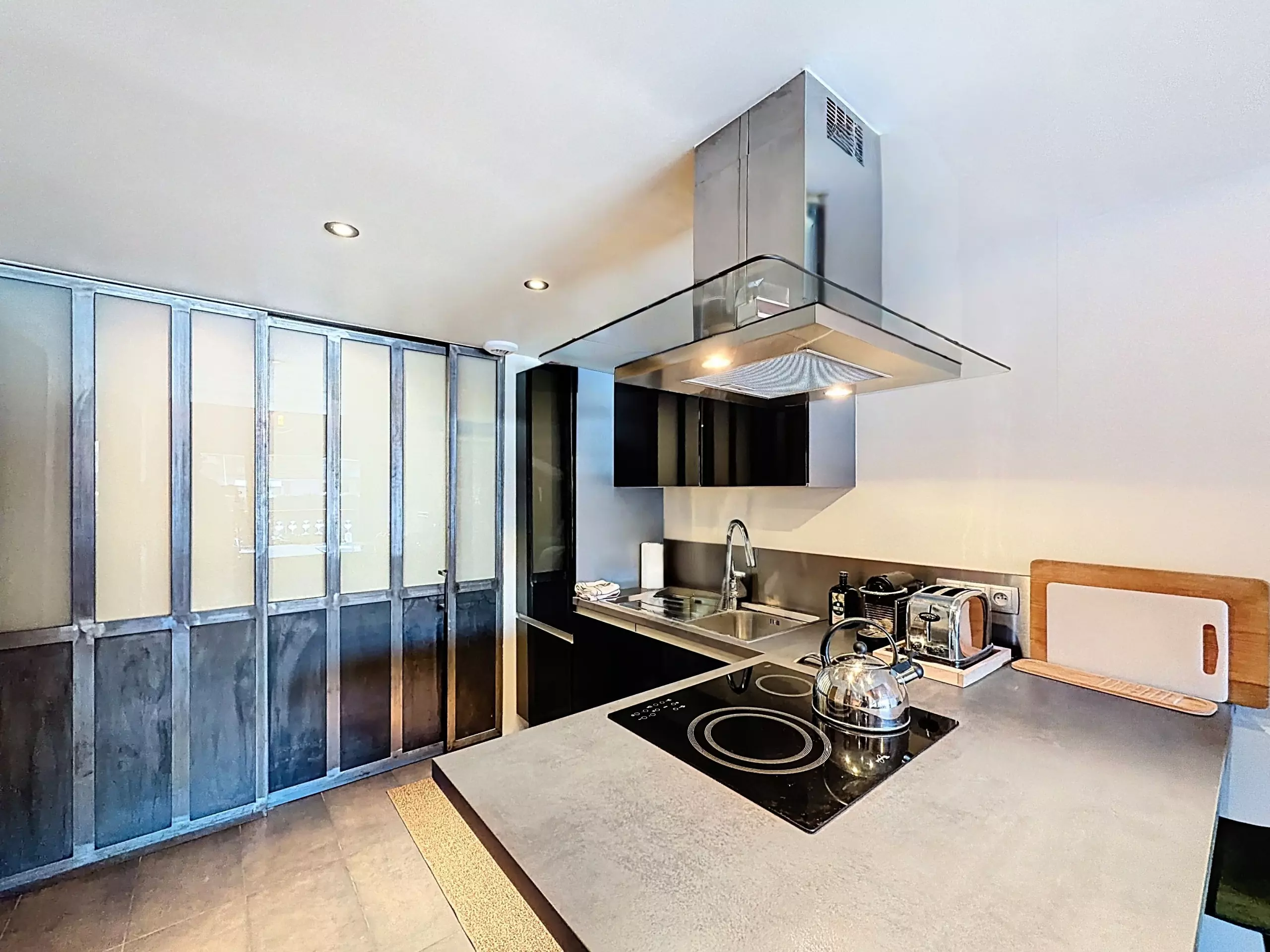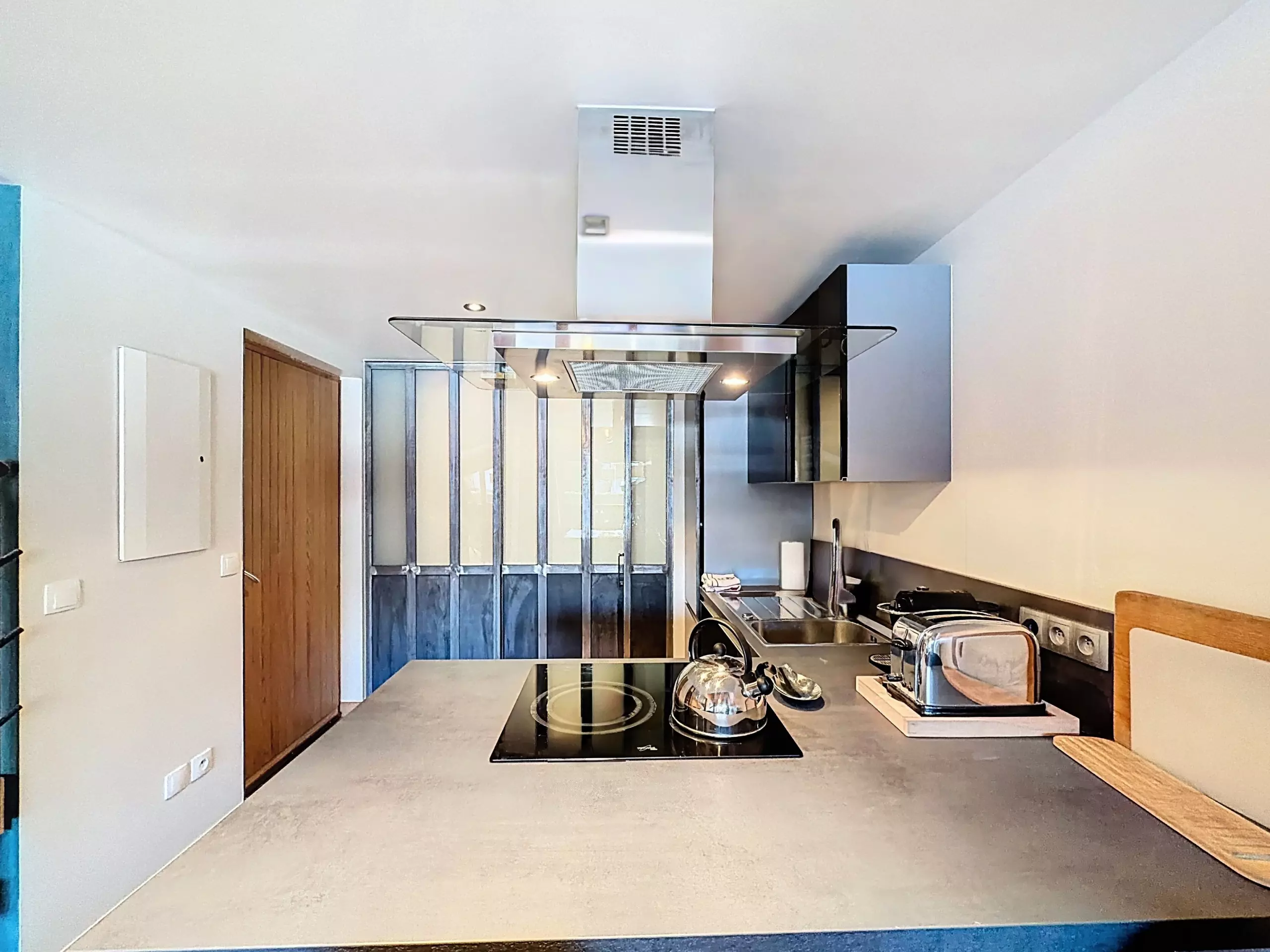 The fully equipped open-plan kitchen will allow you to cook delicious meals. It includes a refrigerator, coffee machine, dishwasher, kettle, toaster, and oven, making meal preparation easy.