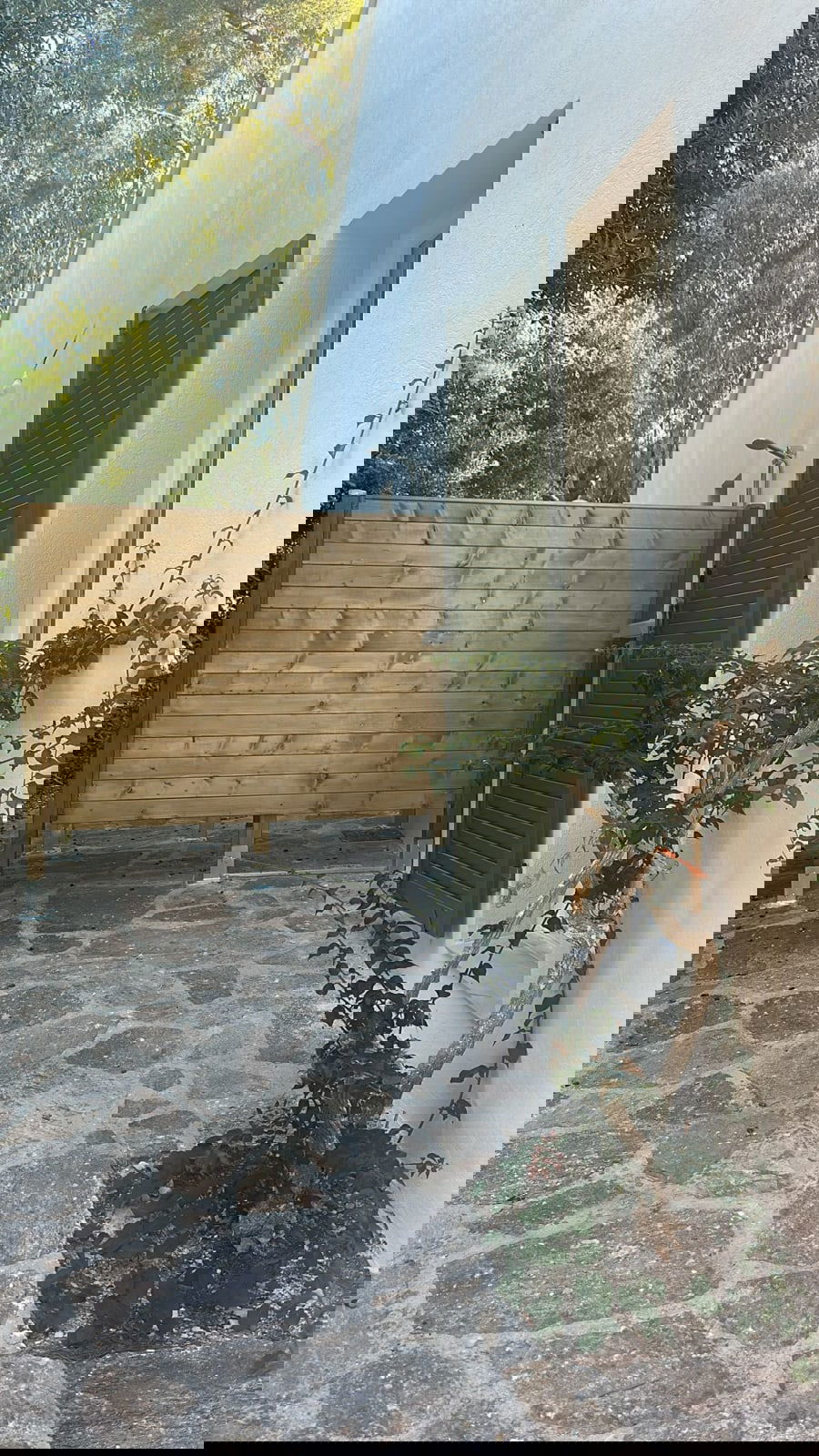 An outdoor shower awaits you after a day at the beach. Enjoy the laid-back lifestyle on a large 950m² plot with two terraces where you can unwind in the shade or the sun. Garden furniture and a 2m x 2m Balinese bed are at your disposal for relaxing, listening to the cicadas, and reading.