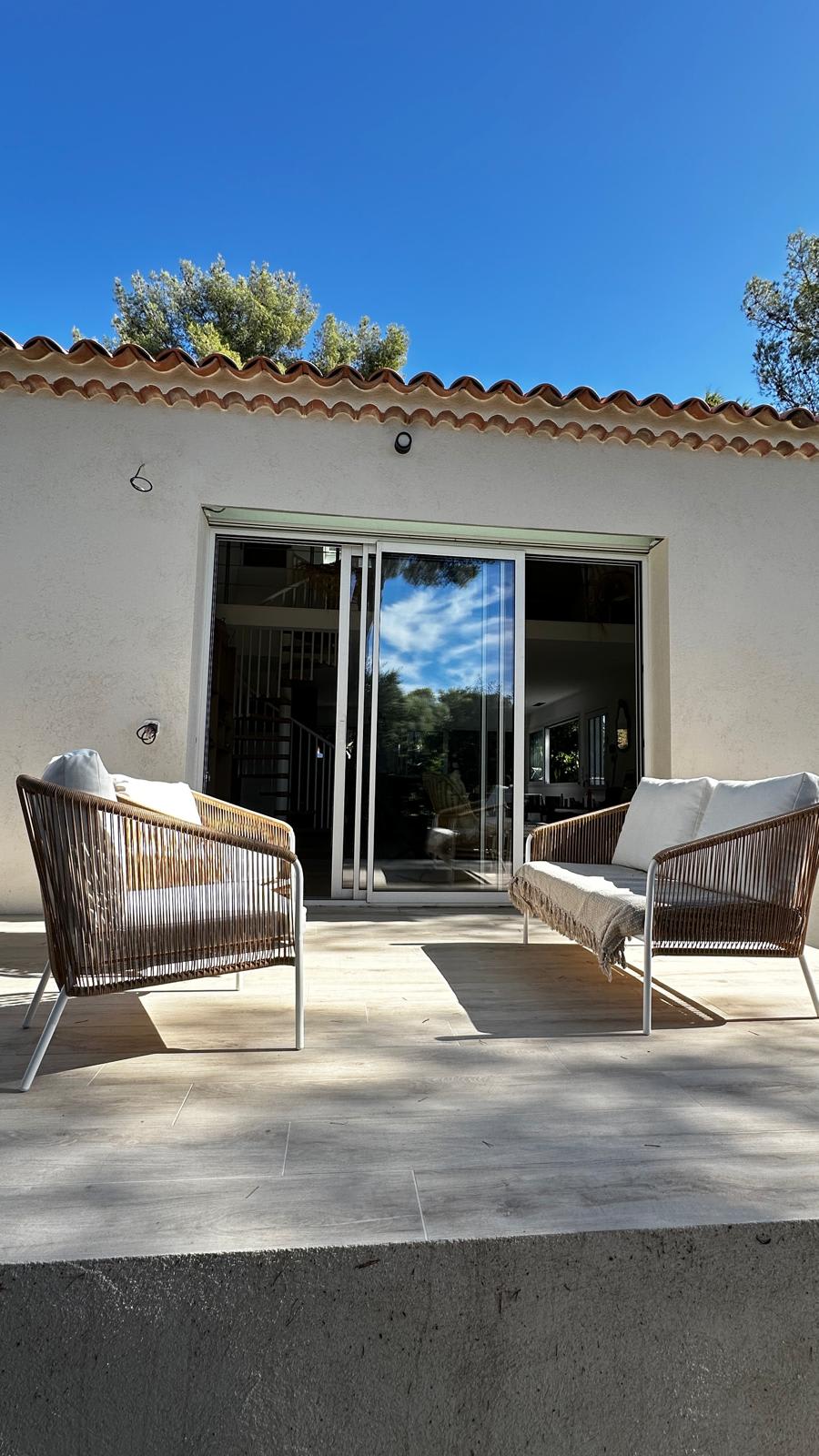 Discover this Mediterranean house nestled on the hillside, renovated this year. Step into a large living room opening onto the garden, where everything invites relaxation. A fully equipped modern kitchen allows you to prepare meals with friends to enjoy on the terrace.