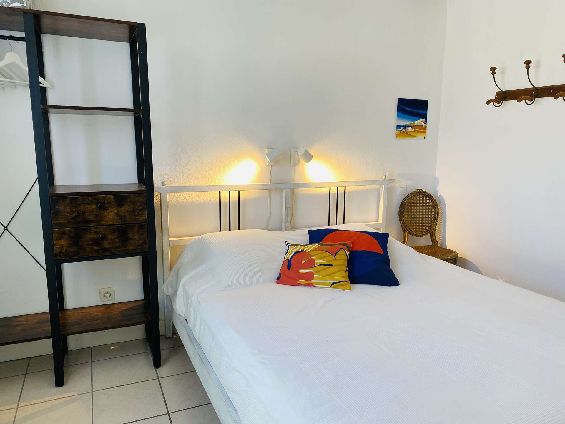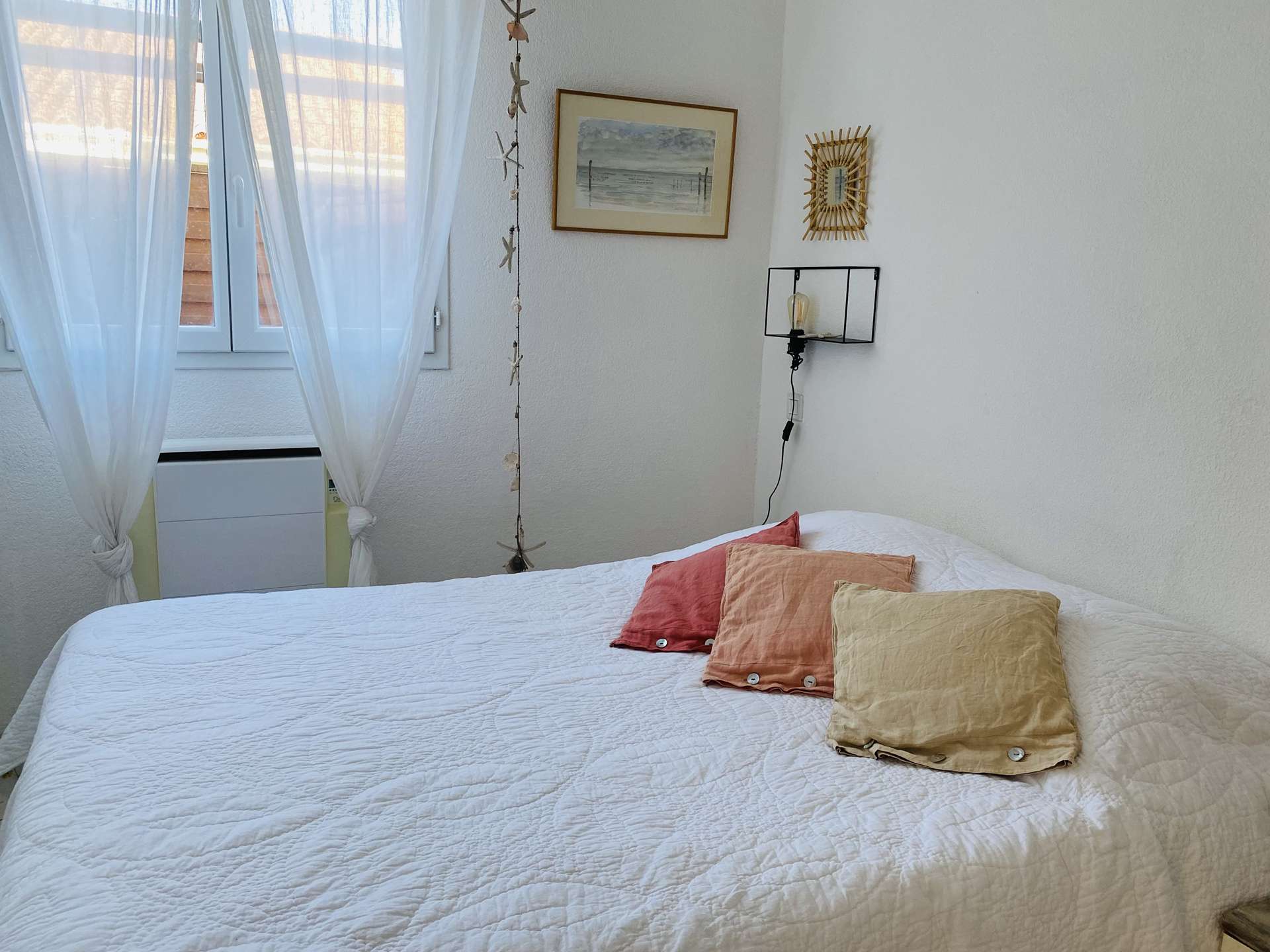A l'étage se trouvent deux chambres, une avec deux lits simples et une avec un lit double avec sa propre salle d'eau et un wc indépendant.