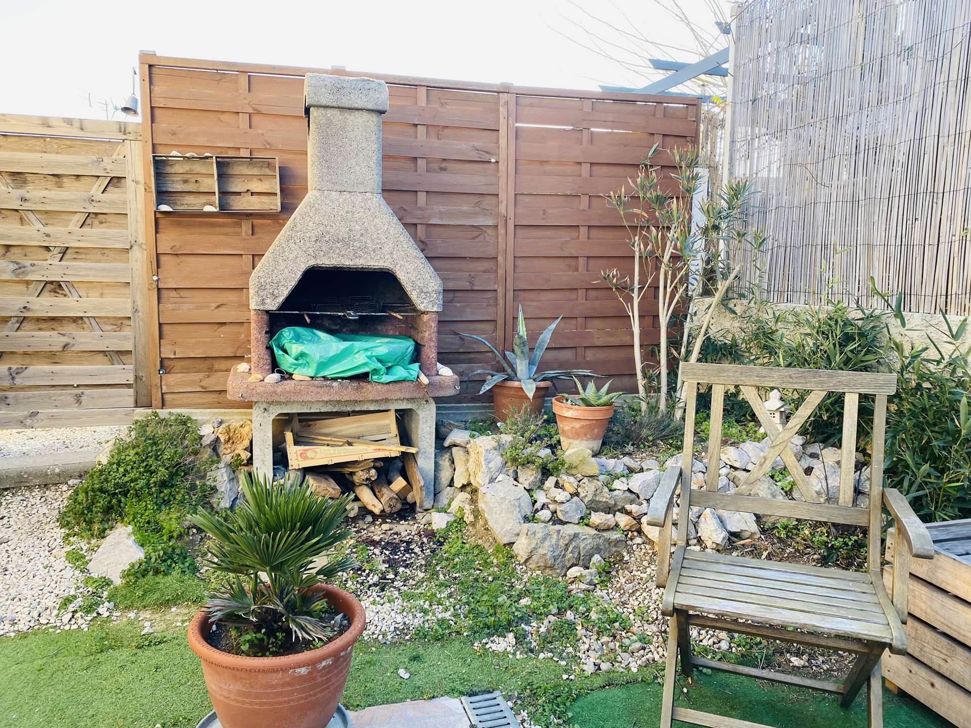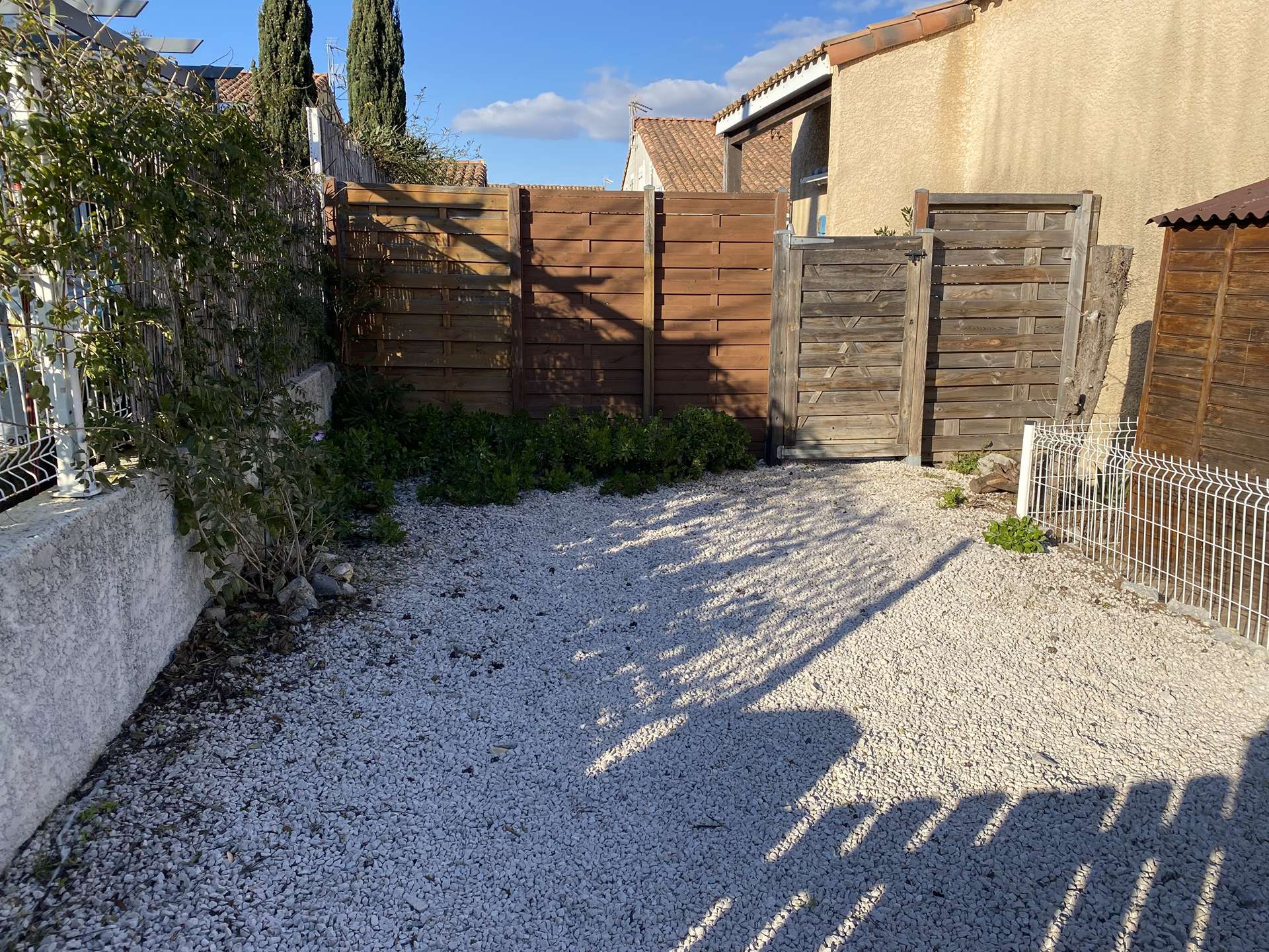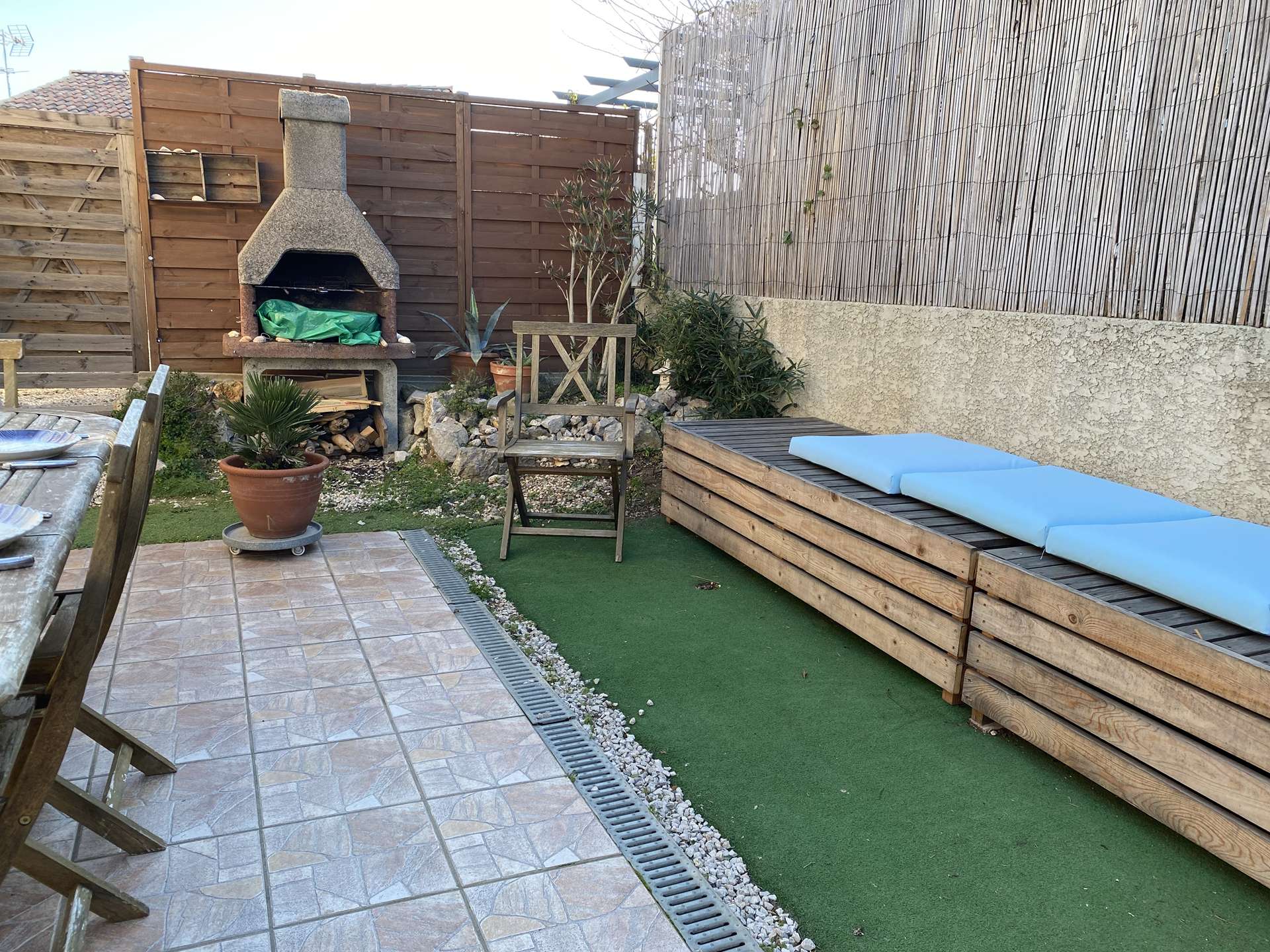Les petits plus : Terrasse couverte avec salon de jardin et store banne, barbecue en pierre, une petite piscine privée (sans vis-à-vis) avec un point d'eau ainsi, un emplacement de parking sur le terrain ainsi que sa place devant le logement.
