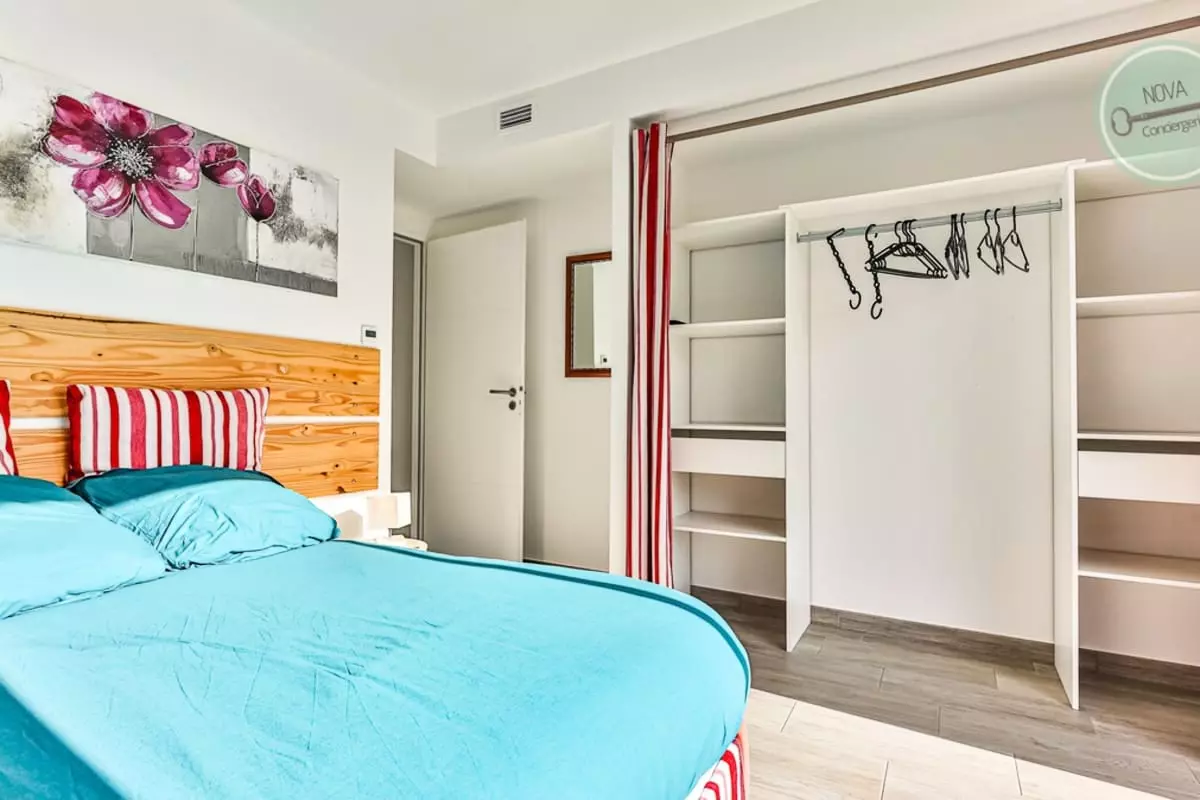 - A master suite, 160cm bed, TV, bathroom.
