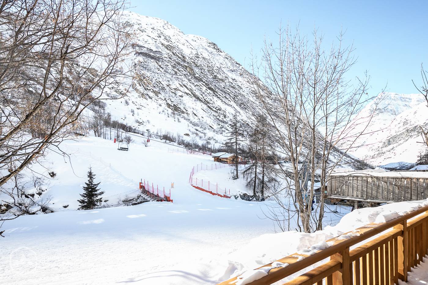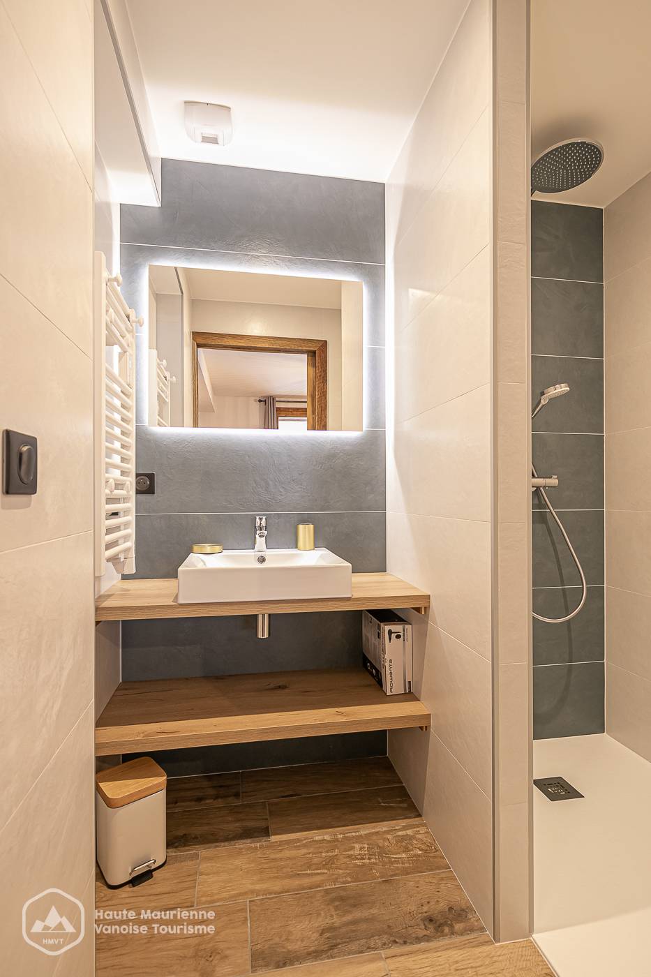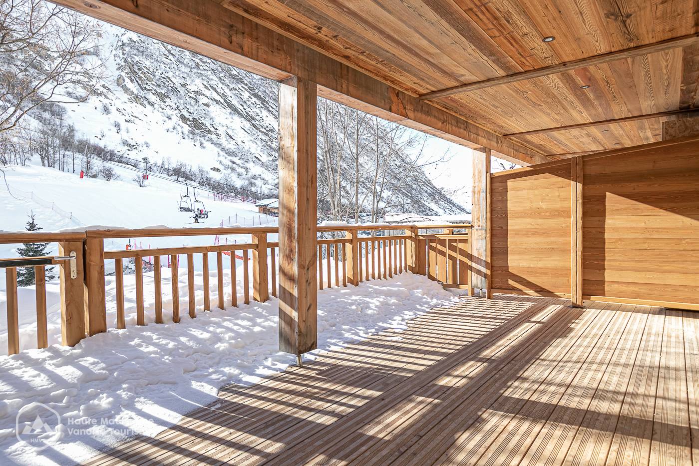 This apartment offers a modern and warm decoration and high quality equipment. Facing south, it directly overlooks the arrival of the slopes.