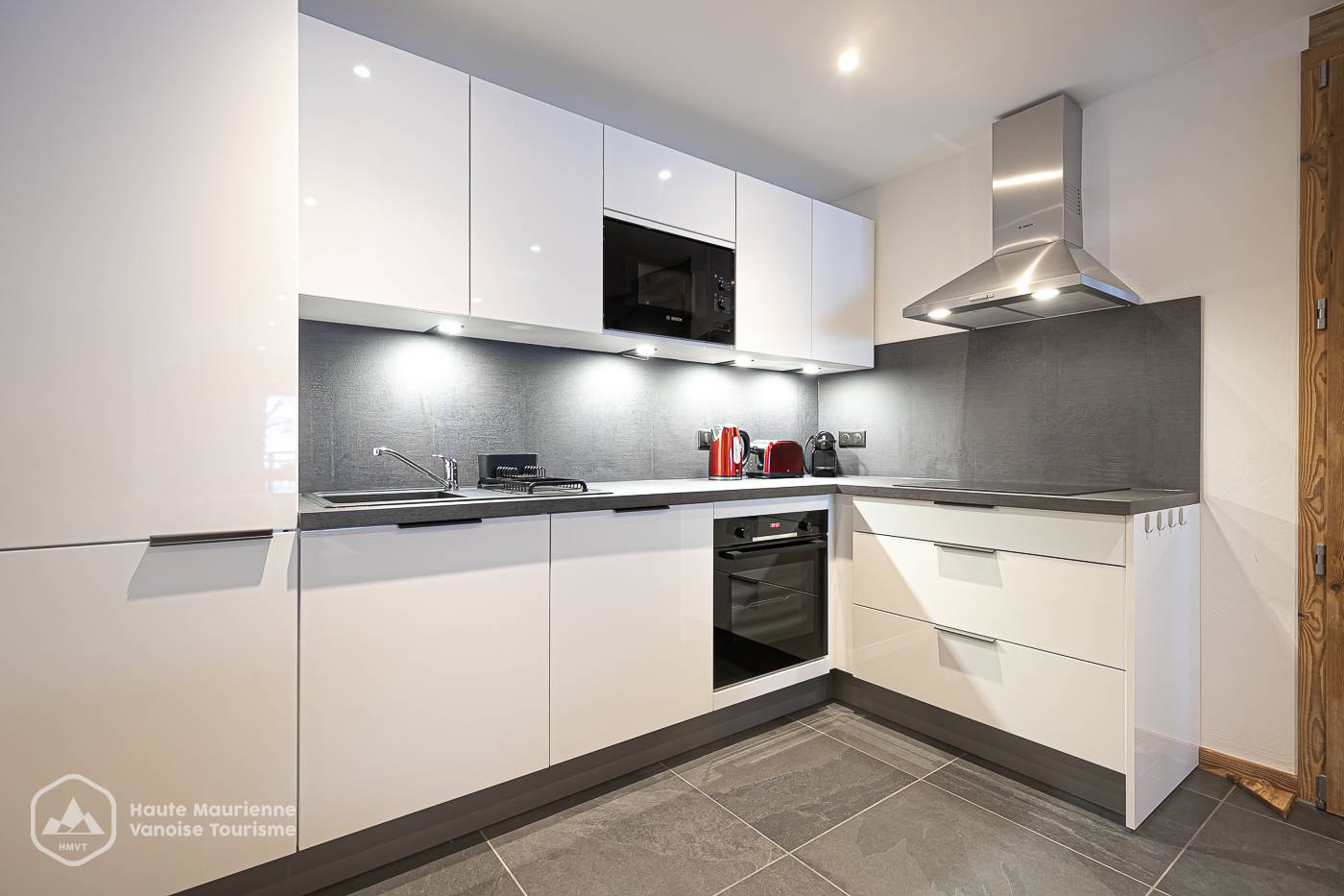 This apartment offers a modern and warm decoration and high quality equipment. Facing south, it directly overlooks the arrival of the slopes.