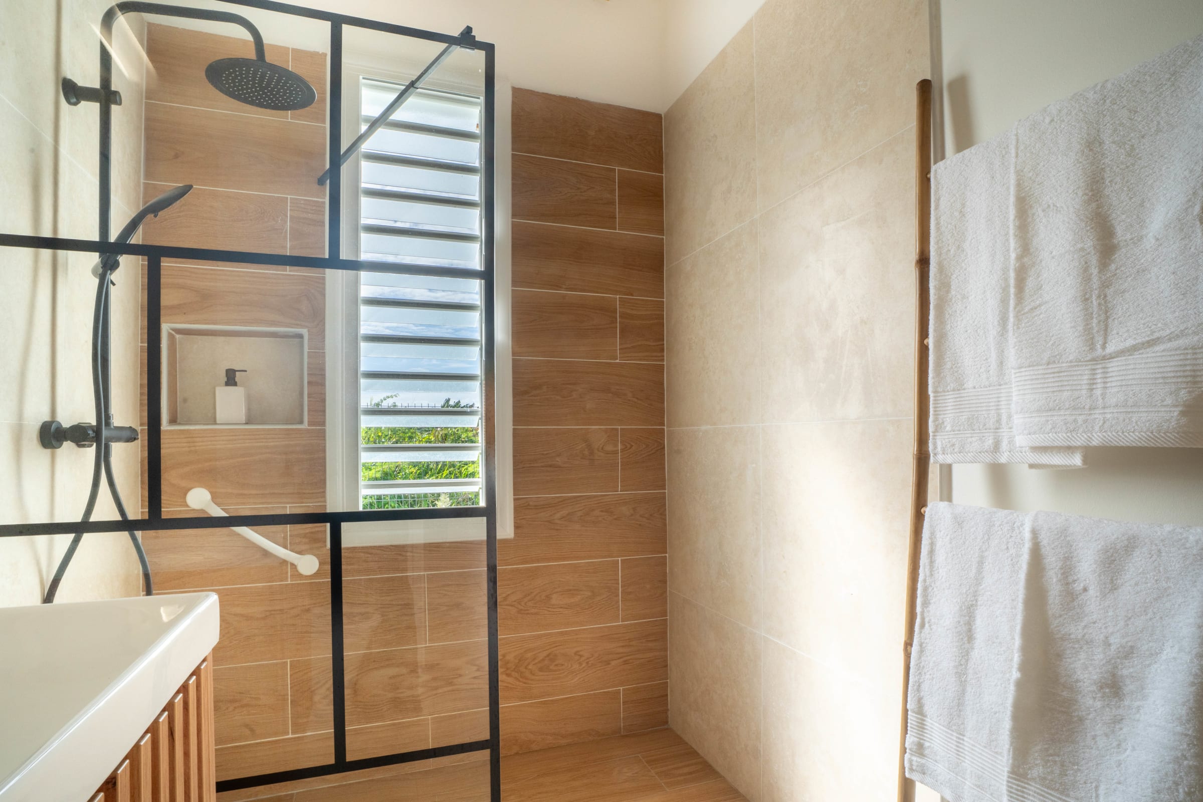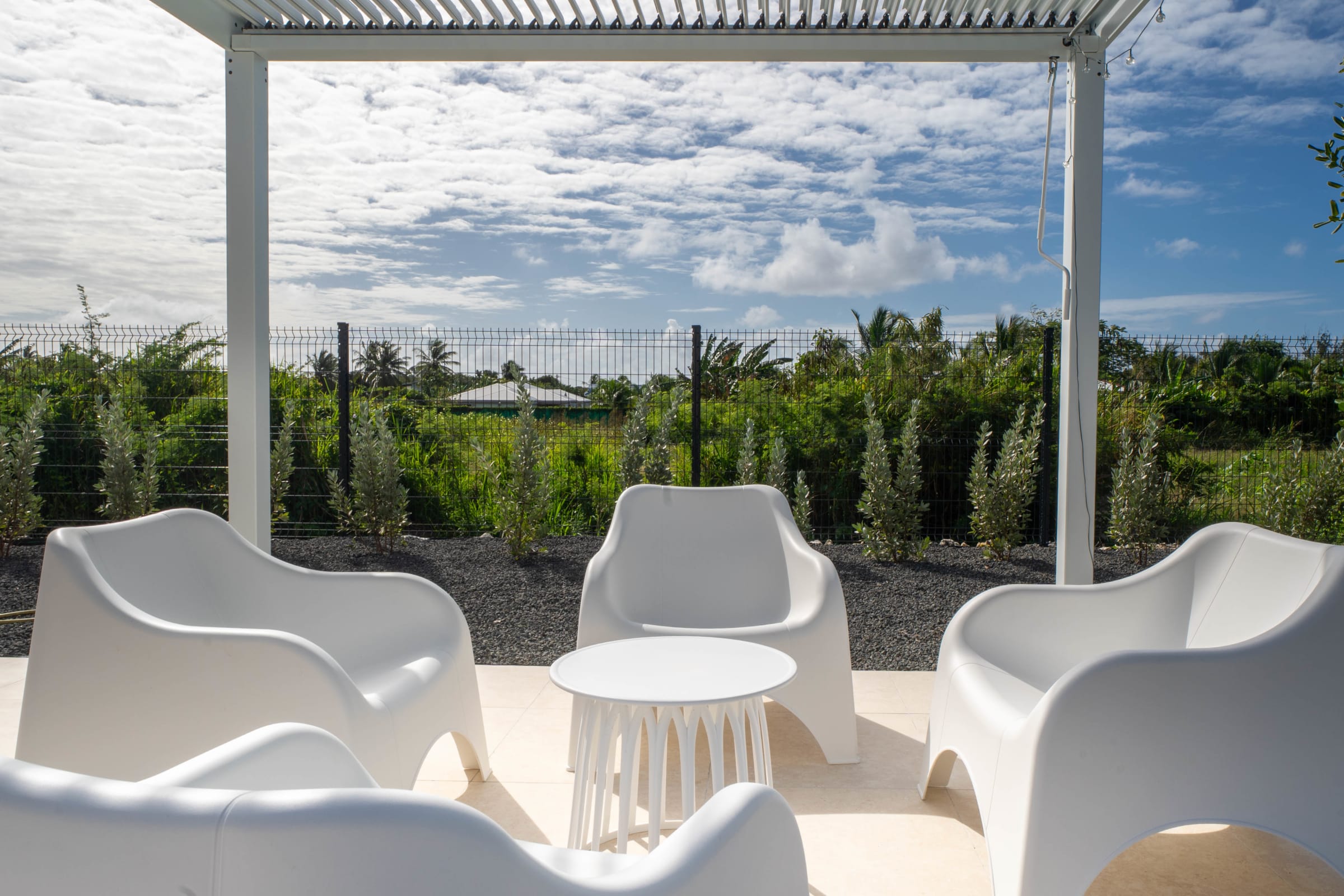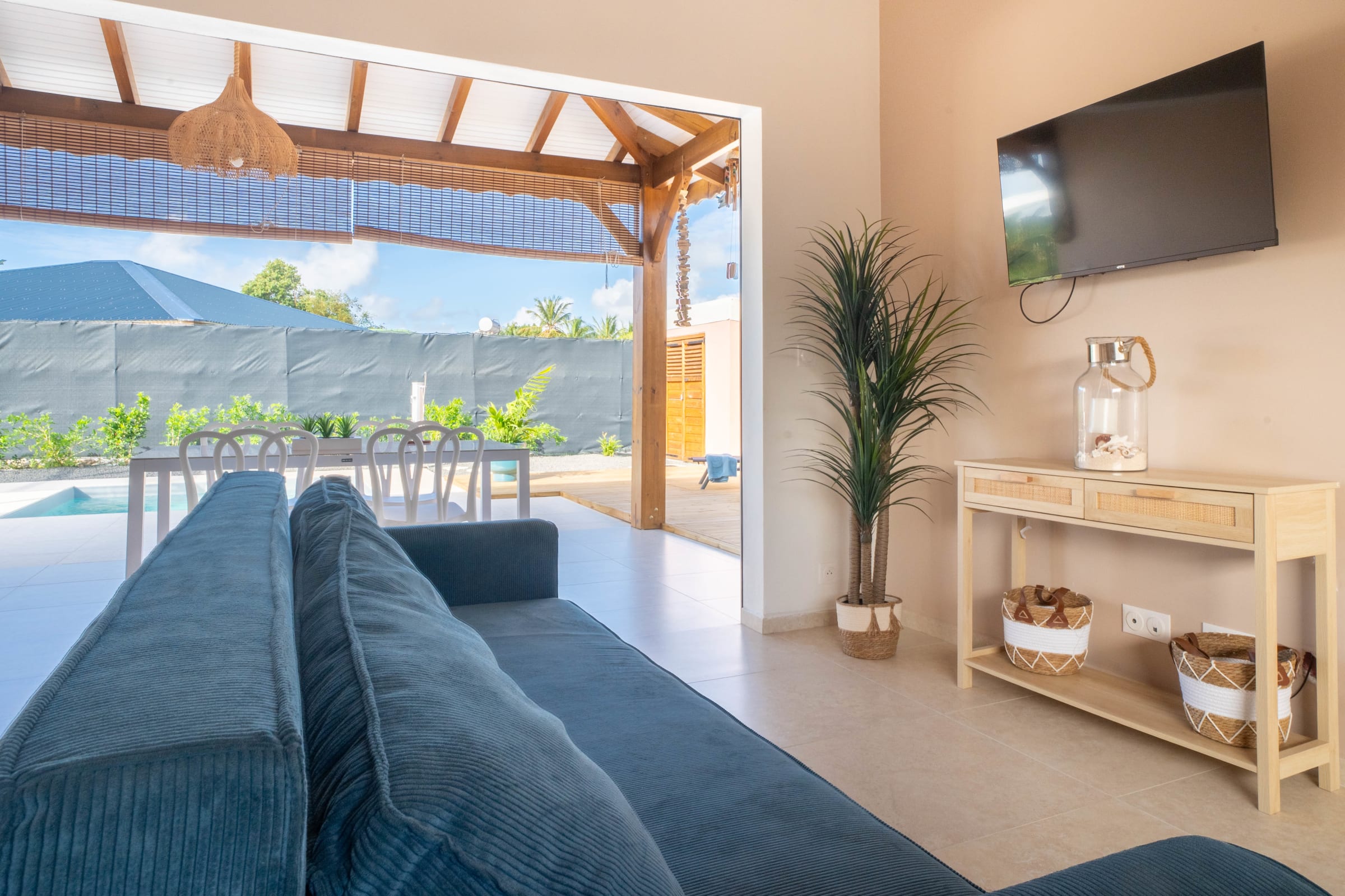 Enjoy a fully equipped modern kitchen that opens onto a large plunge pool, the perfect spot to sip a cocktail under the Caribbean sun. The private 3x3 meter swimming pool invites you to moments of pure relaxation. For those wishing to stay as a group, the adjoining twin villa (Cotoon Lodge 2 - Ti Koton) next door allows accommodation for up to 8 guests in complete privacy.